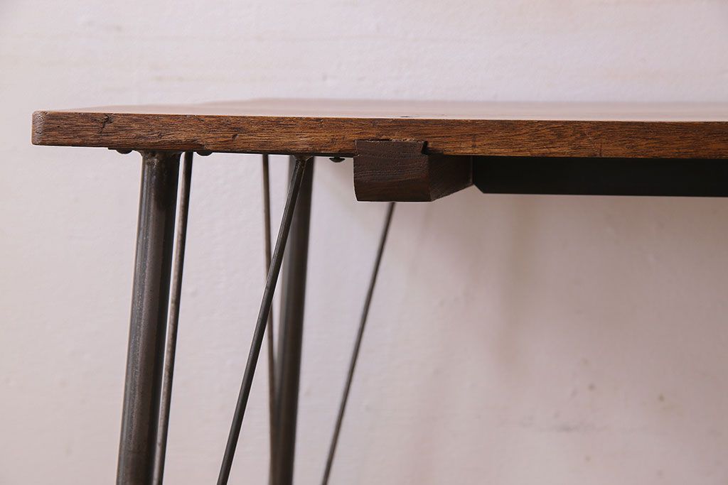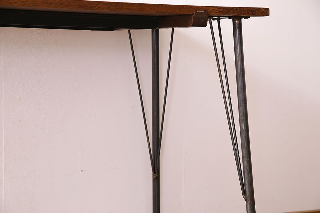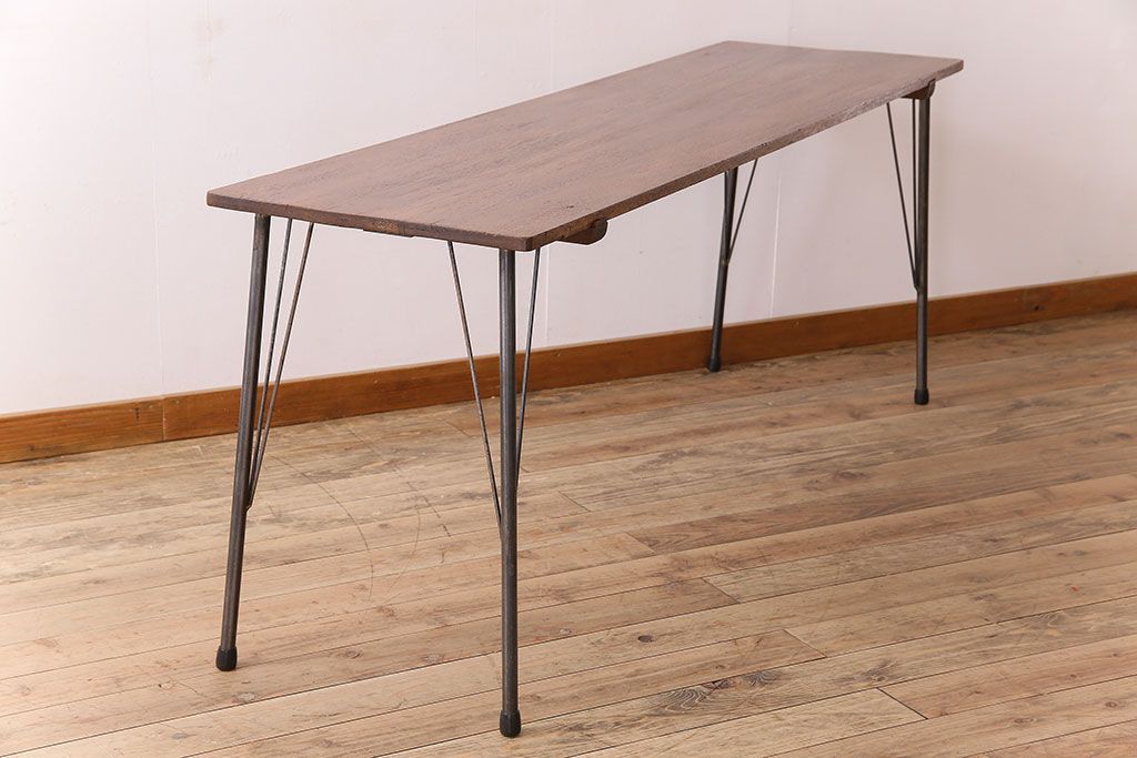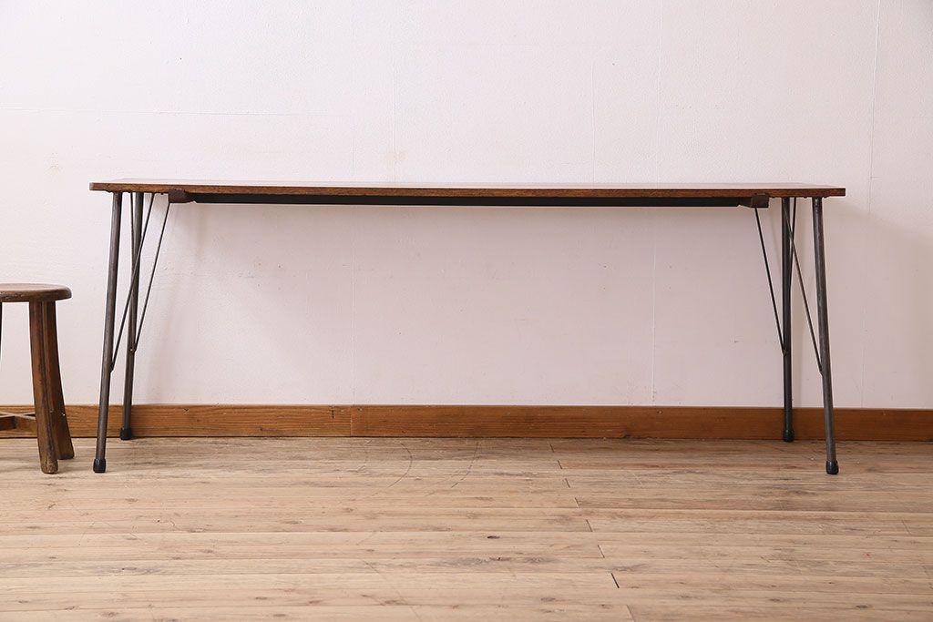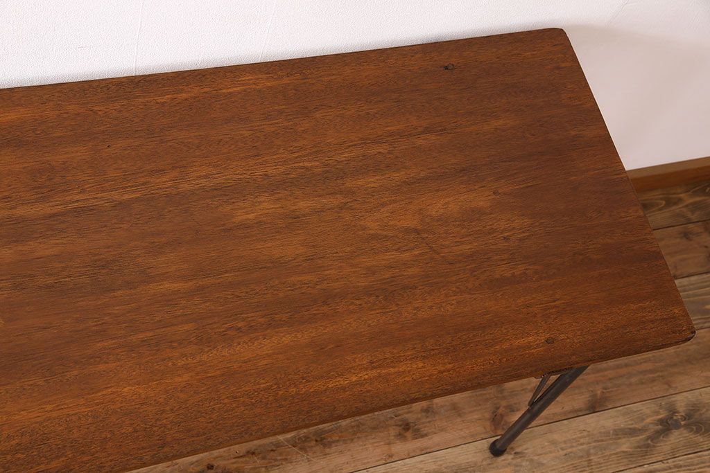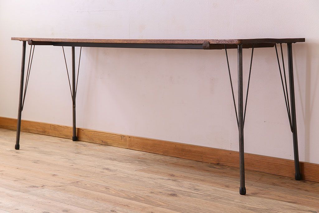 ラワン材製 天板一枚板 和製アンティークのシンプルな鉄脚テーブル(2)です。