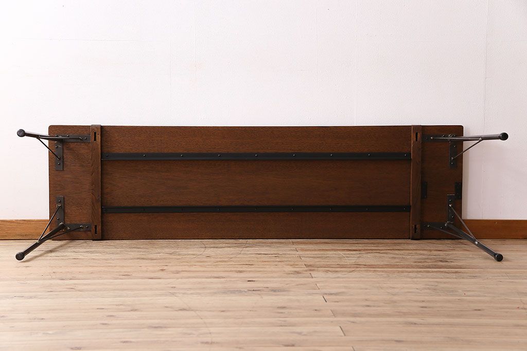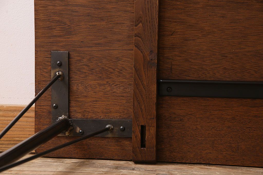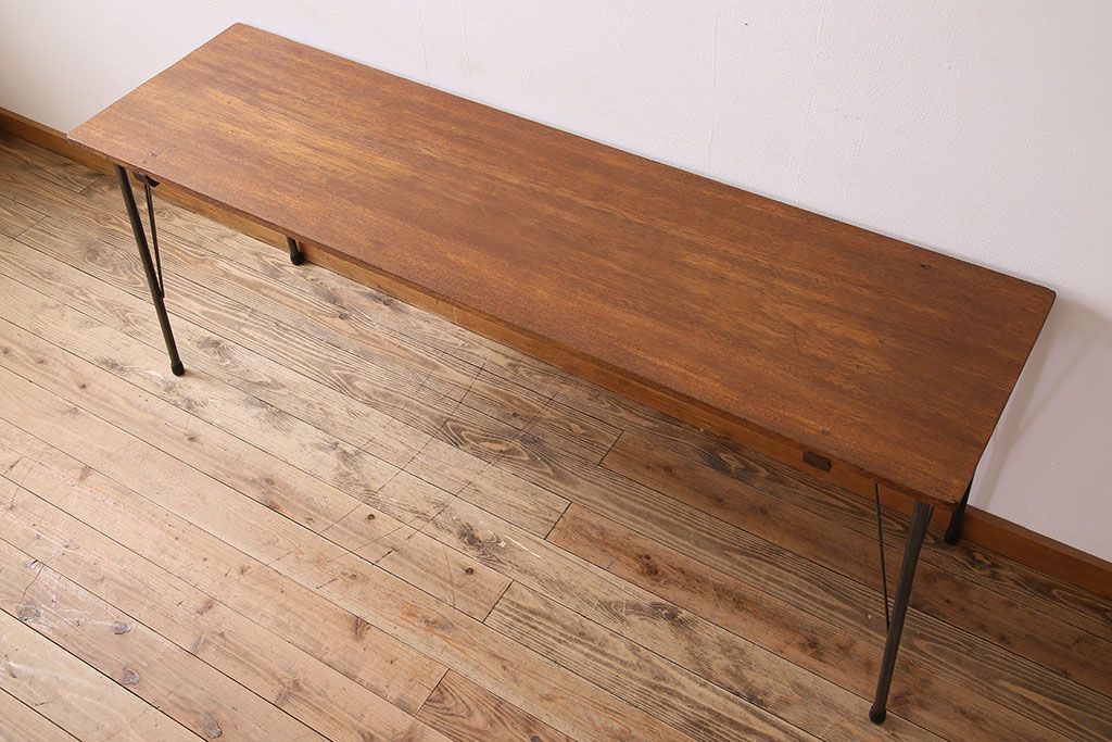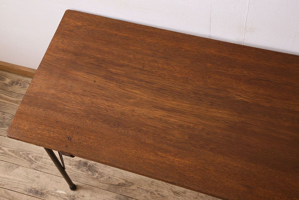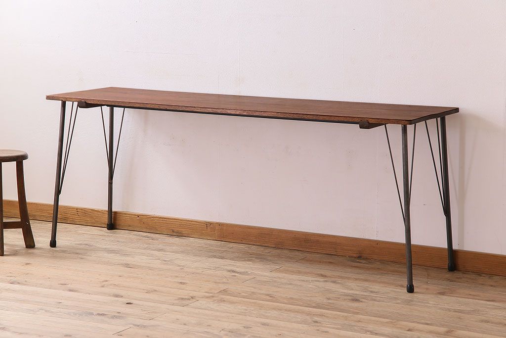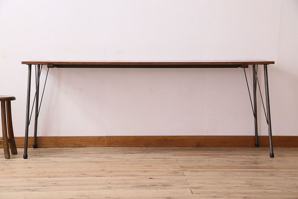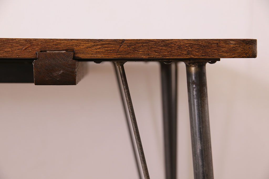 ラワン材製 天板一枚板 和製アンティークのシンプルな鉄脚テーブル(2)です。