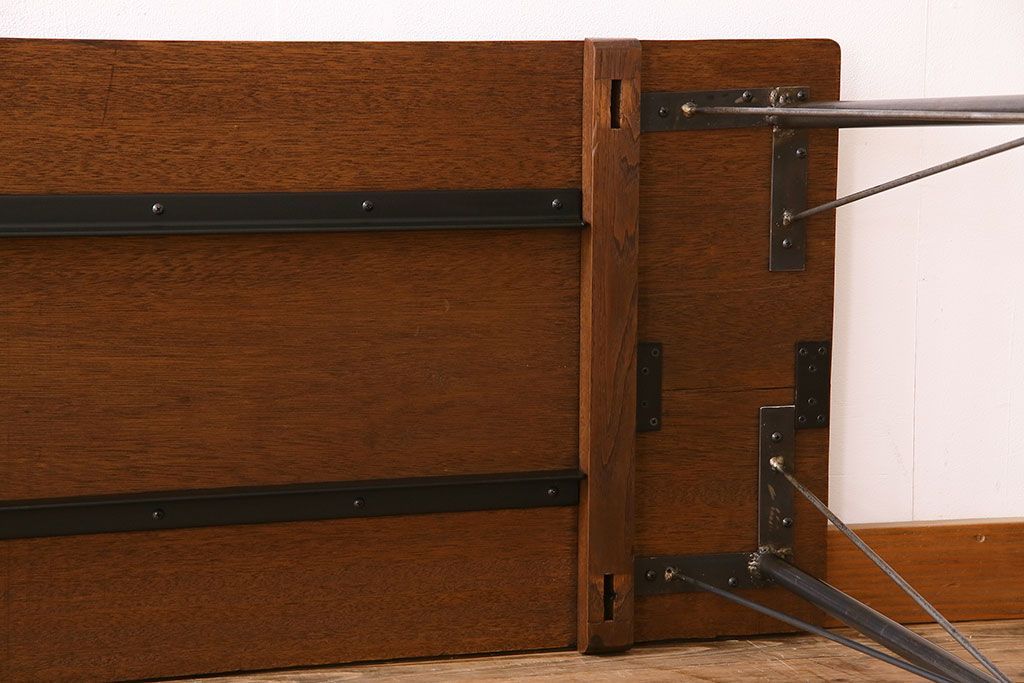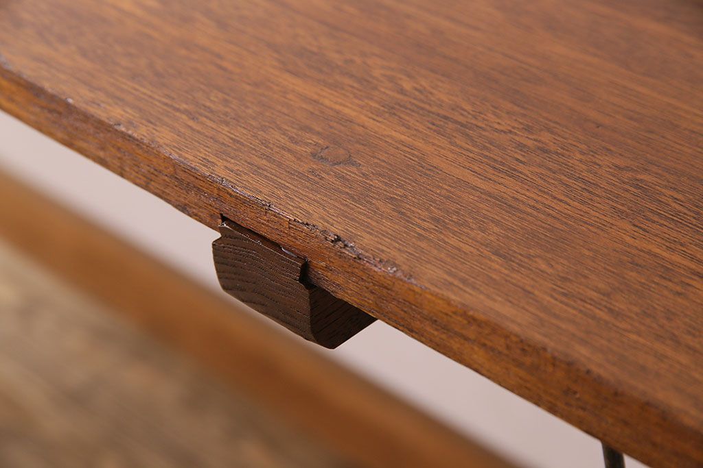 アンティーク家具 ラワン材製 天板一枚板 和製アンティークのシンプルな鉄脚テーブル(2)