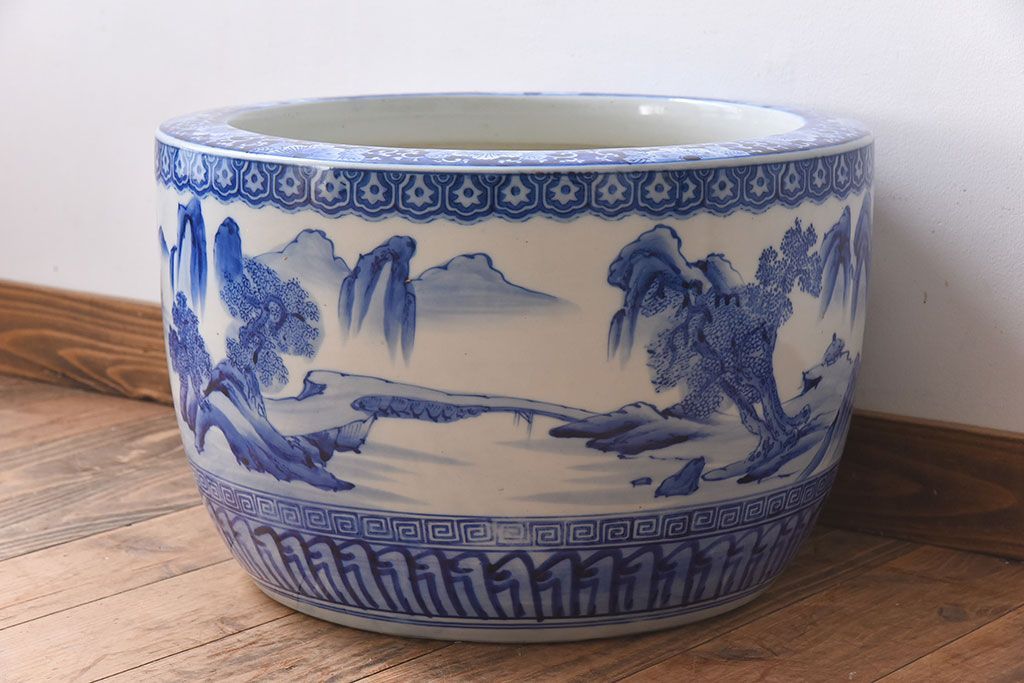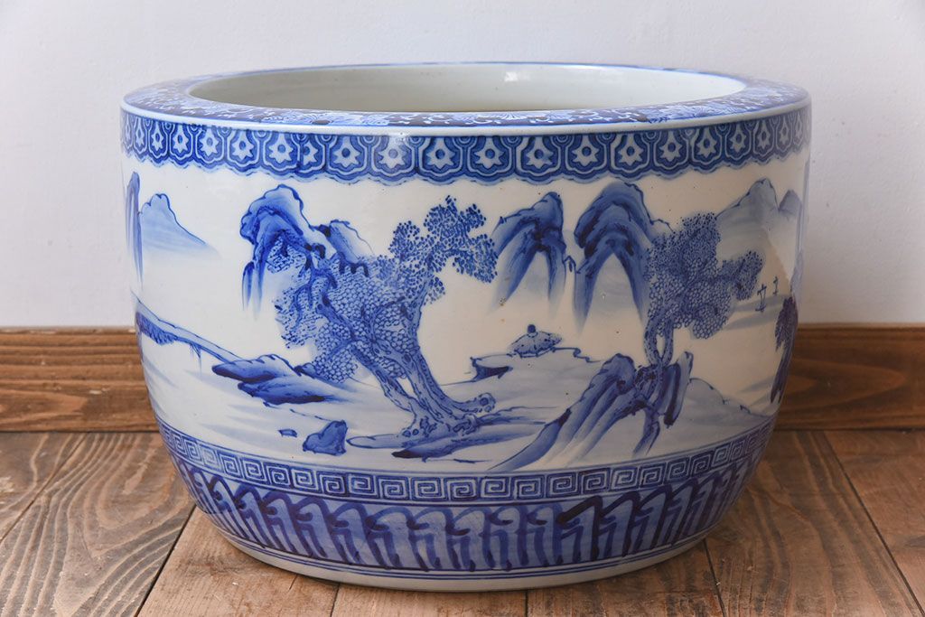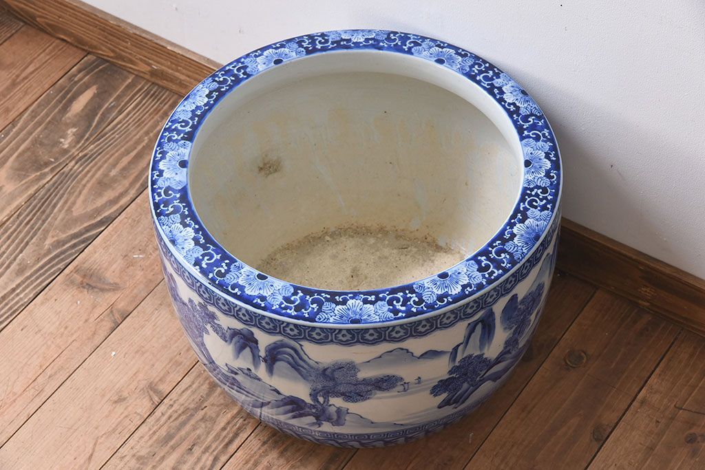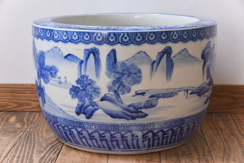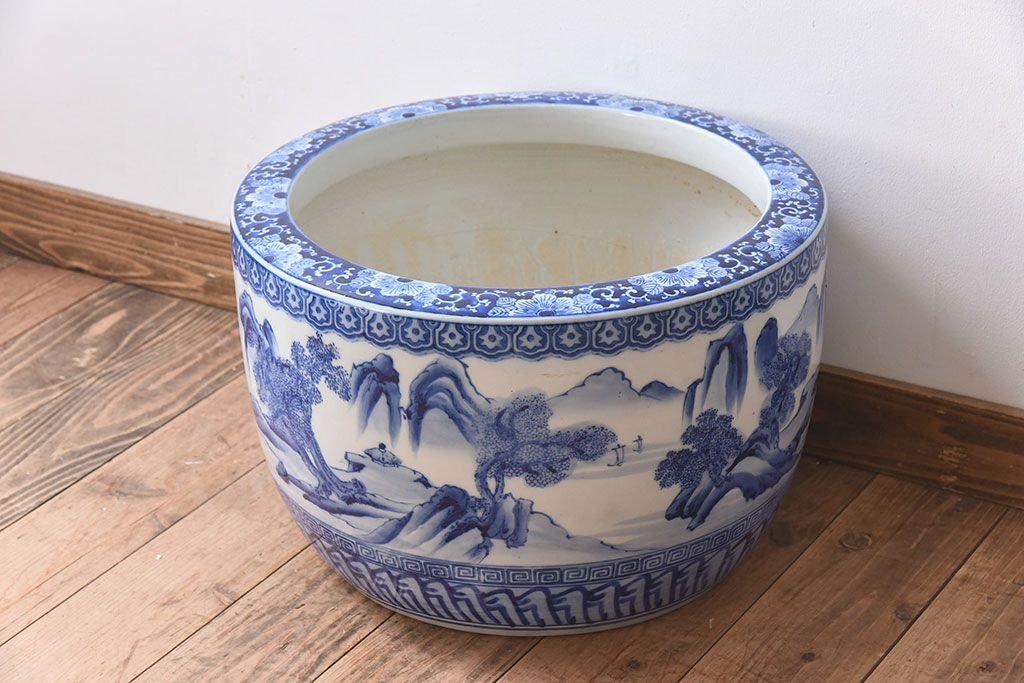 アンティーク雑貨 古民具・骨董 山水図 アンティーク瀬戸火鉢(2)