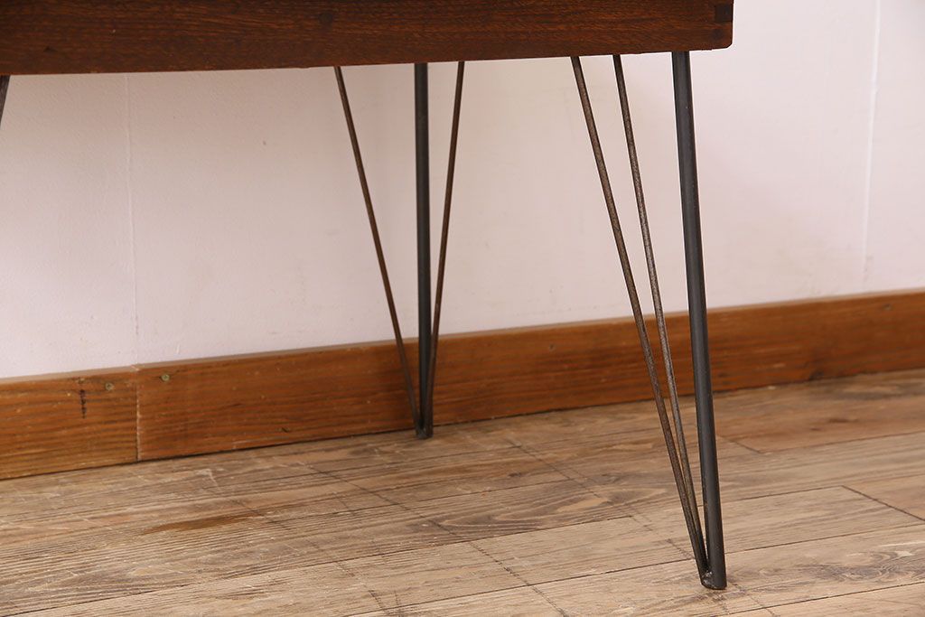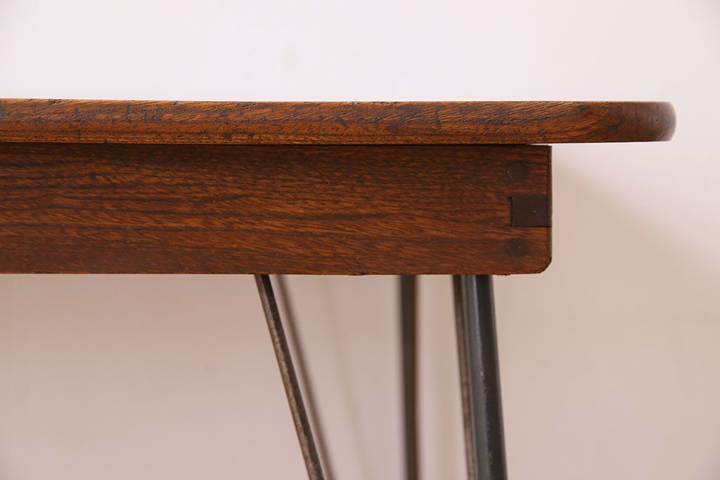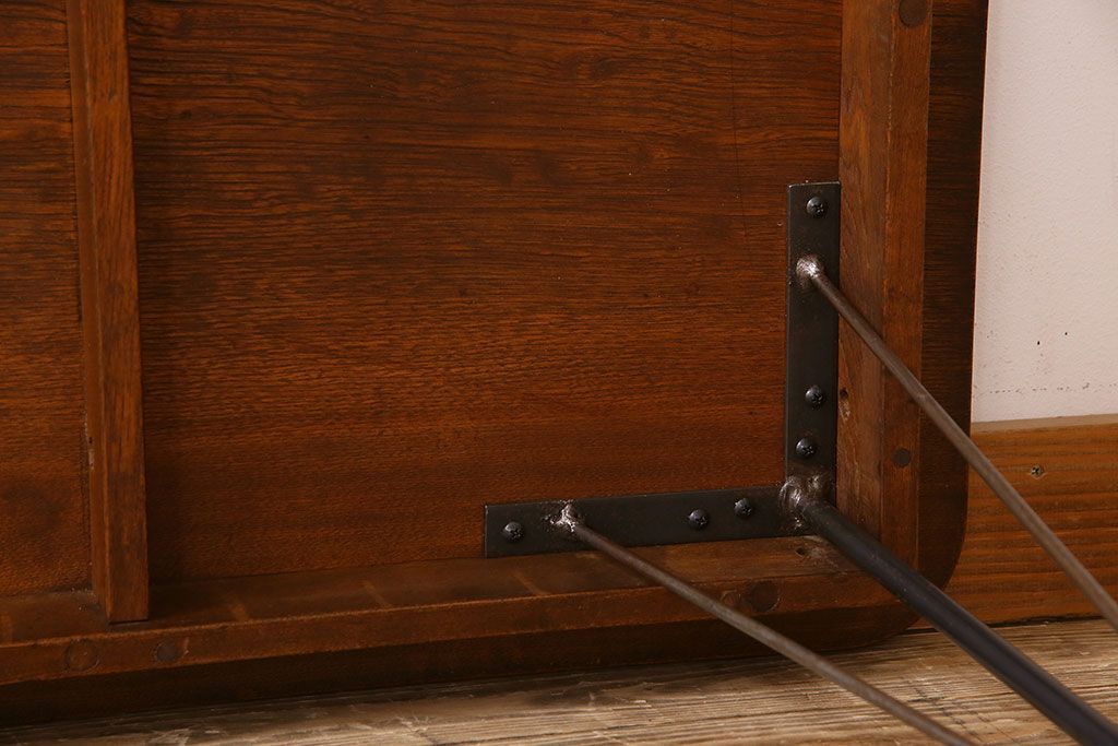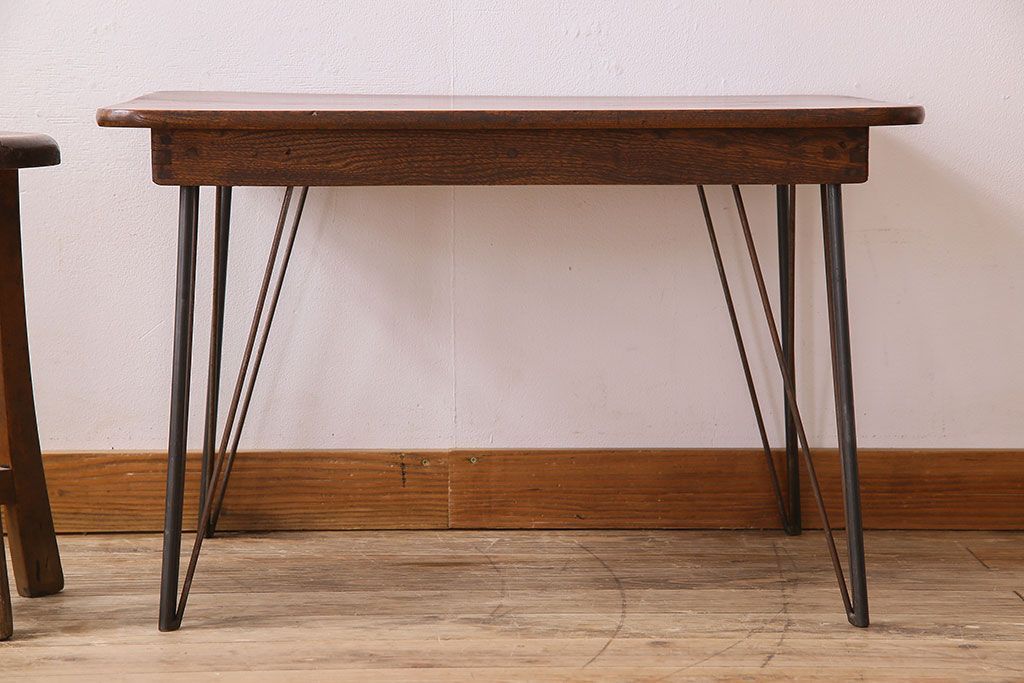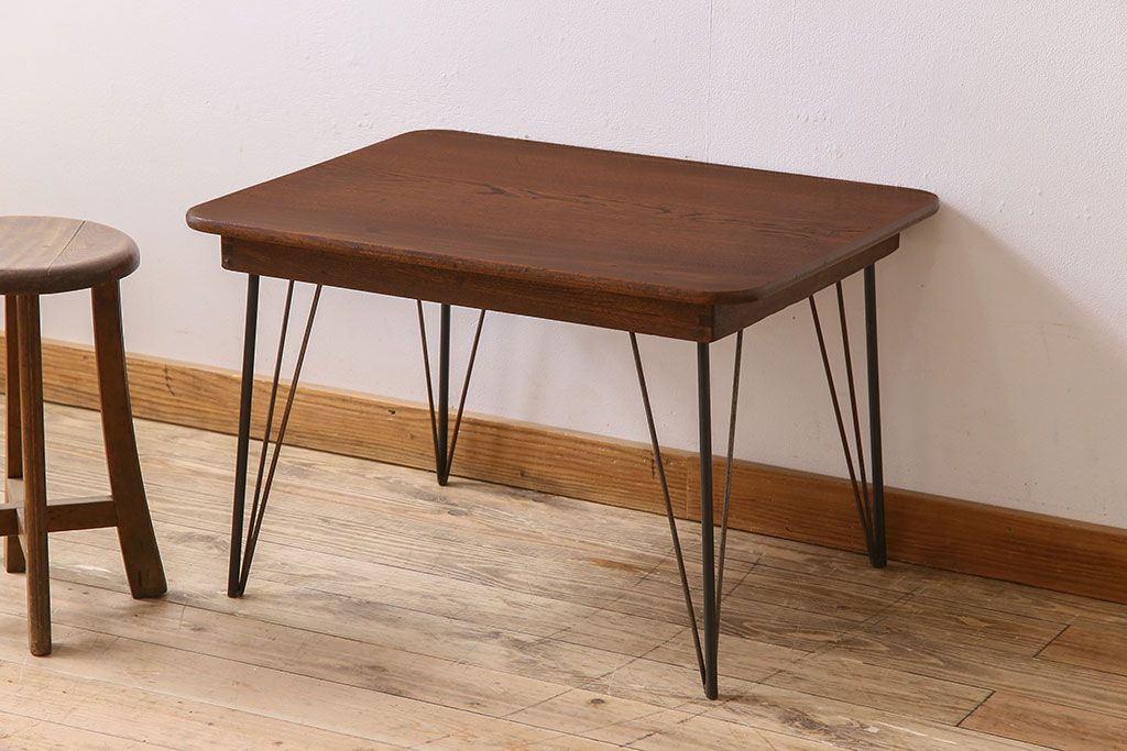 アンティーク家具 和製アンティーク 栓材製!天板一枚板の鉄脚テーブル(センターテーブル)