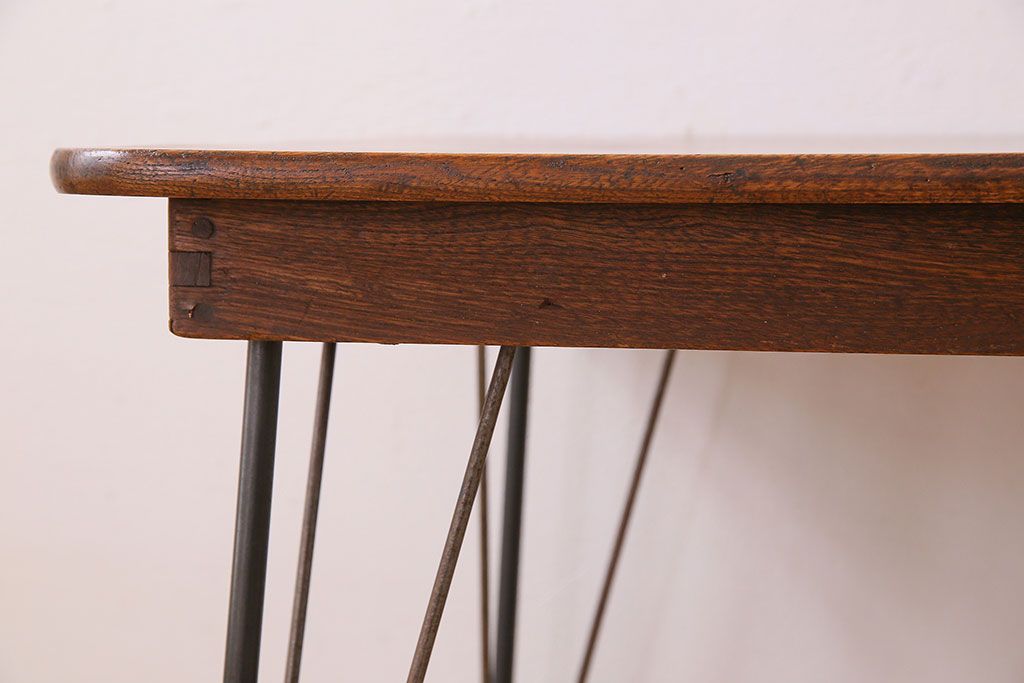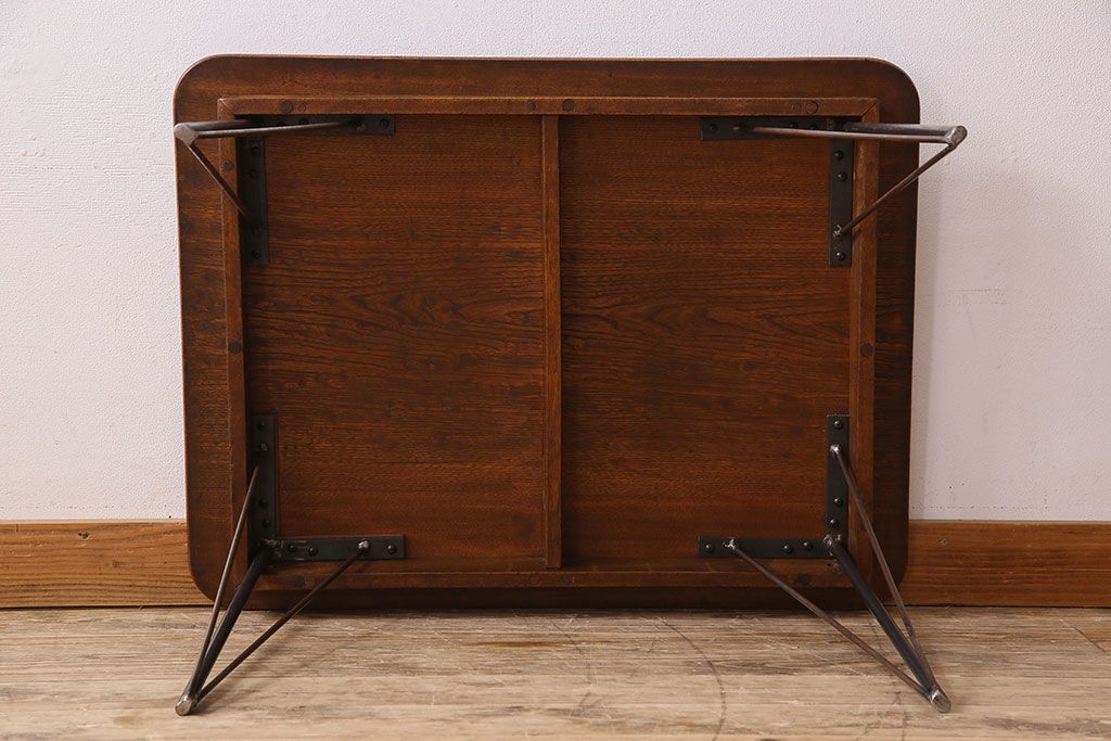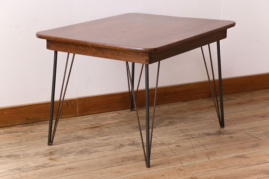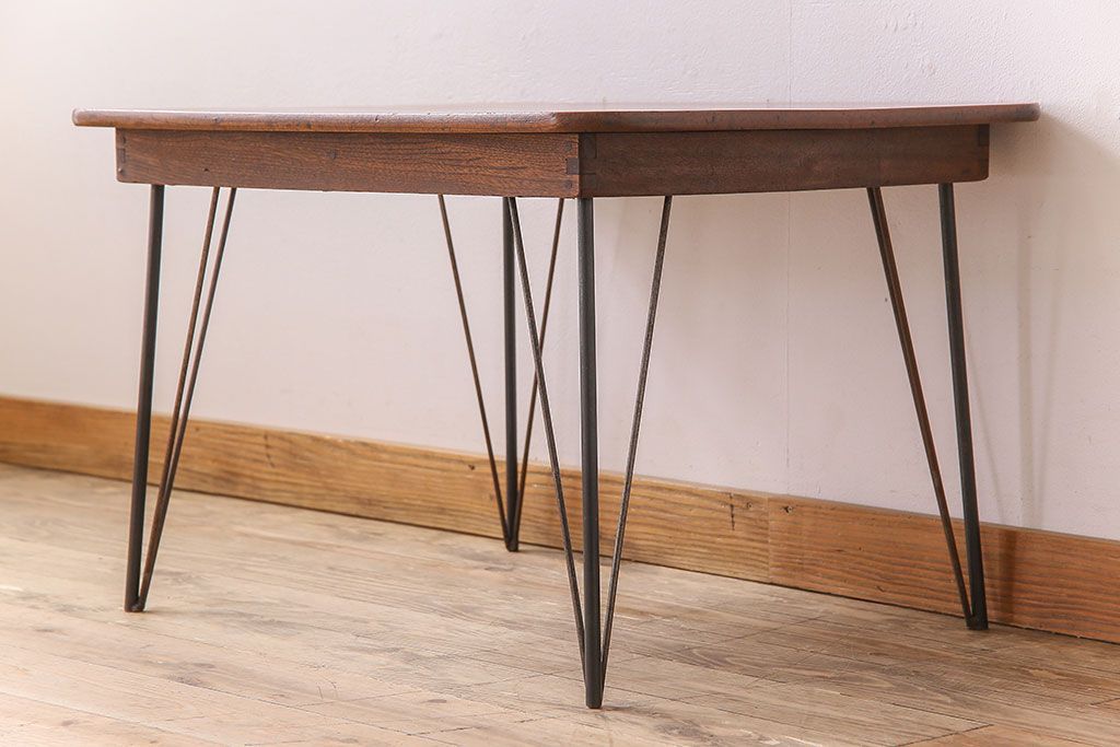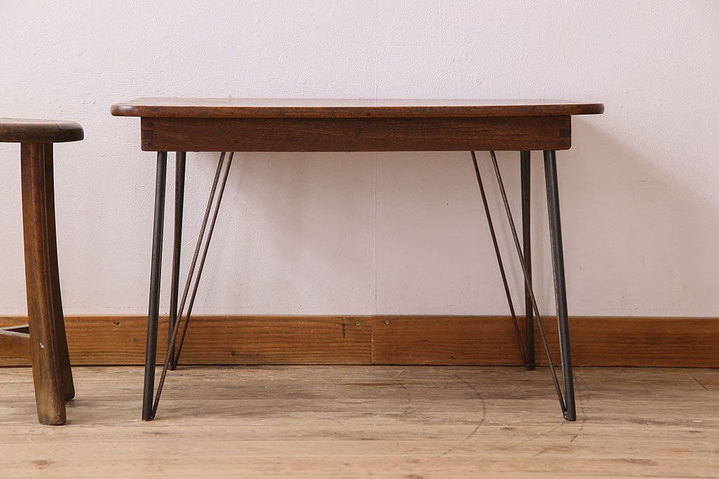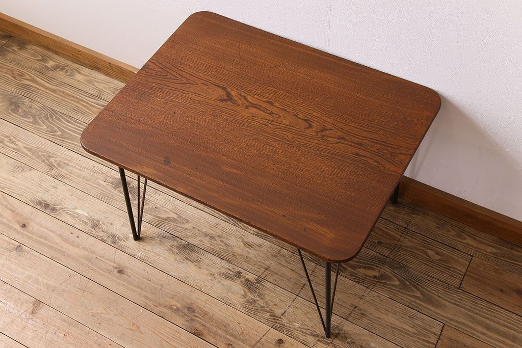 アンティーク家具 和製アンティーク 栓材製!天板一枚板の鉄脚テーブル(センターテーブル)