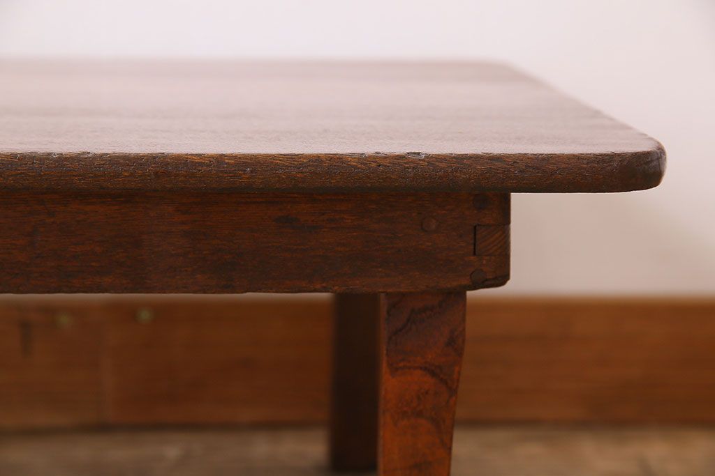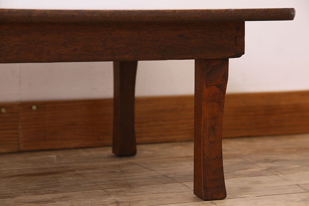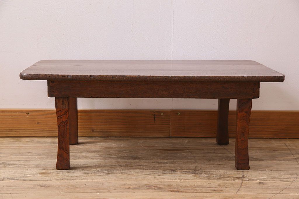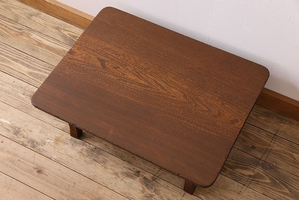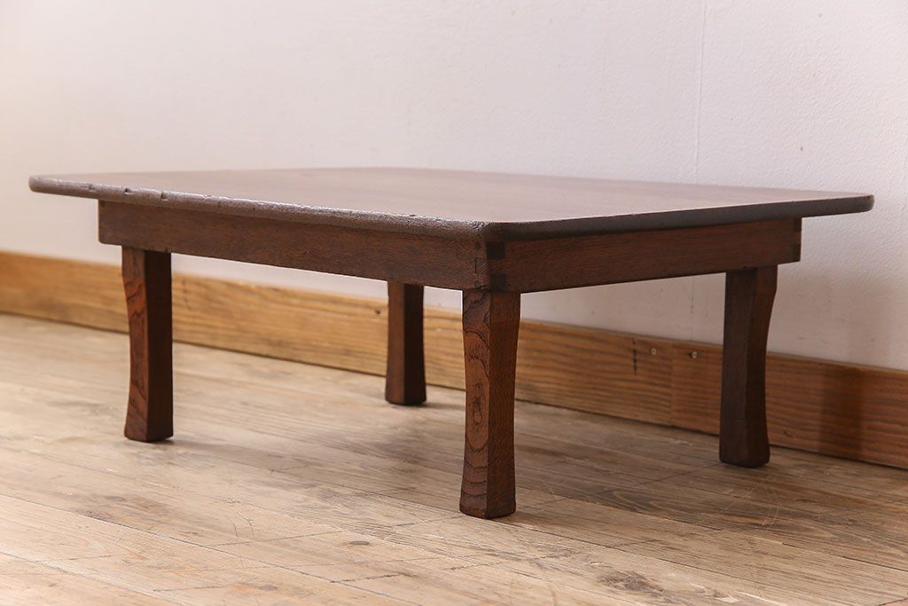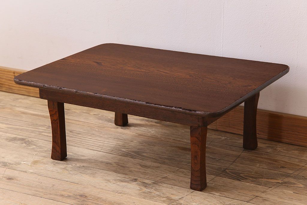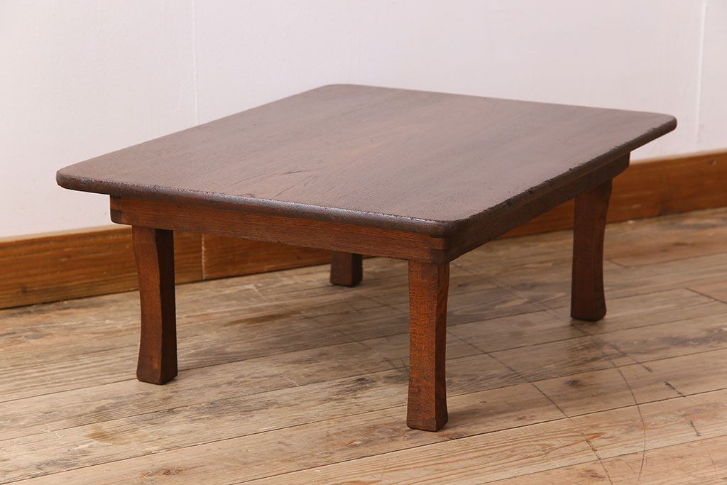 ラフジュ工房> テーブル> センターテーブル・ローテーブル > レトロ家具 和製アンティーク 栓材一枚板 昭和レトロな角ちゃぶ台(1)
