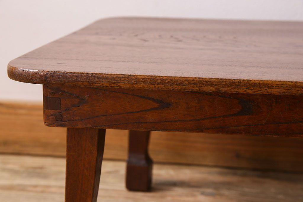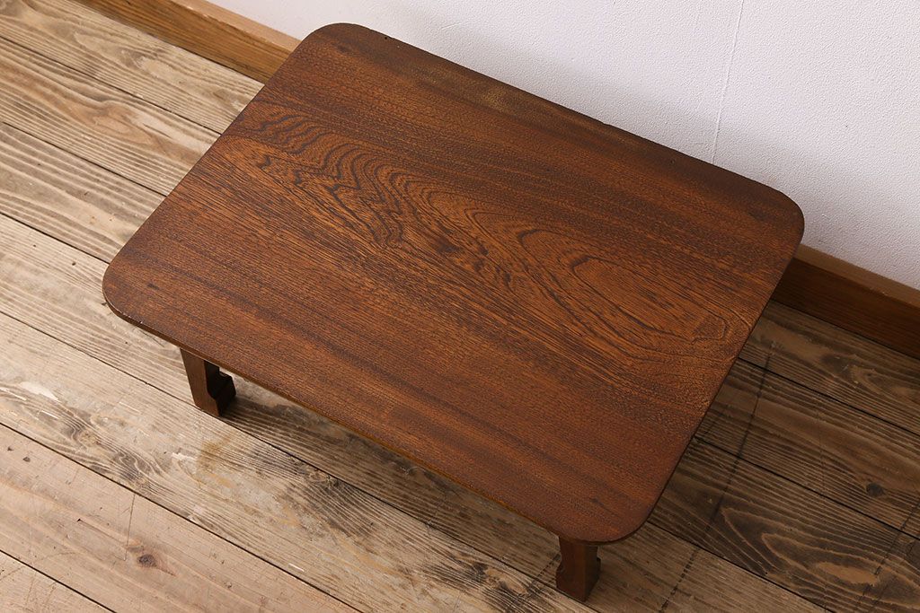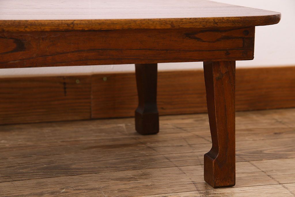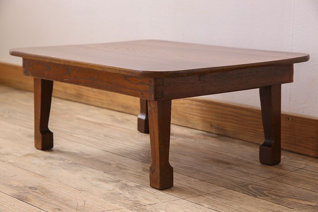 ラフジュ工房> テーブル> センターテーブル・ローテーブル > レトロ家具 和製アンティーク 栓材一枚板 昭和レトロな角ちゃぶ台(2)