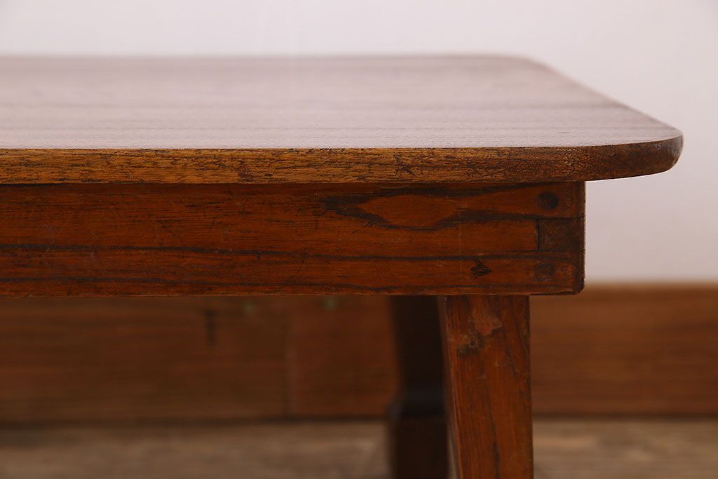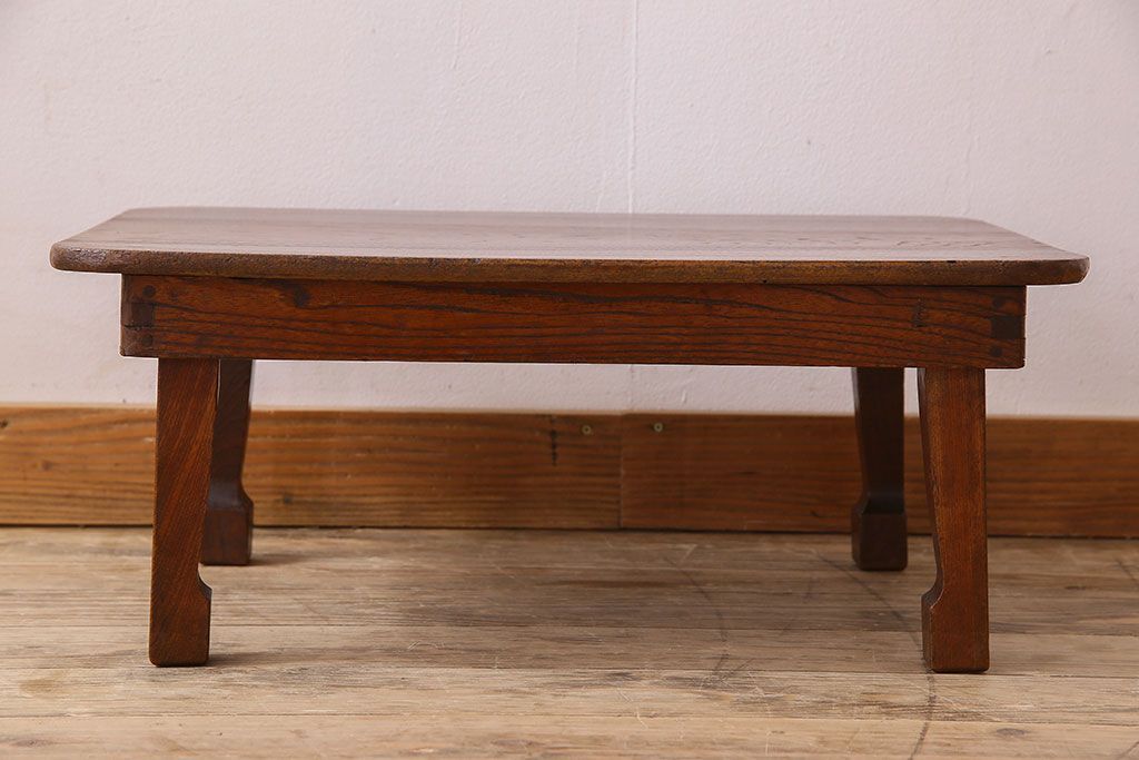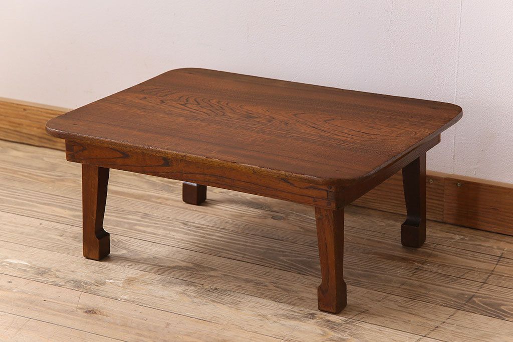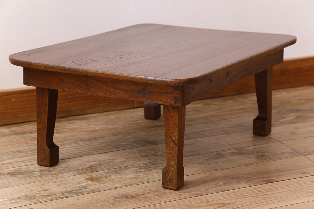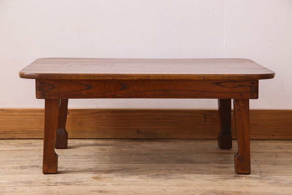 ラフジュ工房> テーブル> センターテーブル・ローテーブル > レトロ家具 和製アンティーク 栓材一枚板 昭和レトロな角ちゃぶ台(2)