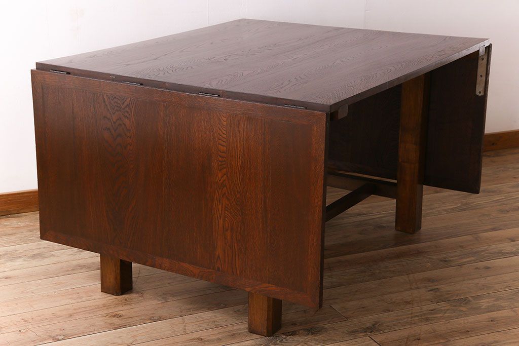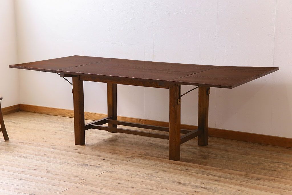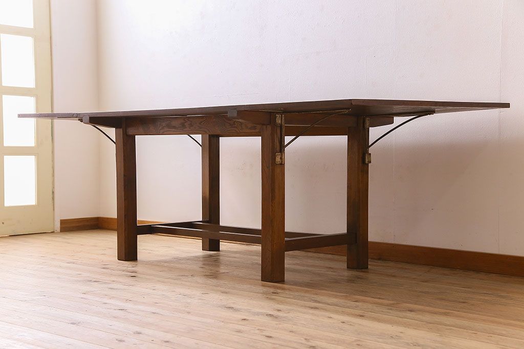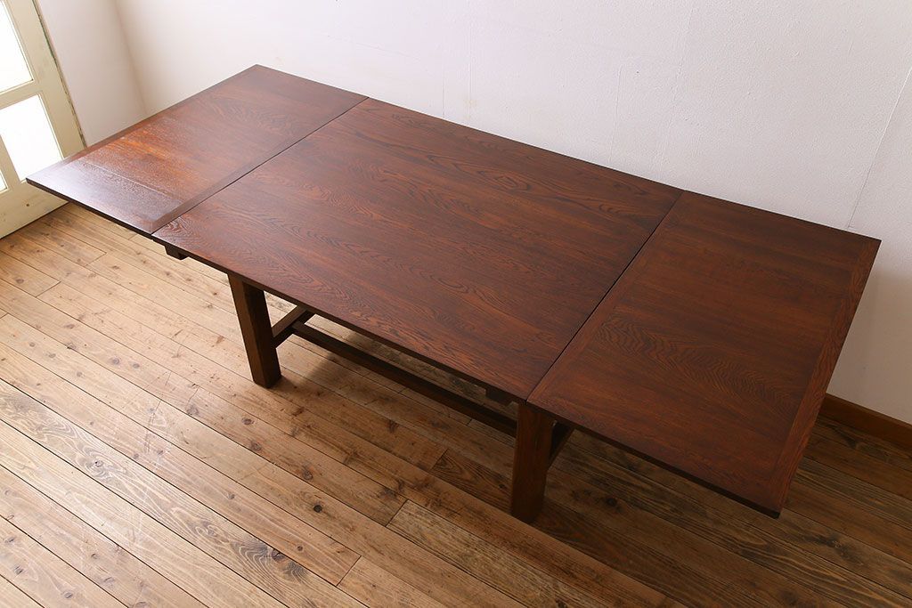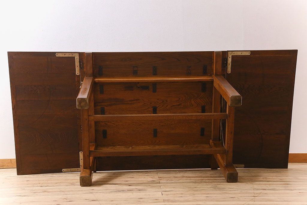 ラフジュ工房> テーブル> 6人用ダイニングテーブル > アンティーク 総ナラ材の重厚なバタフライテーブル(作業台・ダイニングテーブル)