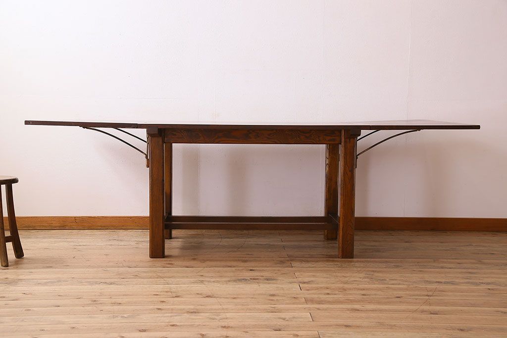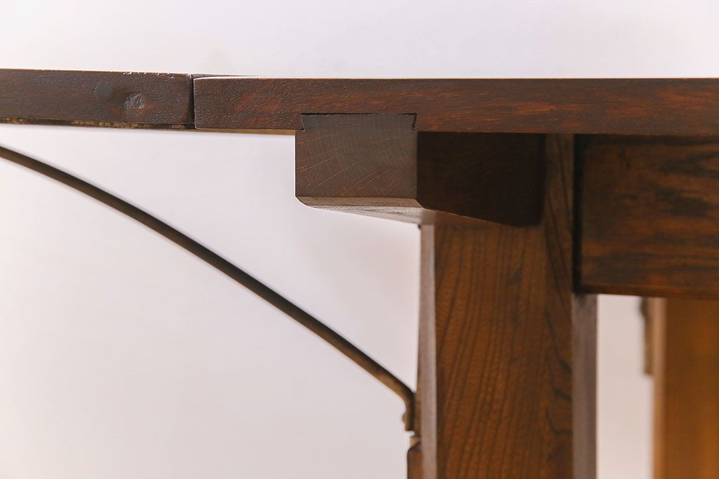 ラフジュ工房> テーブル> 4人用ダイニングテーブル > アンティーク 総ナラ材の重厚なバタフライテーブル(作業台・ダイニングテーブル)