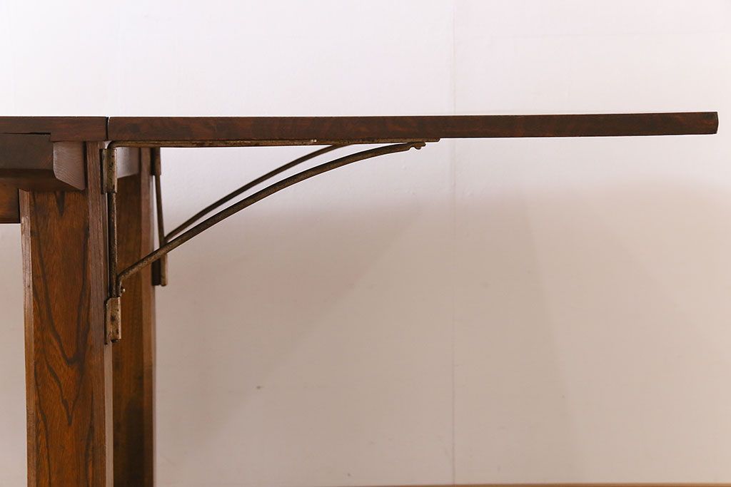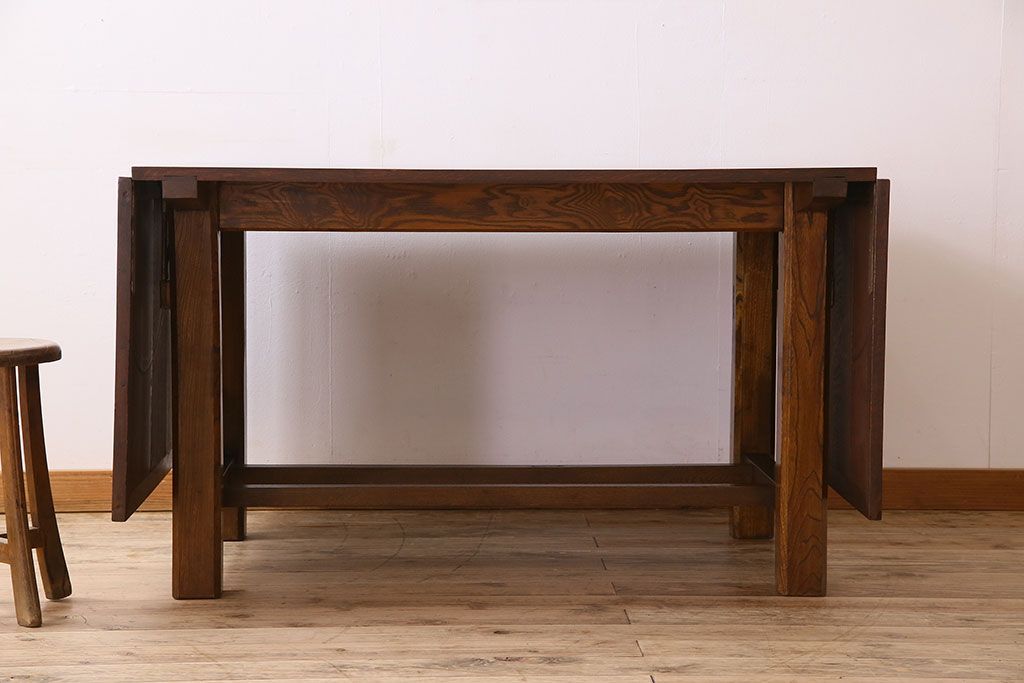 ラフジュ工房> テーブル> 2人用ダイニングテーブル > アンティーク 総ナラ材の重厚なバタフライテーブル(作業台・ダイニングテーブル)