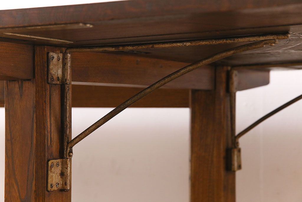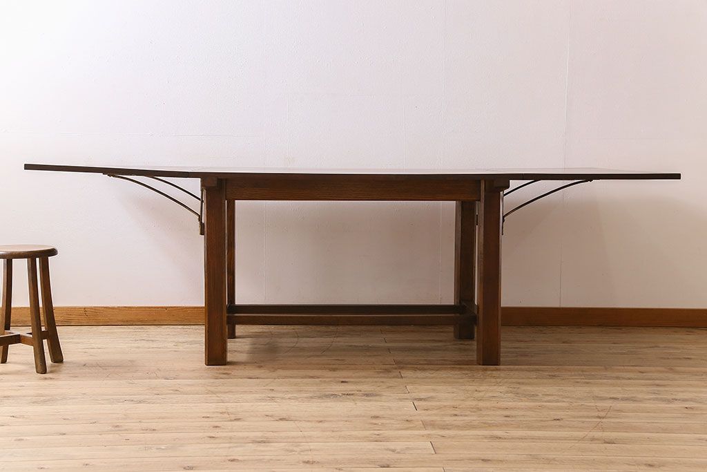 ラフジュ工房> テーブル> 作業台 > アンティーク 総ナラ材の重厚なバタフライテーブル(作業台・ダイニングテーブル)
