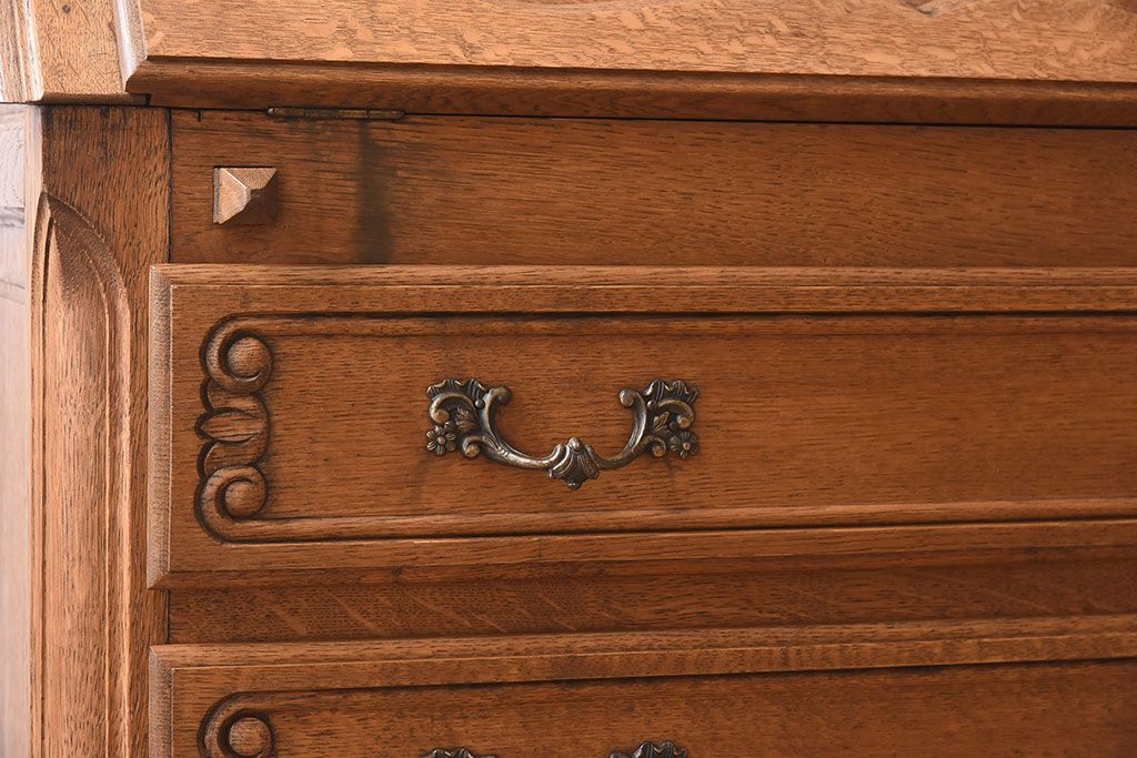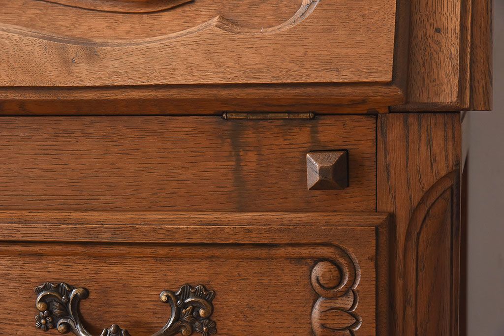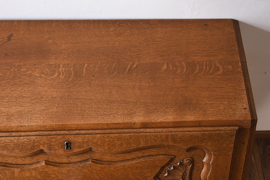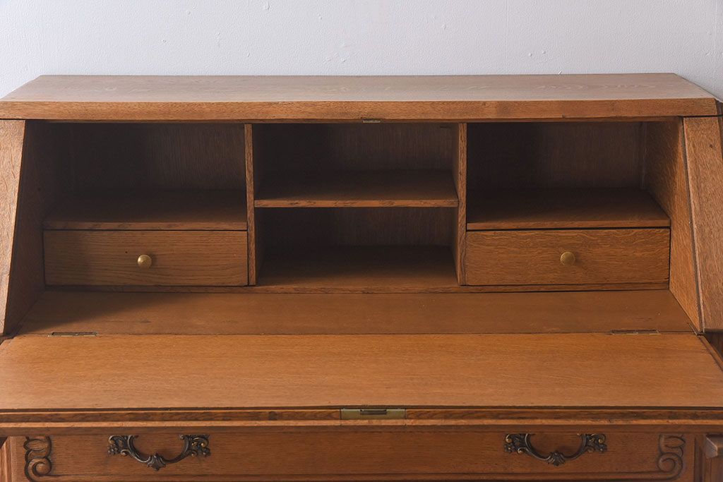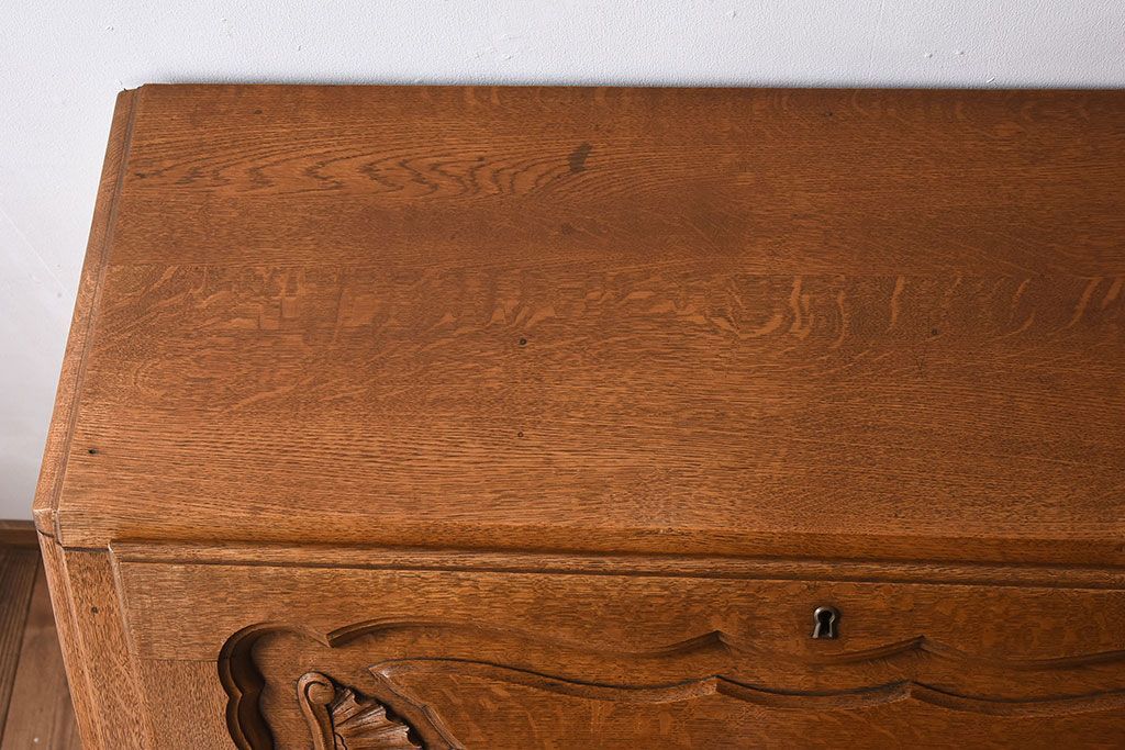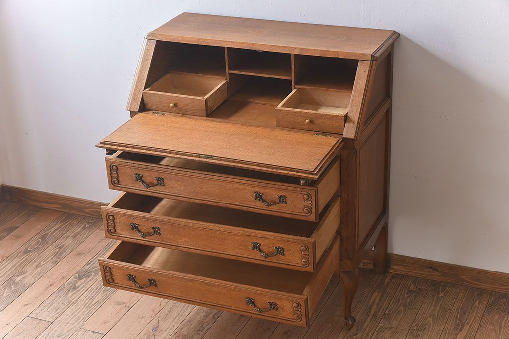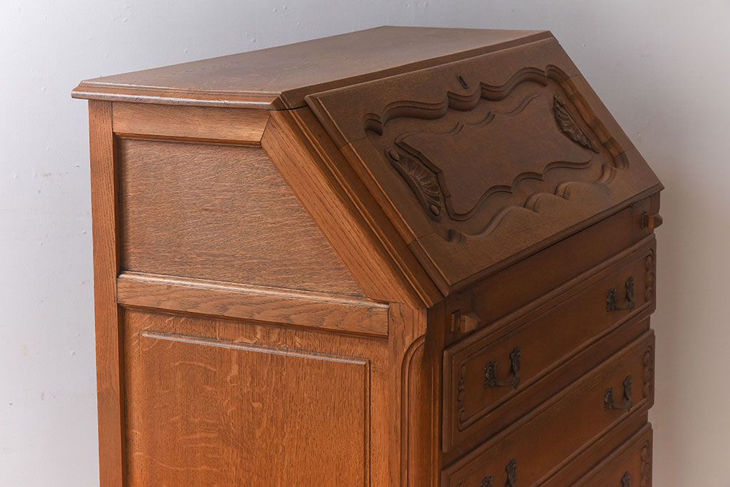ヴィンテージ家具 フランスビンテージ 美しい彫刻入り!上質なオーク材製のライティングビューロー