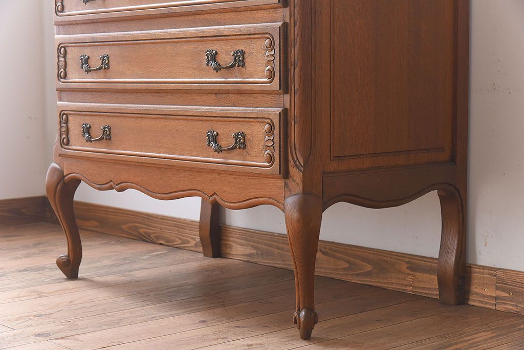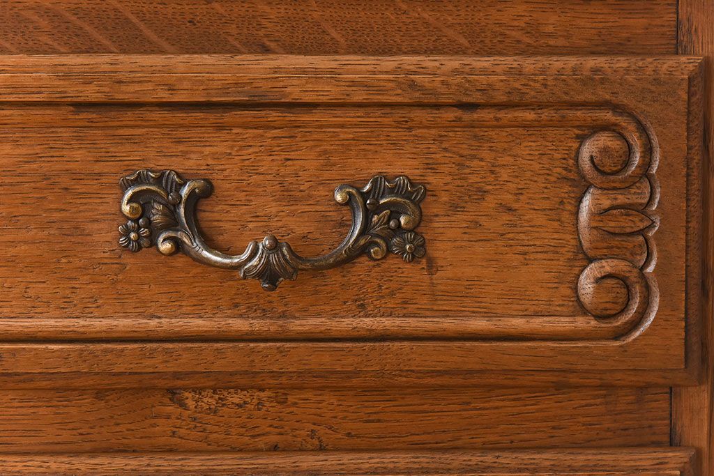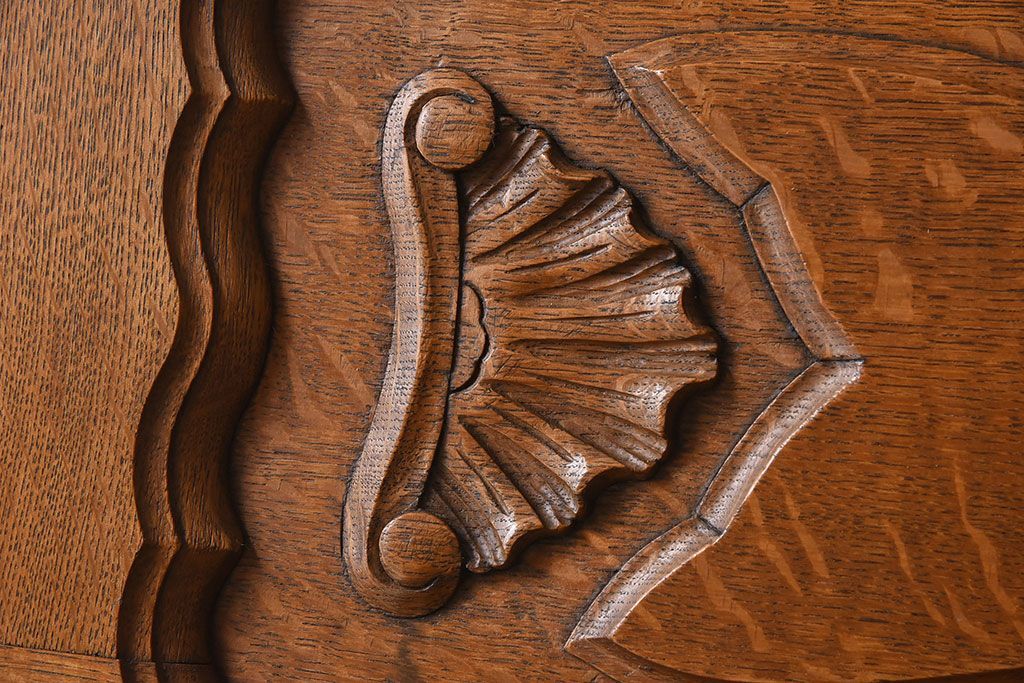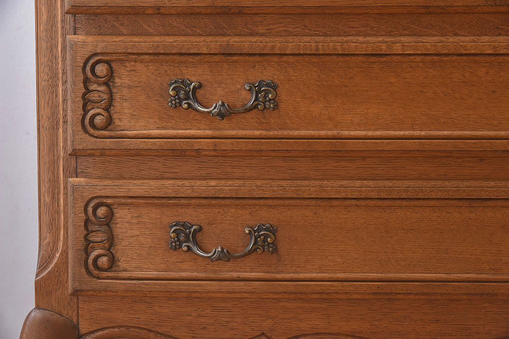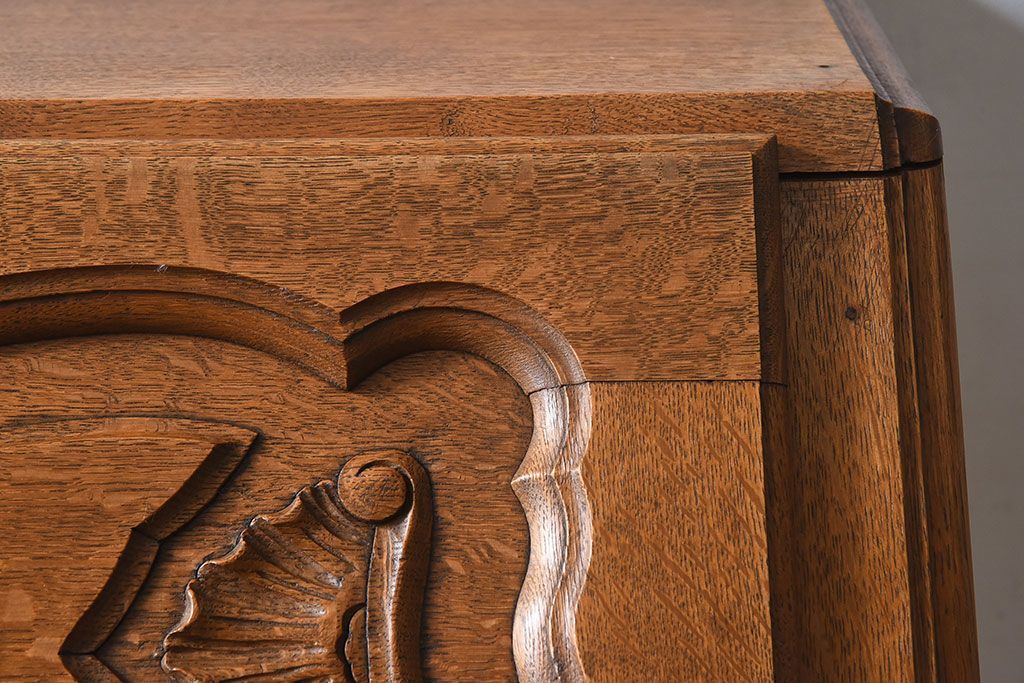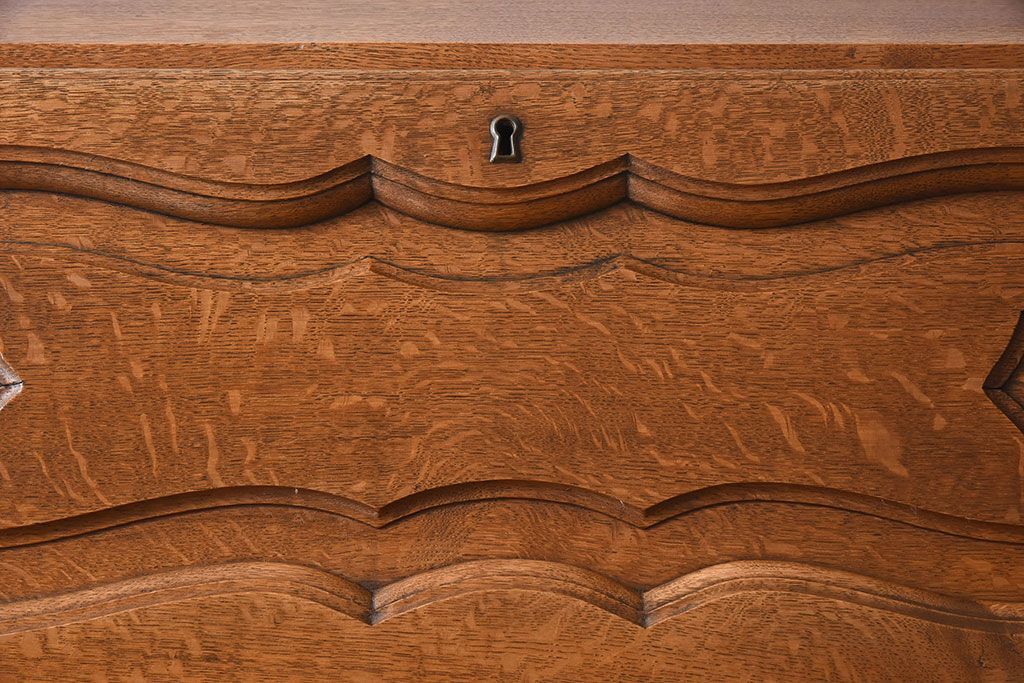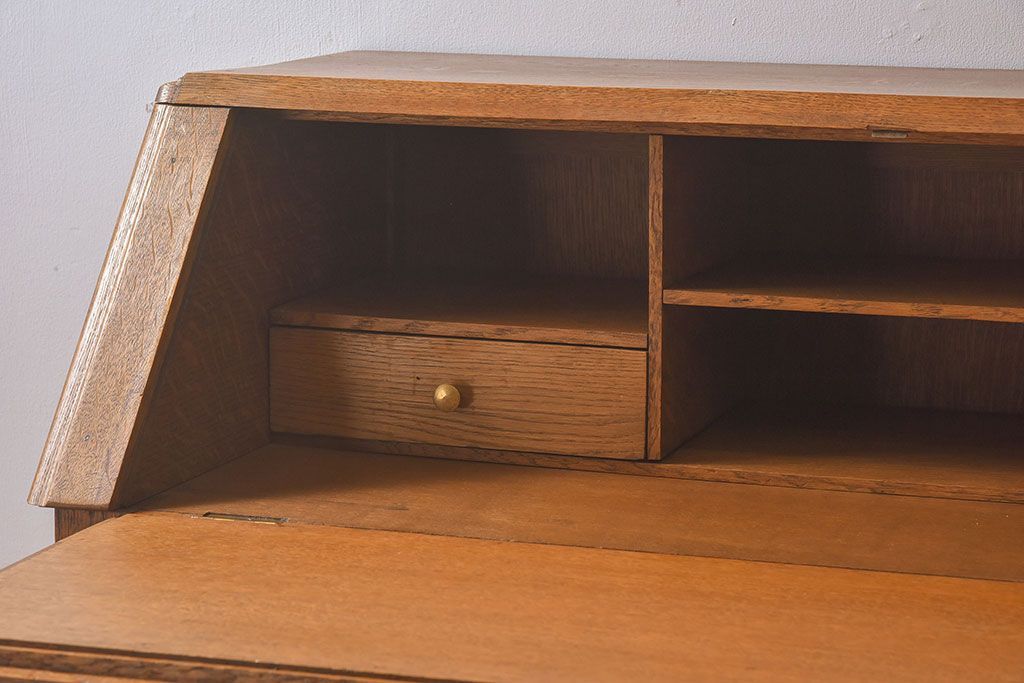 ヴィンテージ家具 フランスビンテージ 美しい彫刻入り!上質なオーク材製のライティングビューロー