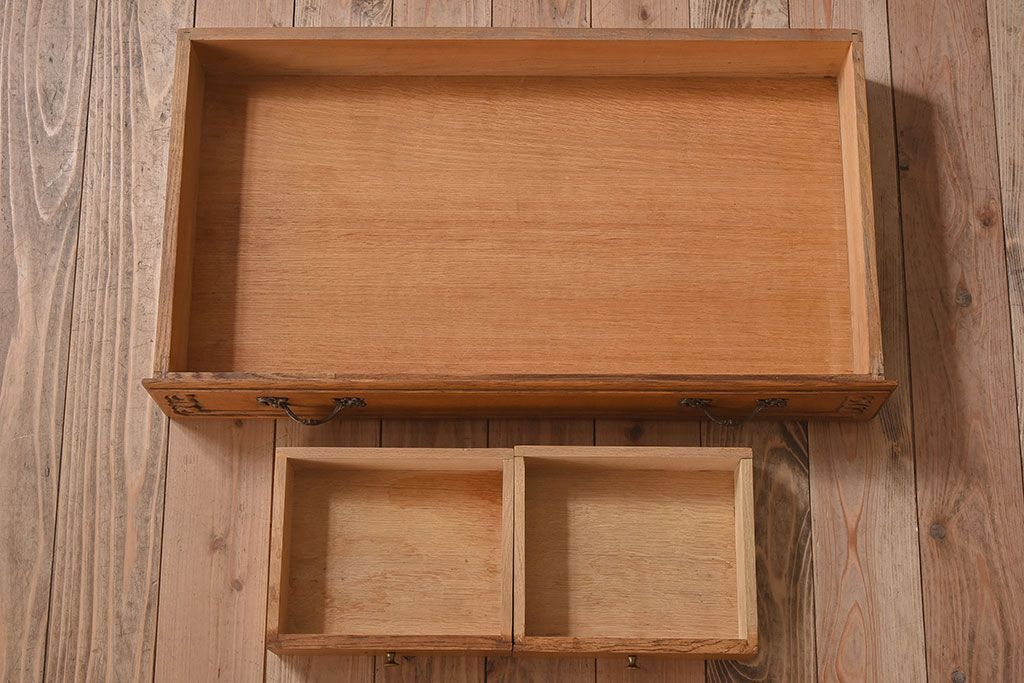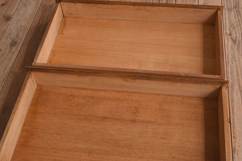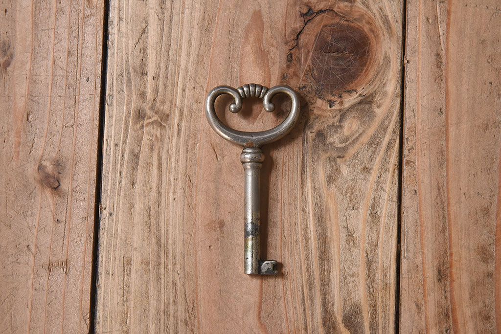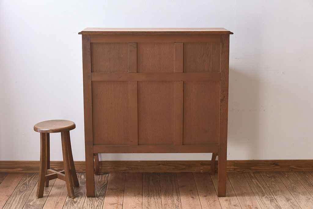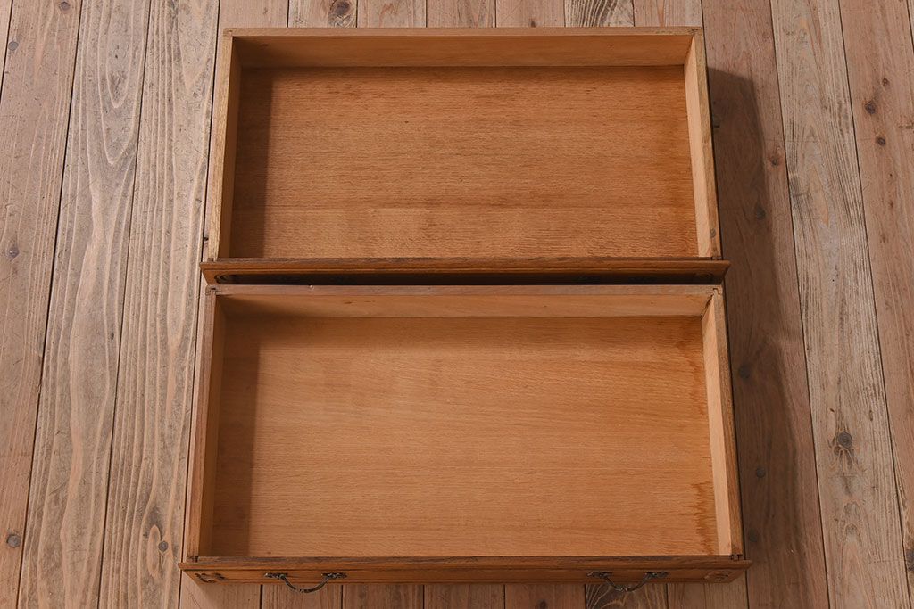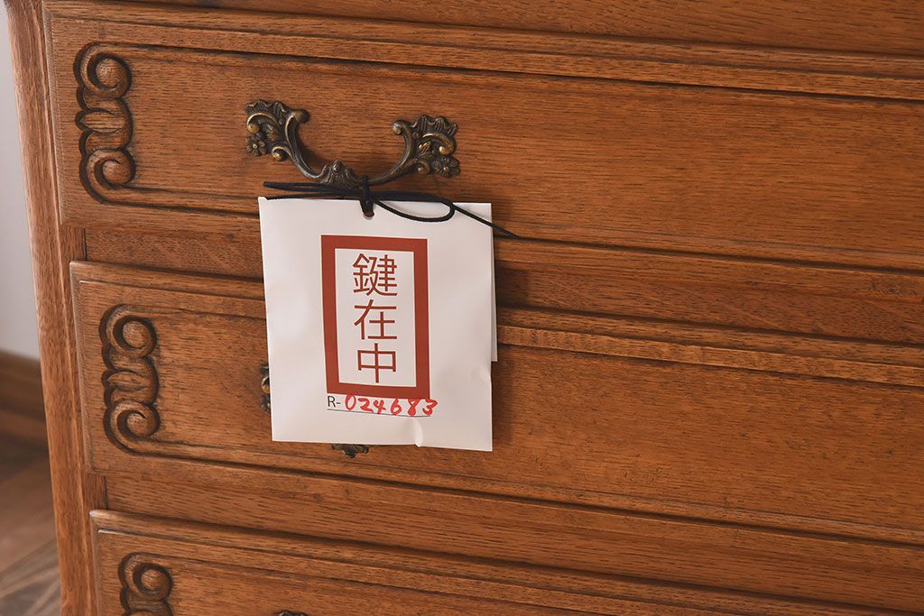 23枚目の画像にありますように引き出しの最下段の取っ手に欠けがありますので、ご理解の上お願いします。鍵は付属します。画像にありますように、袋に入れお付けします。スムーズに動くように調整していますが、あくまでも古いものや中古品ですので、長期の使用保証は出来かねます。ご購入後不具合が発生した場合は、当店でサポートさせていただきますので、お気軽にご相談くださいませ。