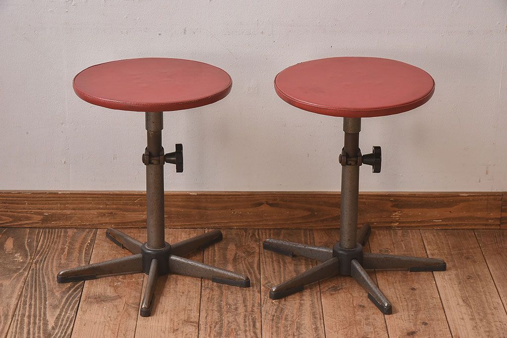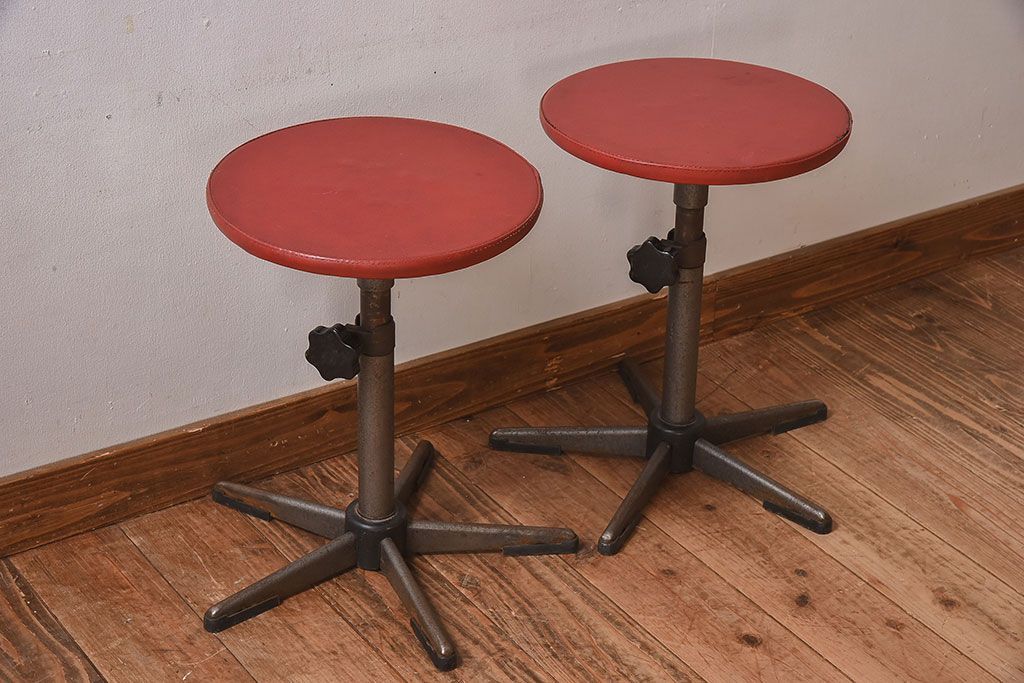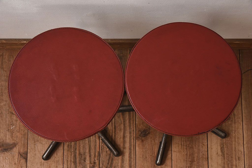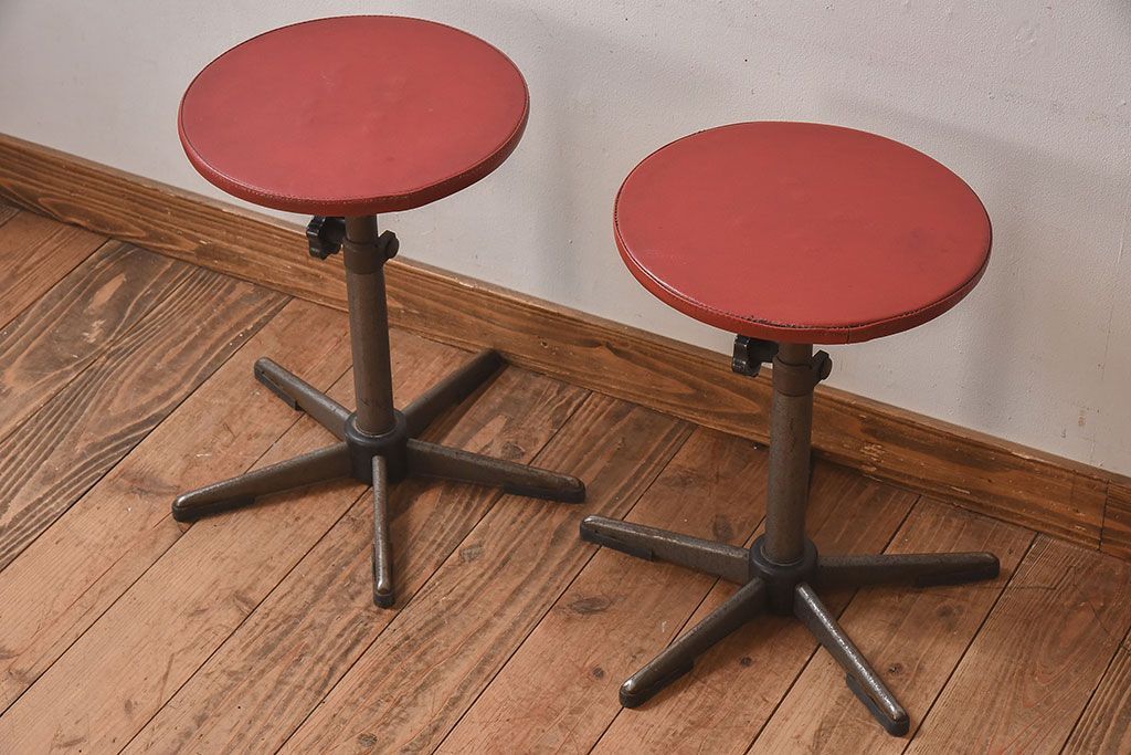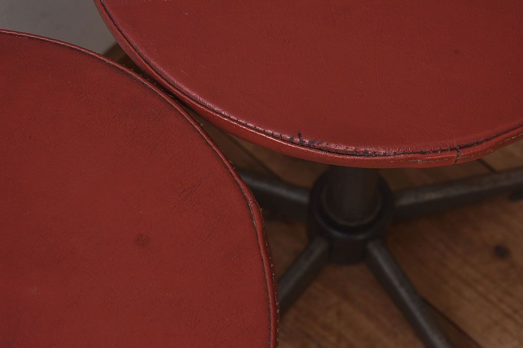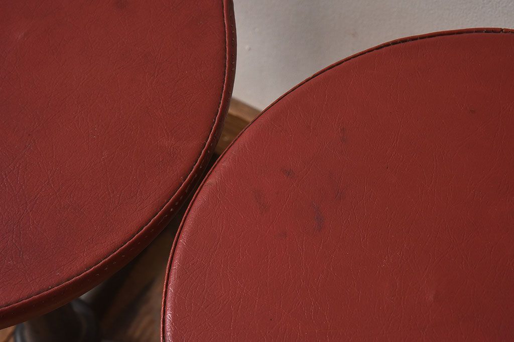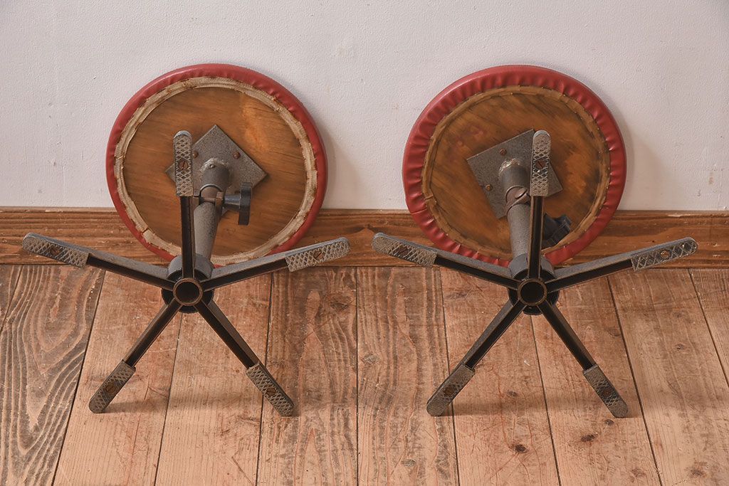 ヴィンテージ家具 イギリスビンテージ 当時物合皮のシャビーな回転椅子2脚セット(スツール、イス、チェア)