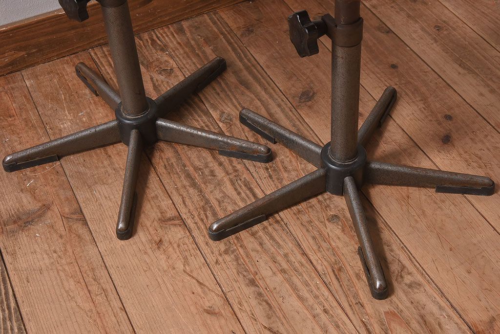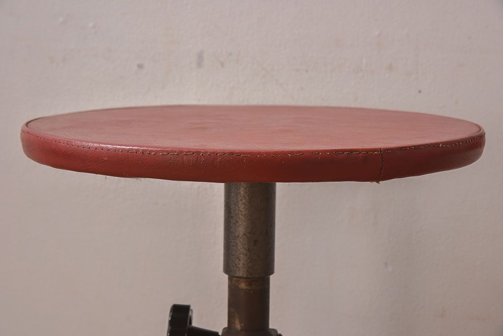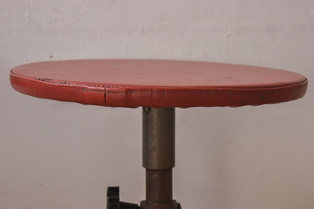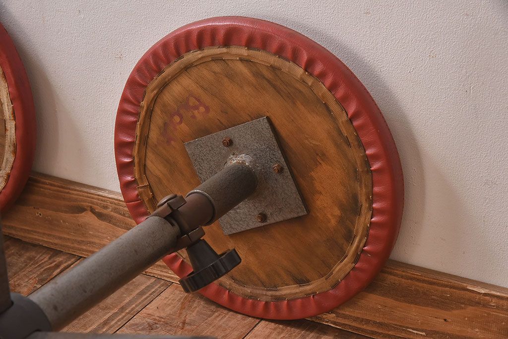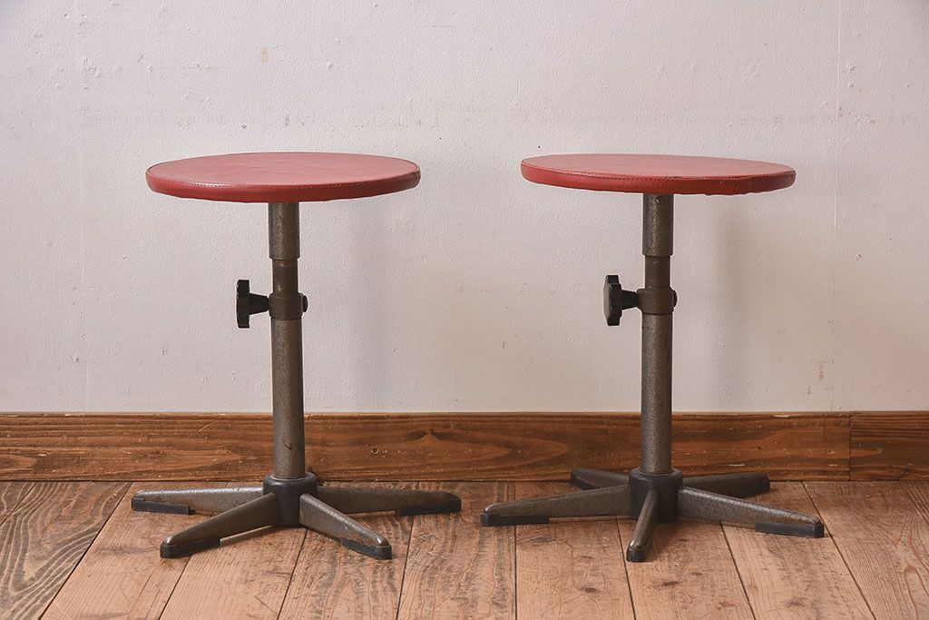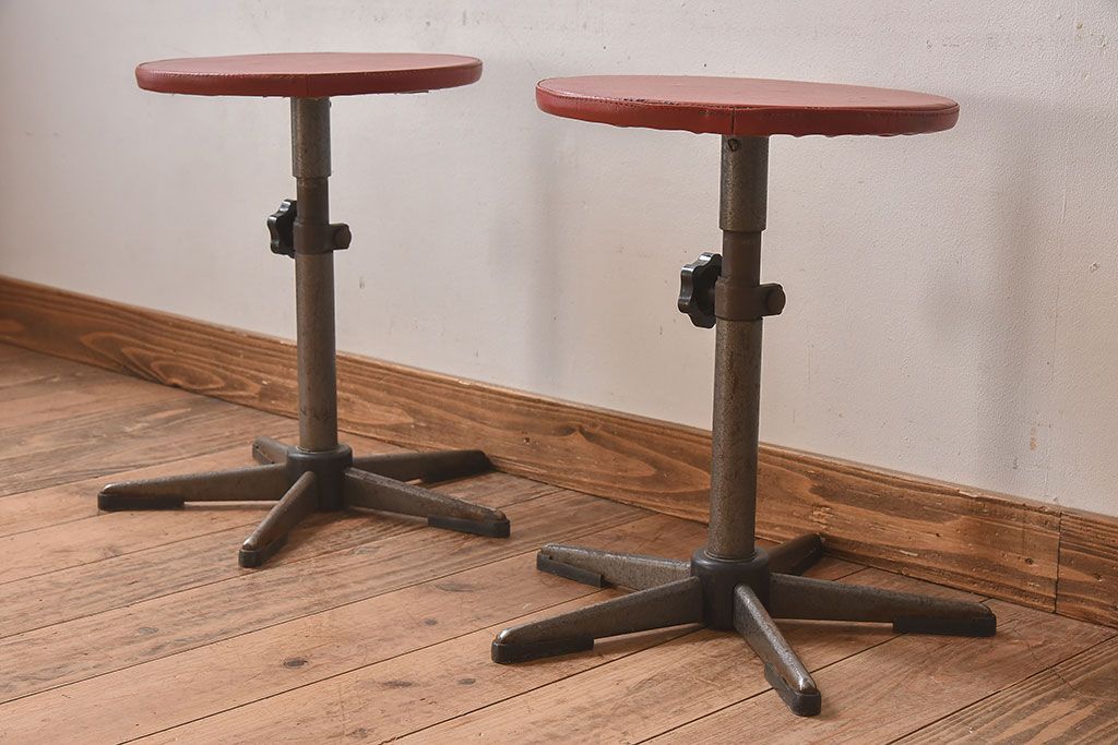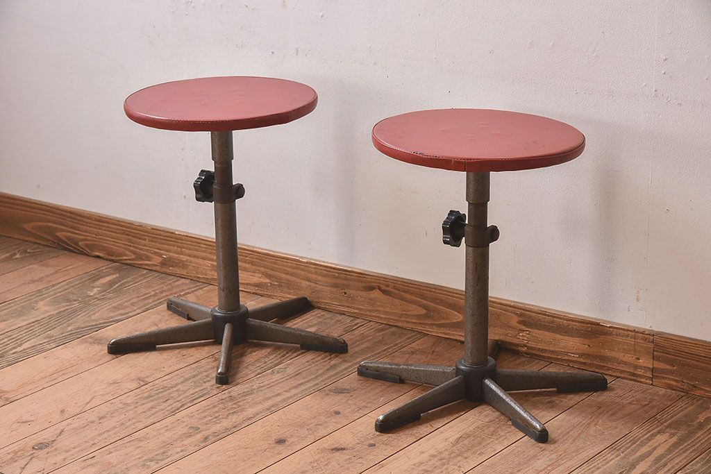 ヴィンテージ家具 イギリスビンテージ 当時物合皮のシャビーな回転椅子2脚セット(スツール、イス、チェア)
