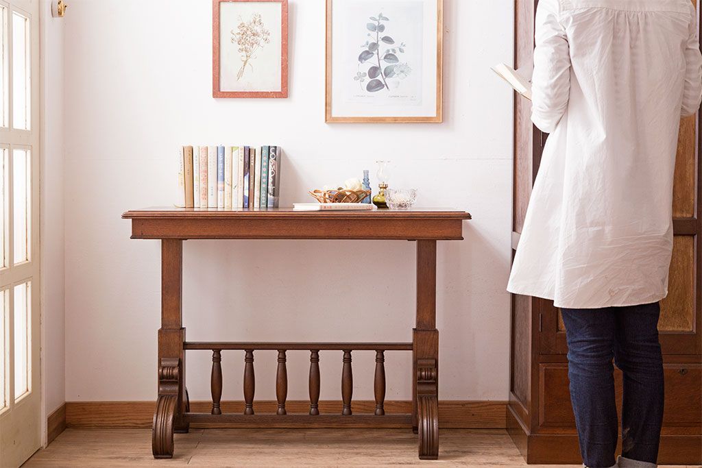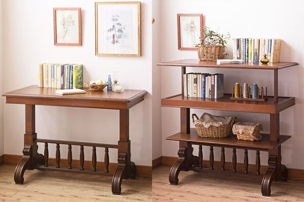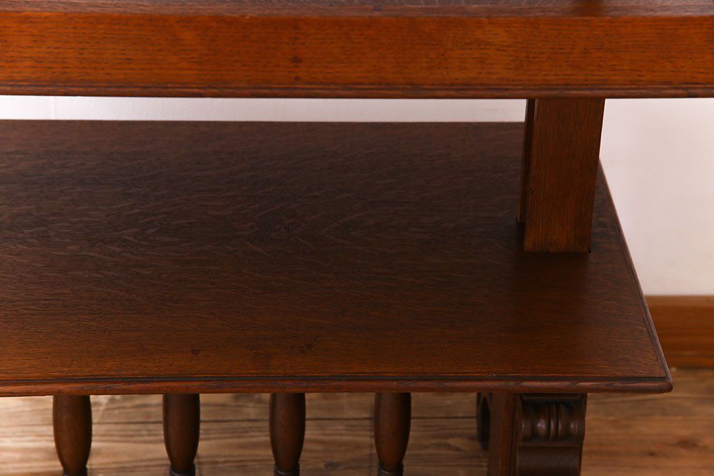 ラフジュ工房> テーブル> コンソールテーブル > アンティーク家具 激レア!オーク材 イギリスアンティークのテーブル&シェルフ(サイドテーブル・飾り棚)