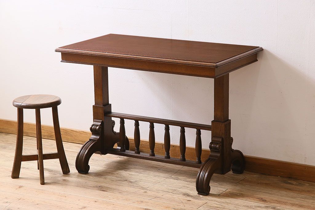 ラフジュ工房> テーブル> 作業台 > アンティーク家具 激レア!オーク材 イギリスアンティークのテーブル&シェルフ(サイドテーブル・飾り棚)