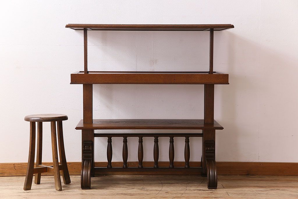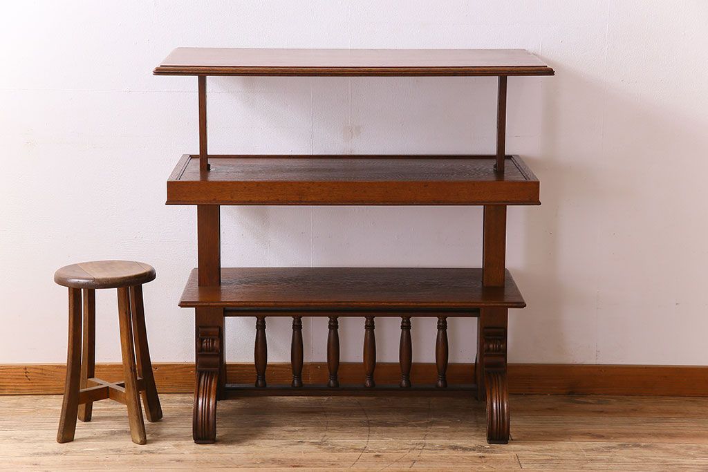 ラフジュ工房> オープンラック・シェルフ> ディスプレイラック > アンティーク家具 激レア!オーク材 イギリスアンティークのテーブル&シェルフ(サイドテーブル・飾り棚)