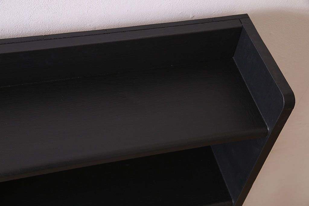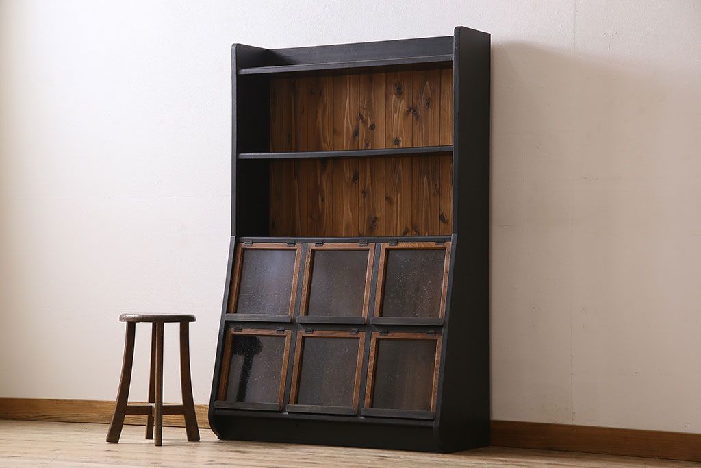 アンティーク家具 アンティーク パタパタ扉付き!ナラ材製の気泡ガラス入りペイント本棚(マガジンラック)(1)
