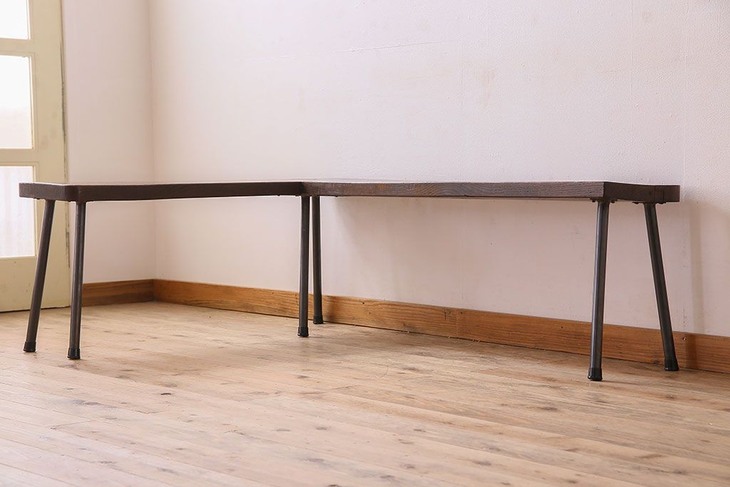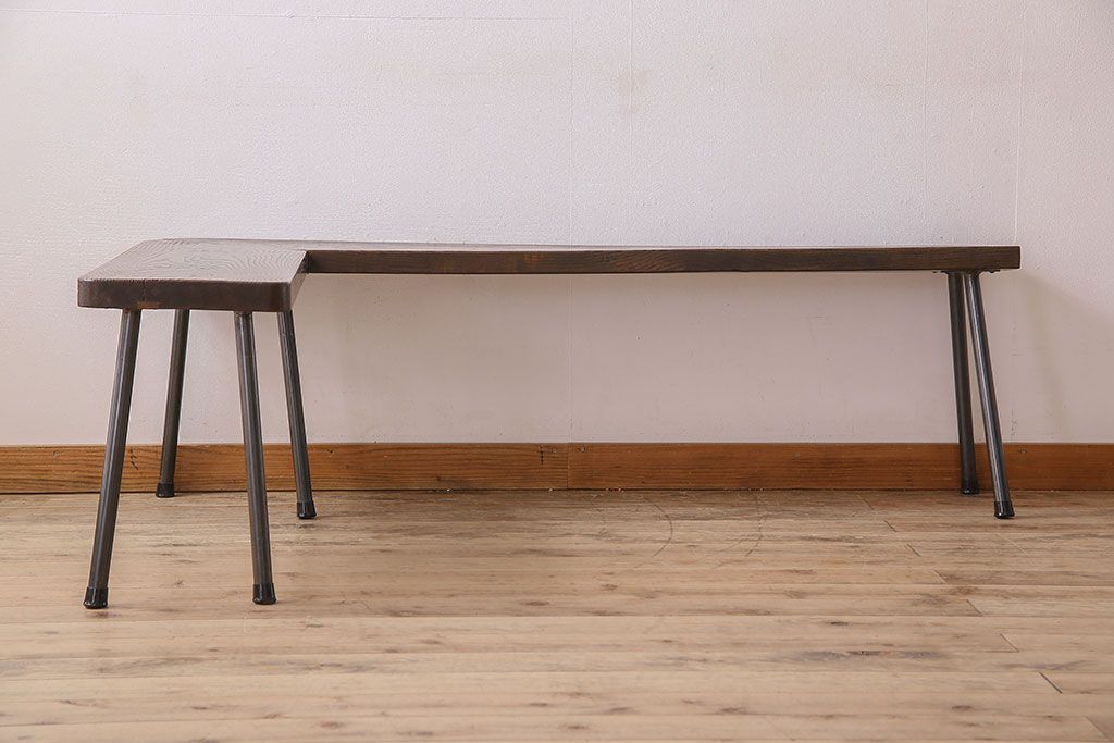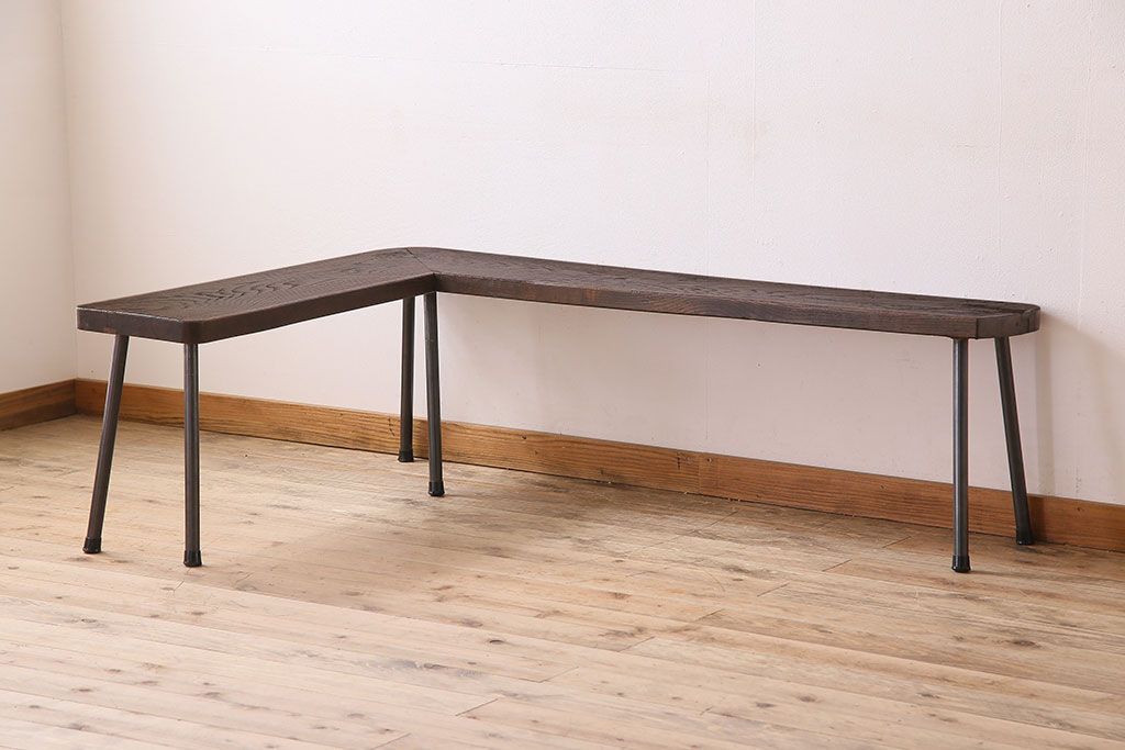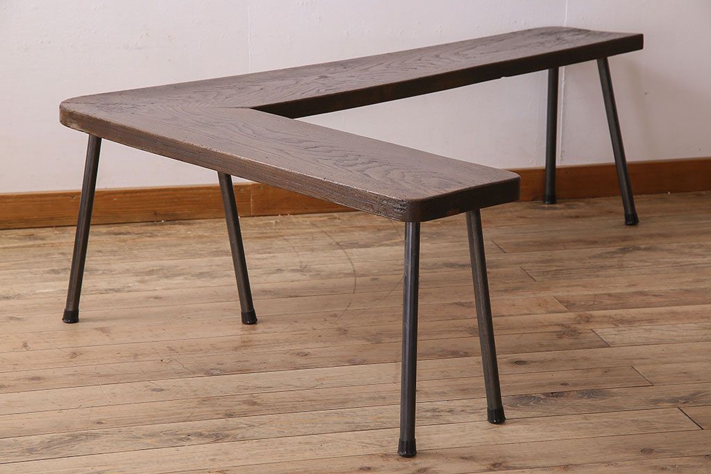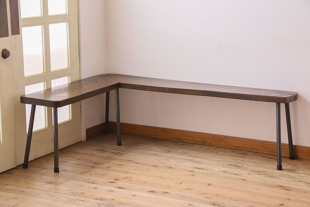 店舗什器 > 【K様ご成約済み・ご決済用】和製アンティーク 古材リメイク シンプルデザインのL字型鉄脚ベンチ