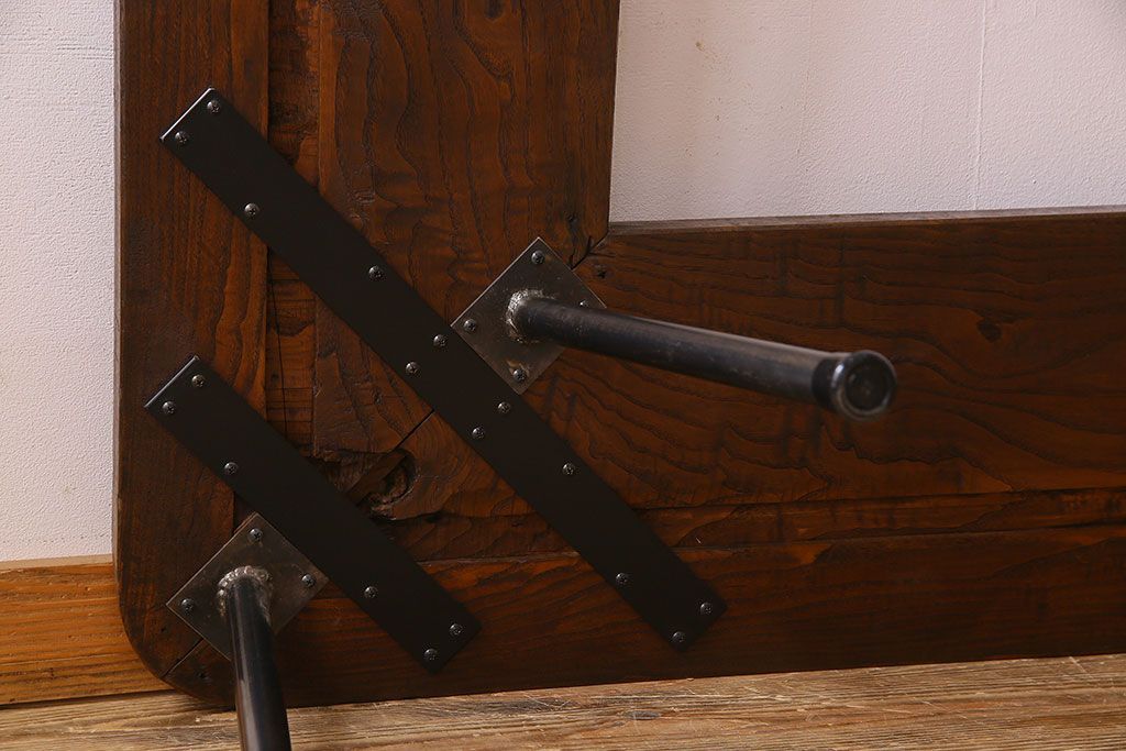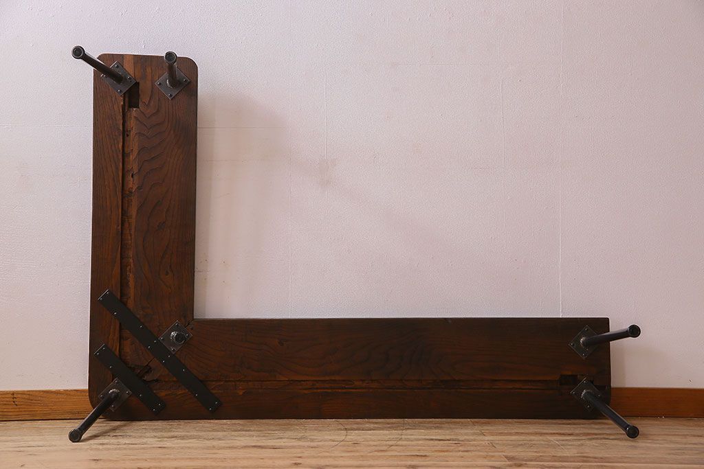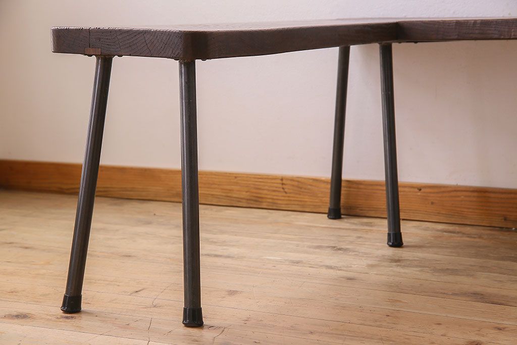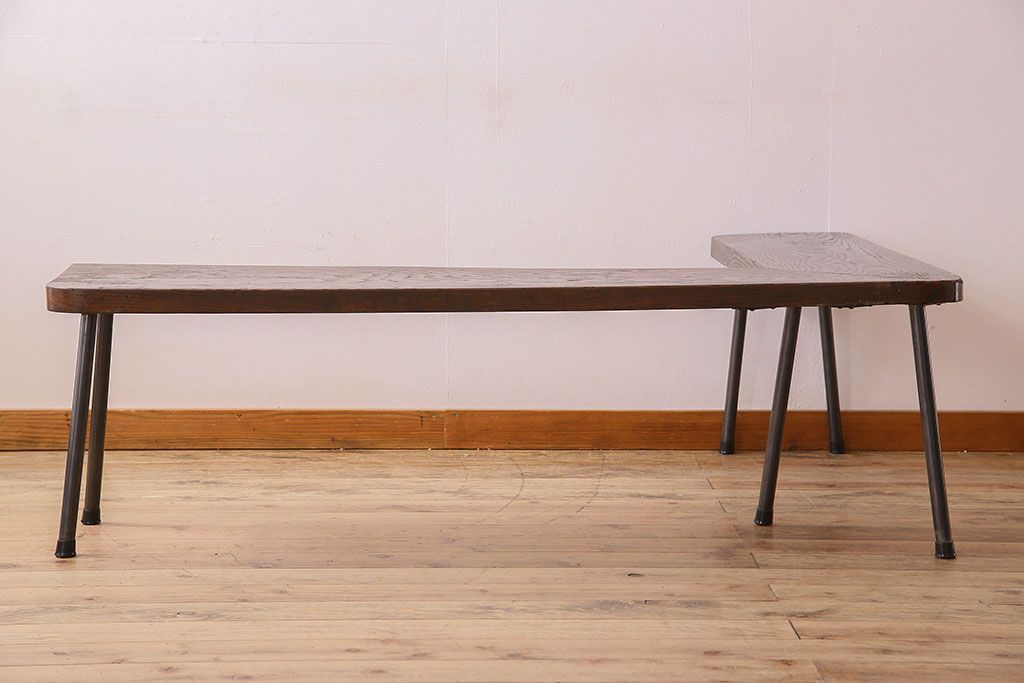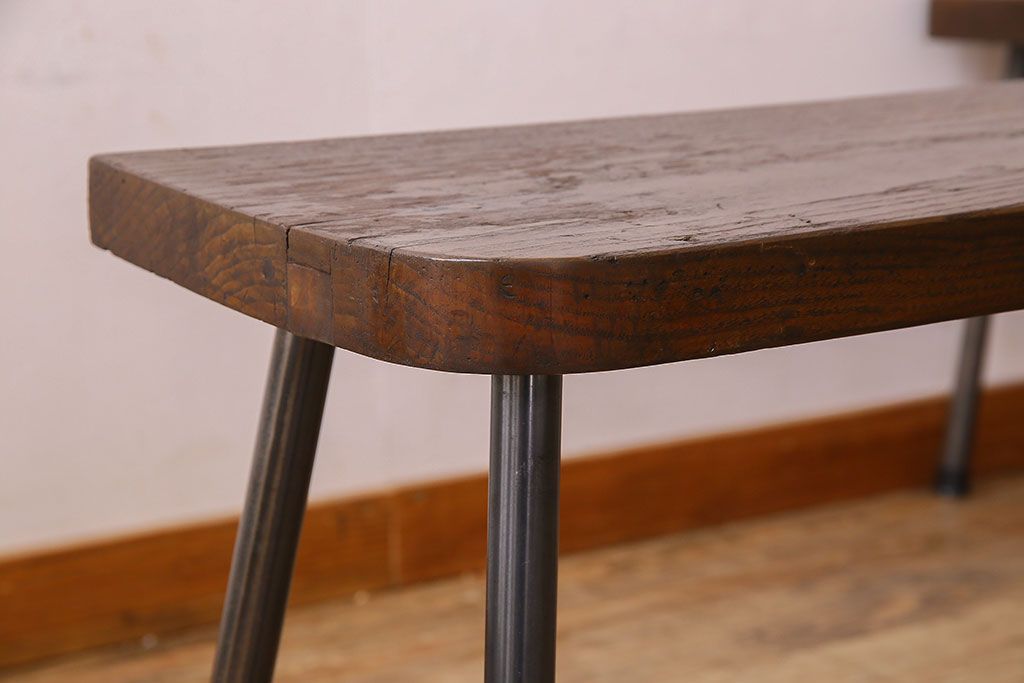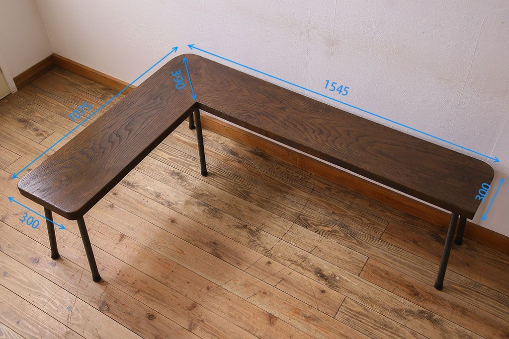 店舗什器 > 【K様ご成約済み・ご決済用】和製アンティーク 古材リメイク シンプルデザインのL字型鉄脚ベンチ