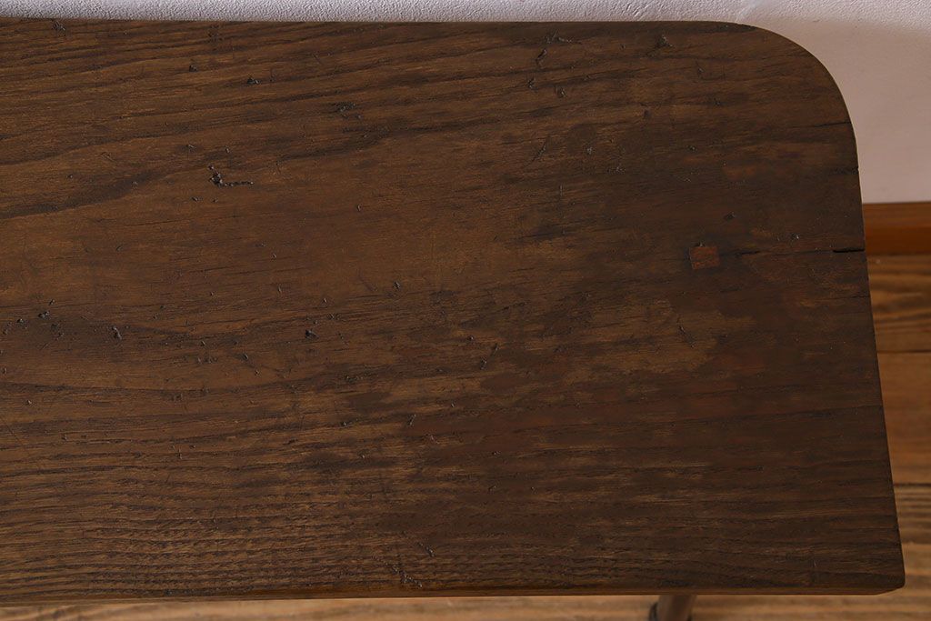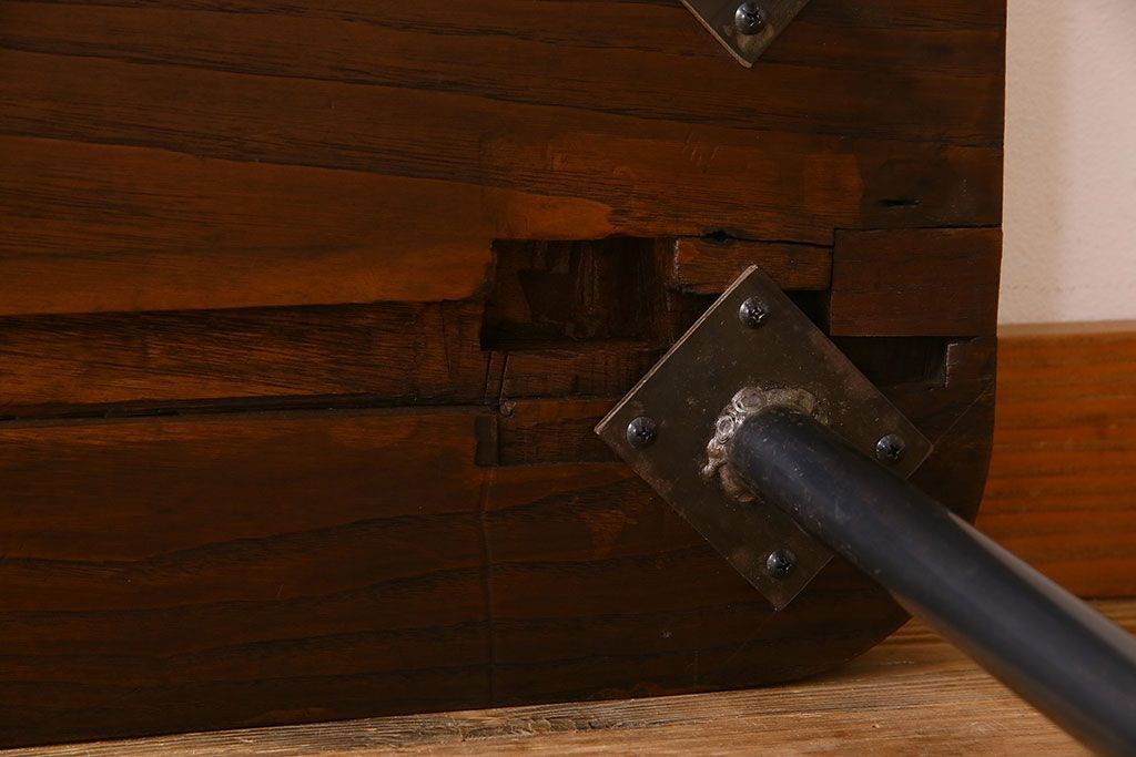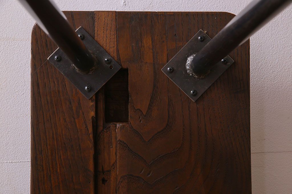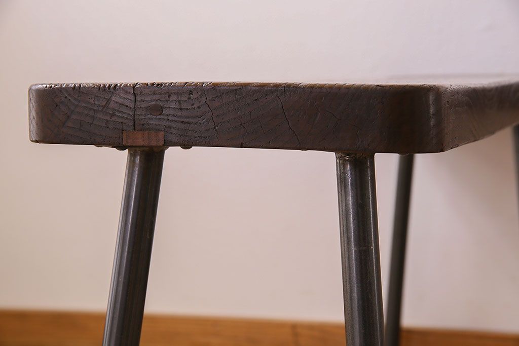 椅子・ベンチ> ベンチ > 【K様ご成約済み・ご決済用】和製アンティーク 古材リメイク シンプルデザインのL字型鉄脚ベンチ