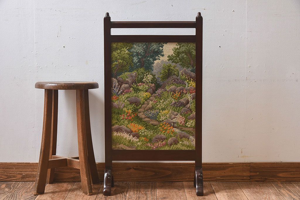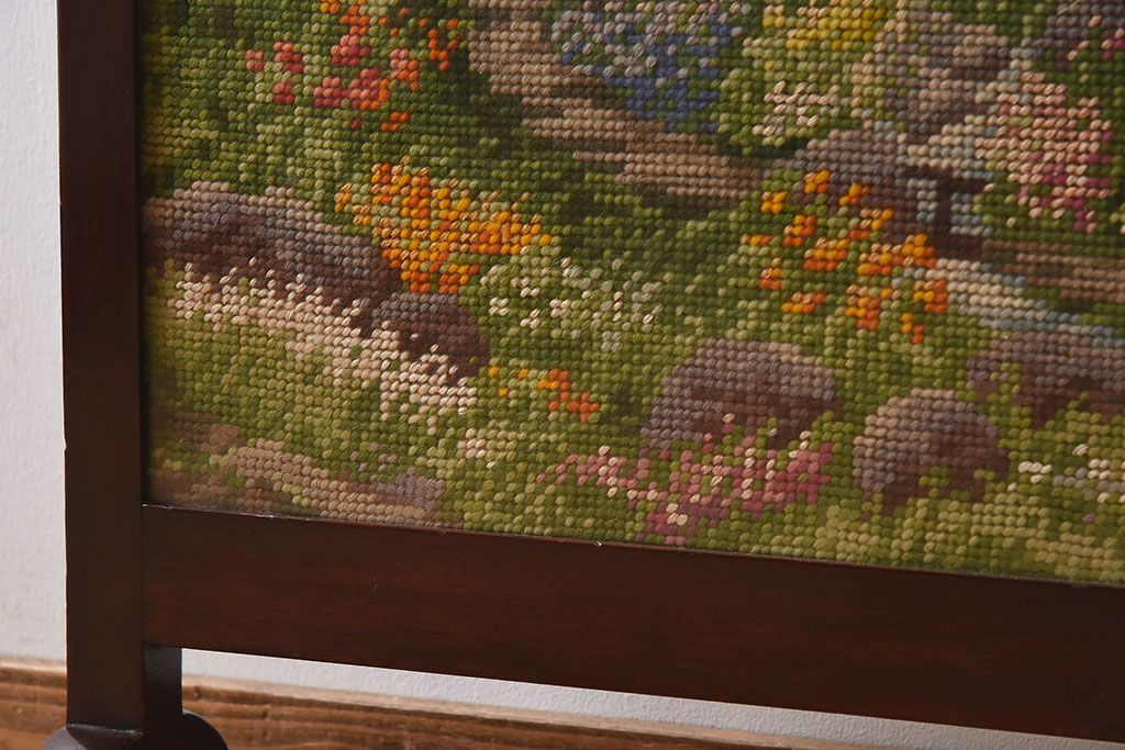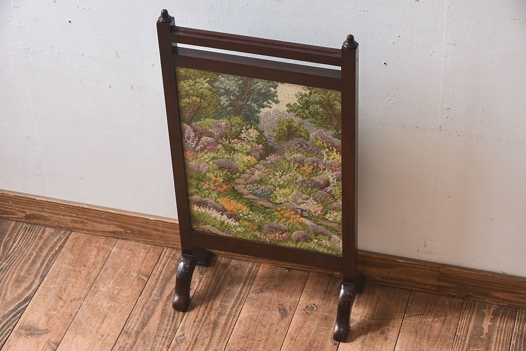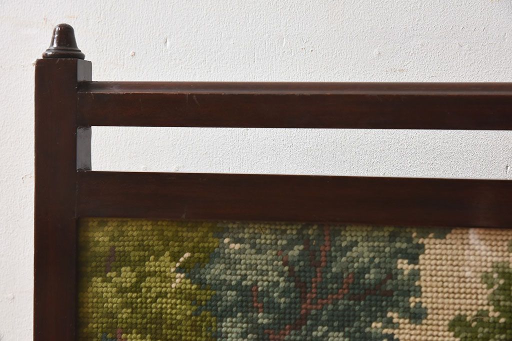 アンティーク雑貨 イギリスアンティーク ゴブラン織り ウォールナット ファイヤースクリーン
