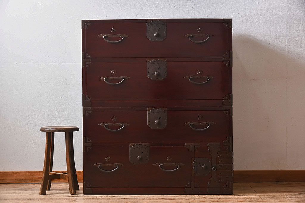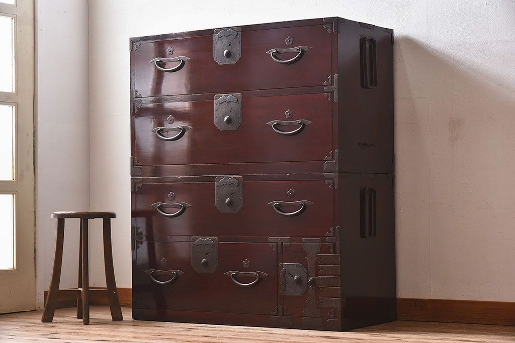 明治期 前面欅材製 極美品!漆が美しい衣装箪笥(二本松重ね箪笥)です。