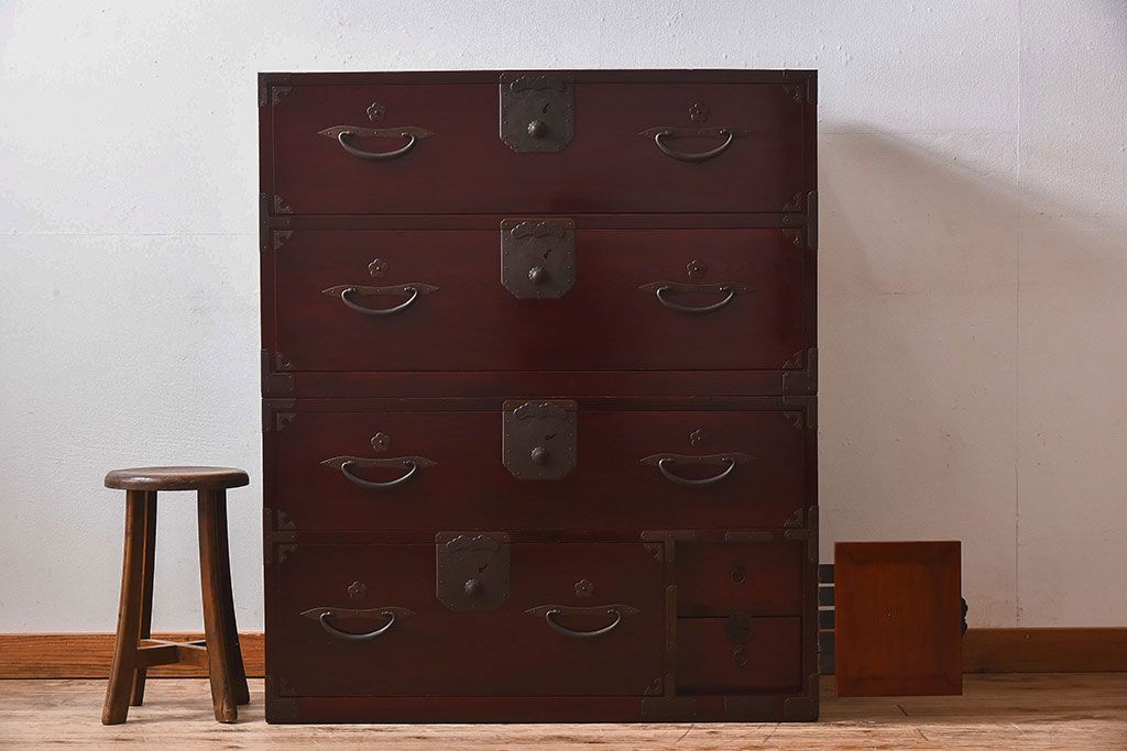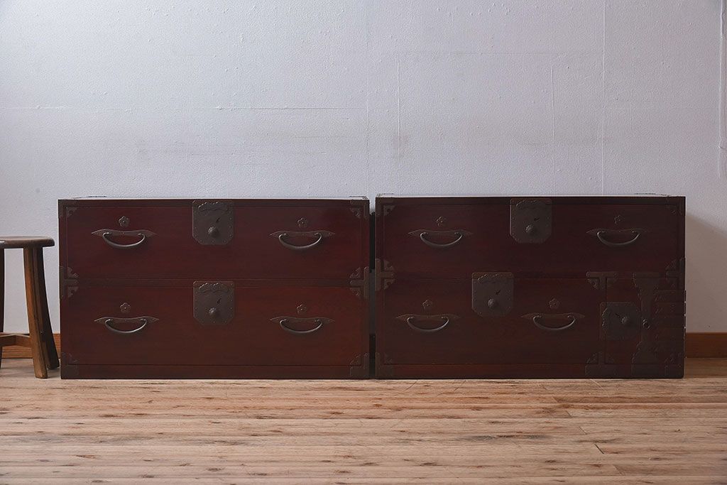 和製アンティークの二本松重ね箪笥です。