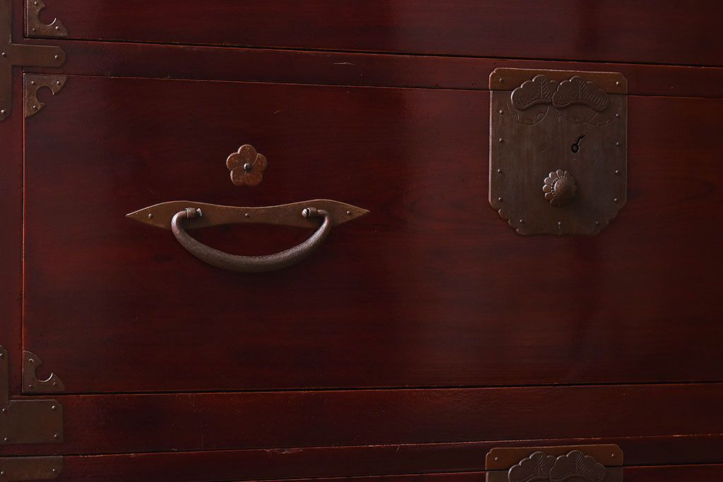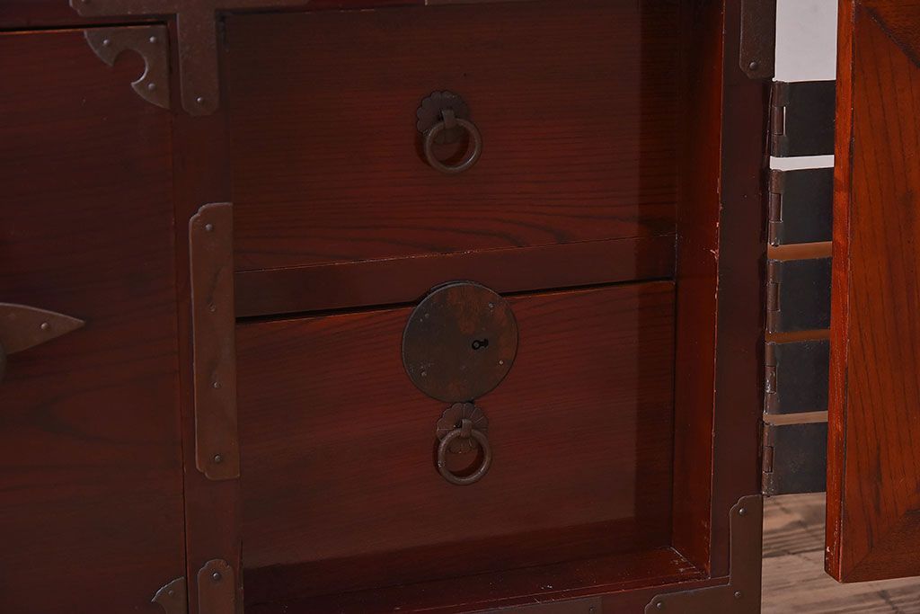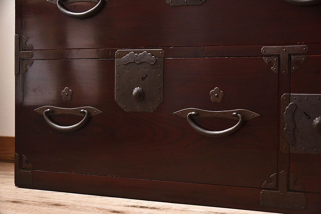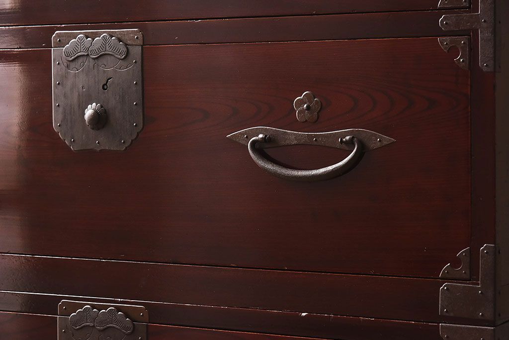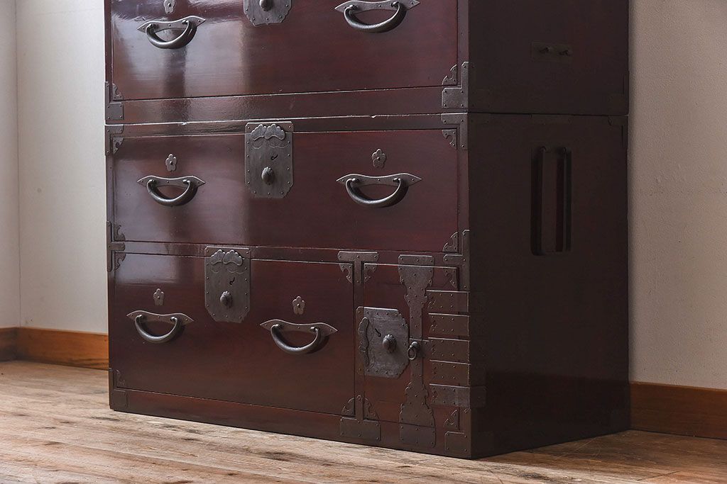 明治期 前面欅材製 極美品!漆が美しい衣装箪笥(二本松重ね箪笥)