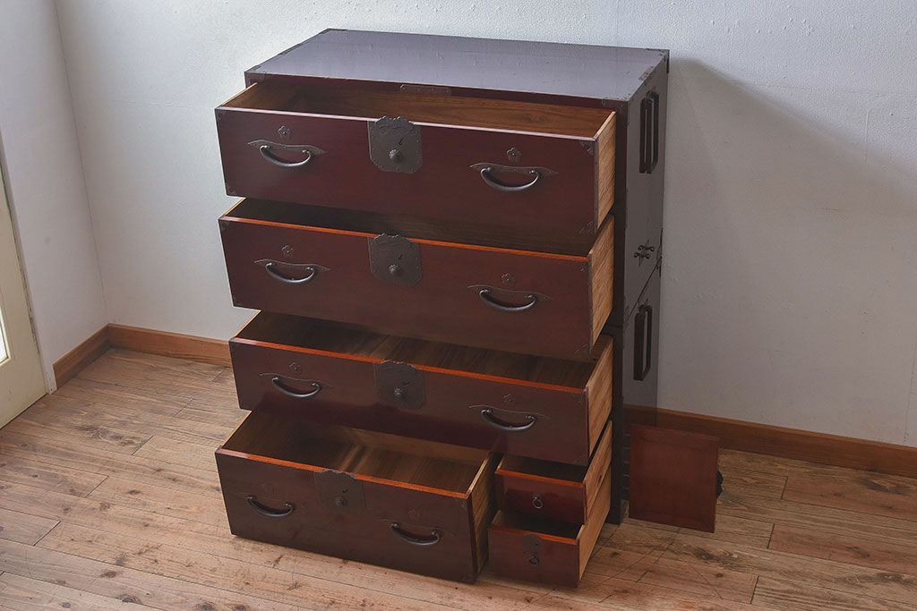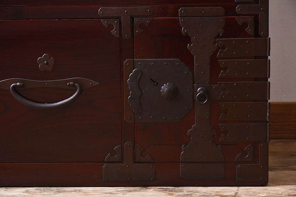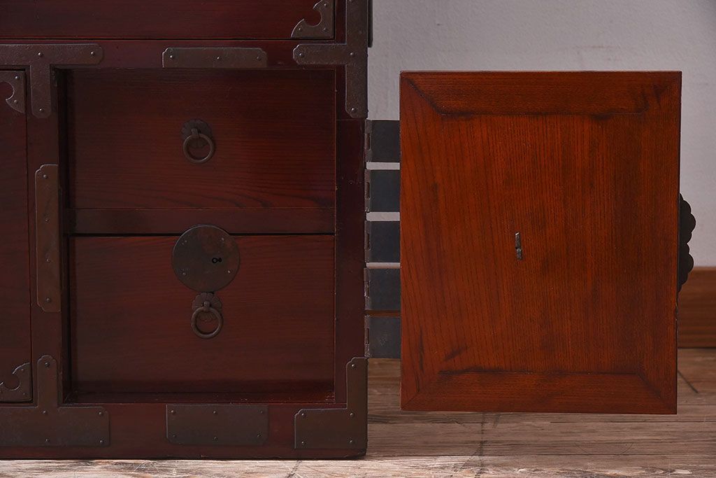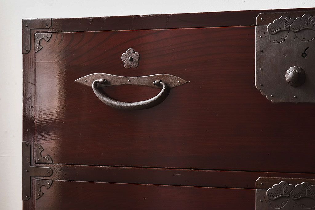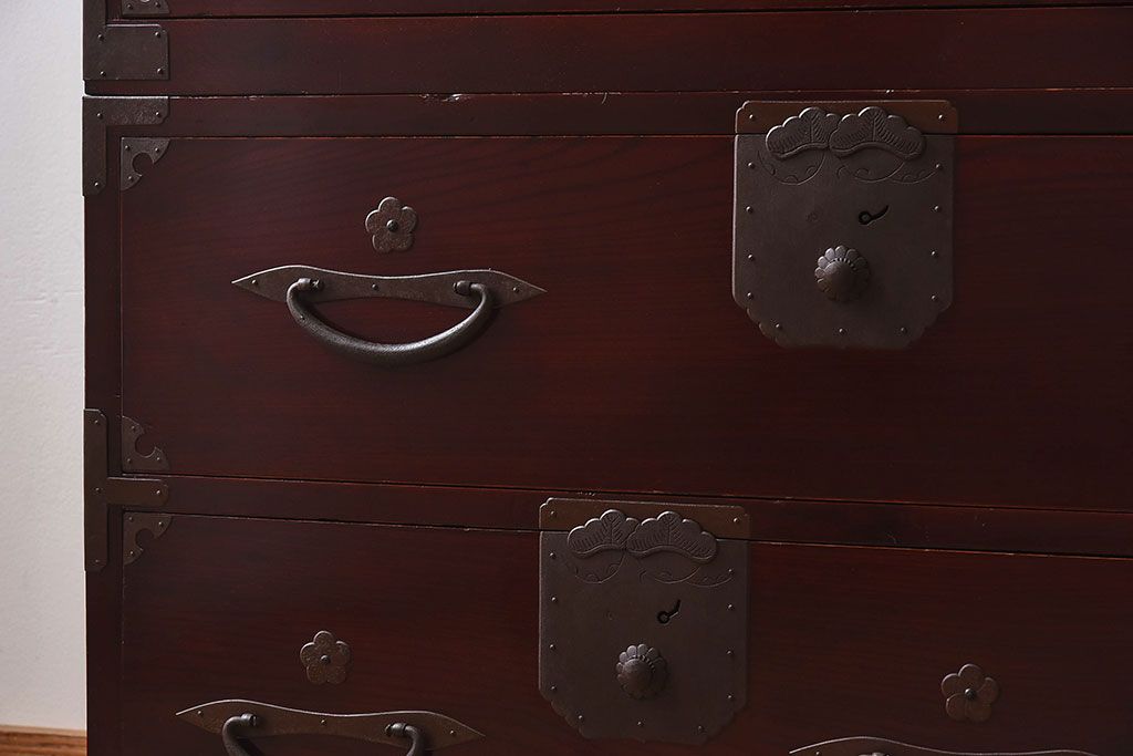 明治期 前面欅材製 極美品!漆が美しい衣装箪笥(二本松重ね箪笥)