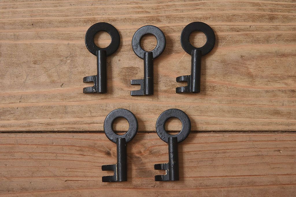 鍵は5本付属します。画像にありますように、鍵は袋に入れお付けします。手を添えて補助すると動きます。