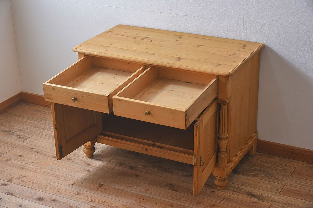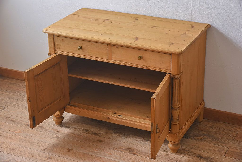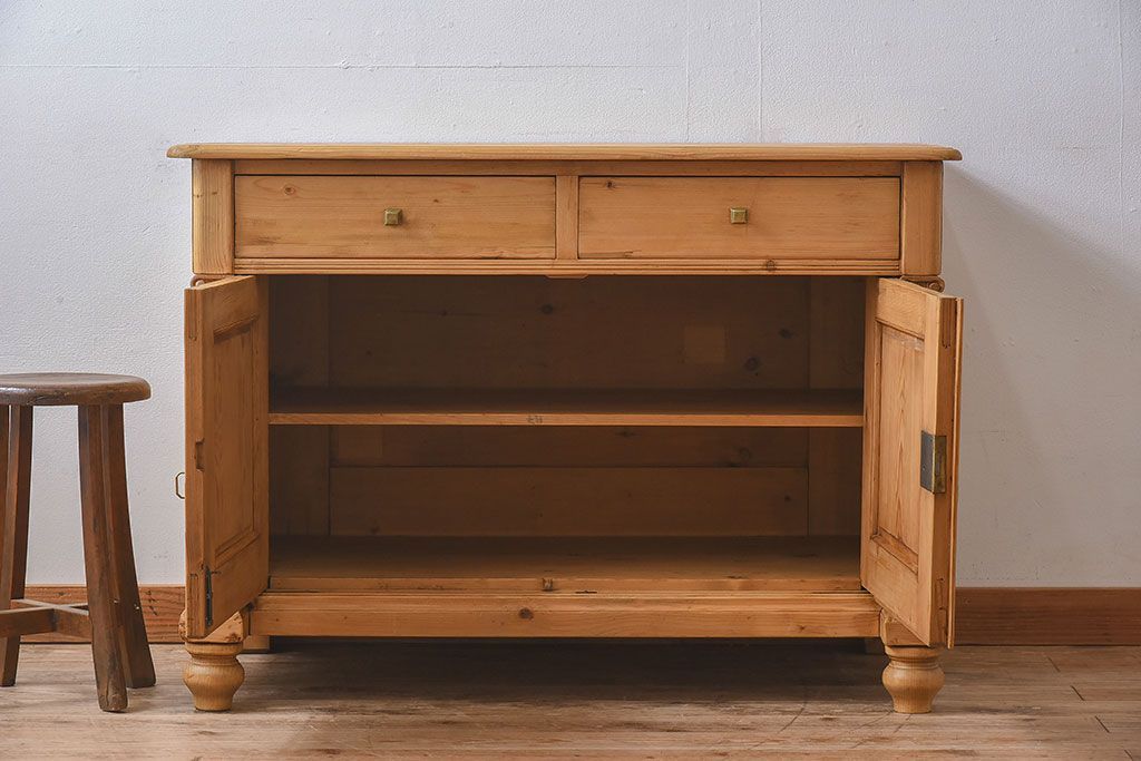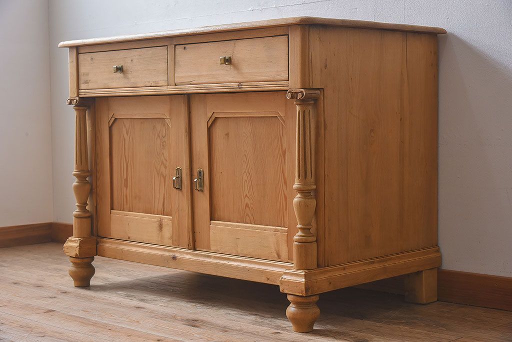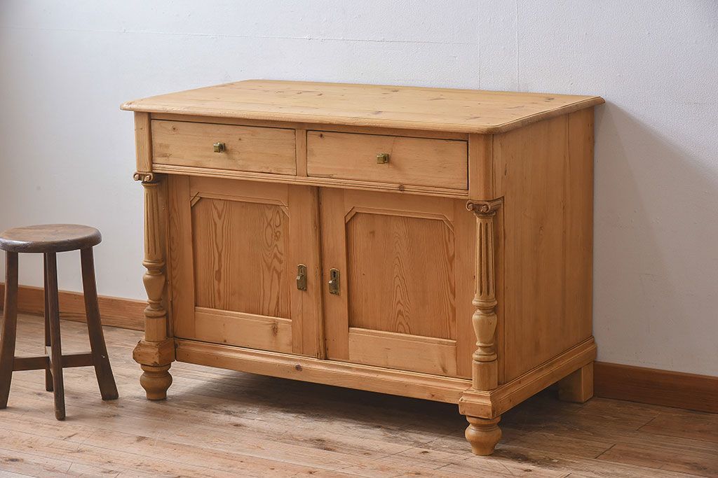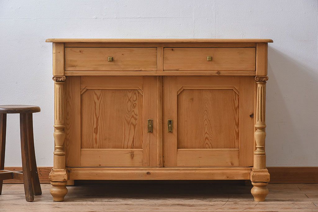 アンティーク家具 フランスアンティーク パイン材 装飾がお洒落なサイドボード(収納棚)