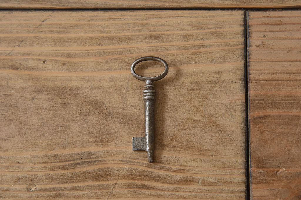 鍵は付属します。画像にありますように、袋に入れお付けします。スムーズに動くように調整していますが、あくまでも古いものや中古品ですので、長期の使用保証は出来かねます。ご購入後不具合が発生した場合は、当店でサポートさせていただきますので、お気軽にご相談くださいませ。