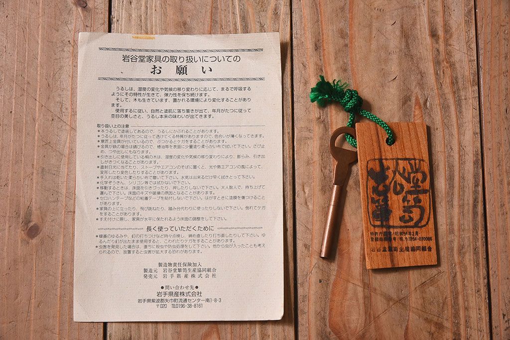 鍵は付属します。画像にありますように、袋に入れお付けします。スムーズに動くように調整していますが、あくまでも古いものや中古品ですので、長期の使用保証は出来かねます。ご購入後不具合が発生した場合は、当店でサポートさせていただきますので、お気軽にご相談くださいませ。