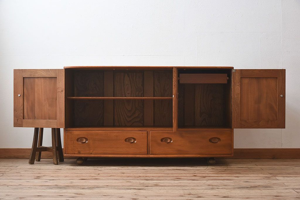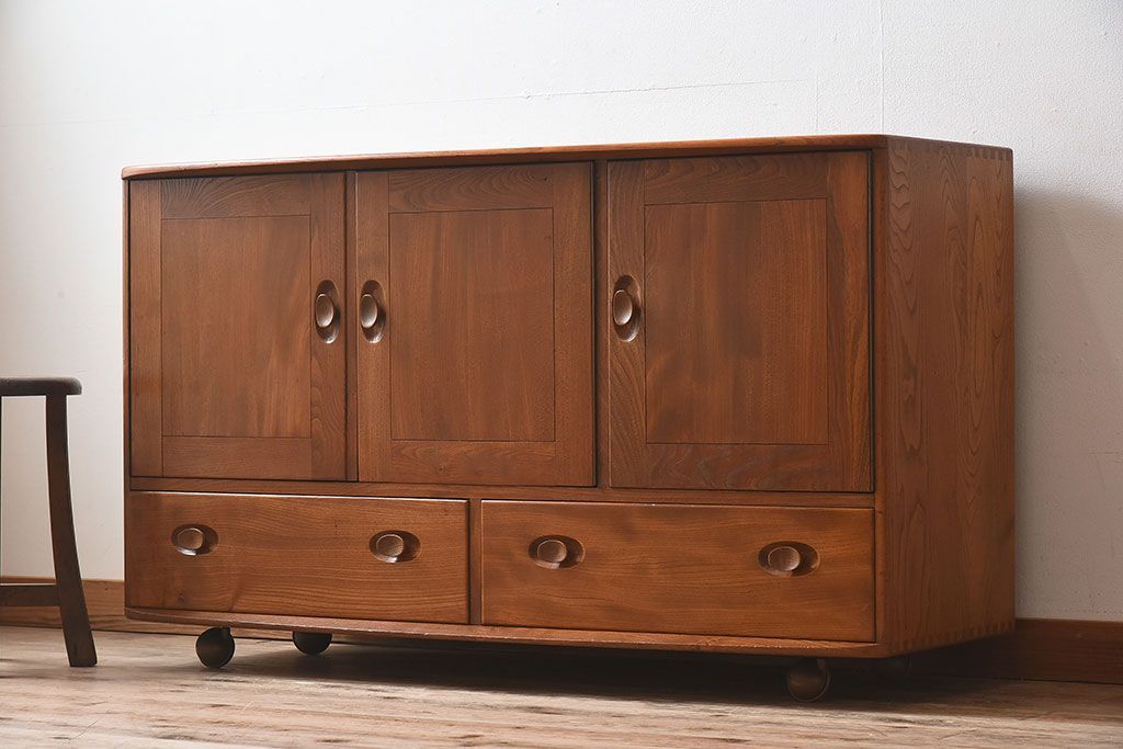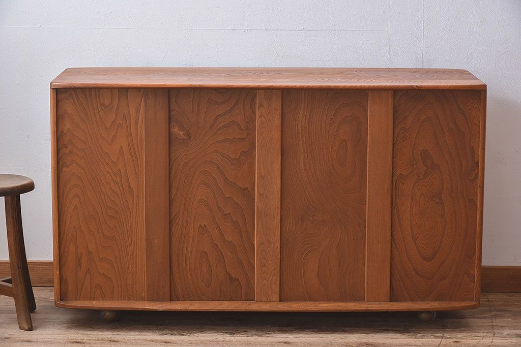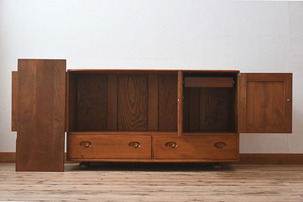 ヴィンテージ家具 イギリスビンテージ 楡材 ERCOL(アーコール)のキャスター付きサイドボード