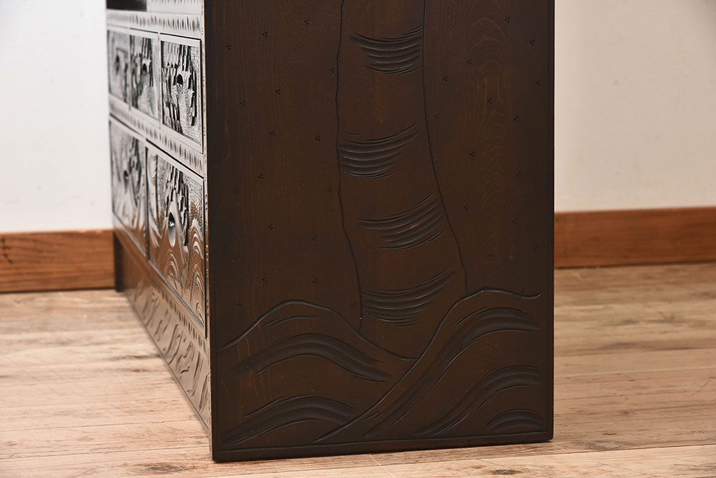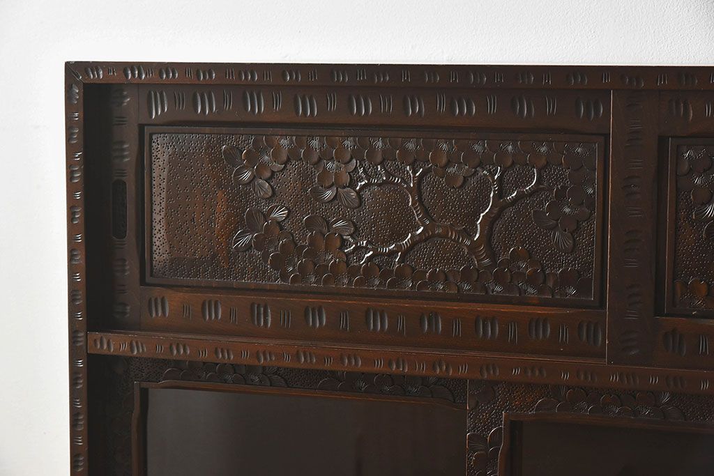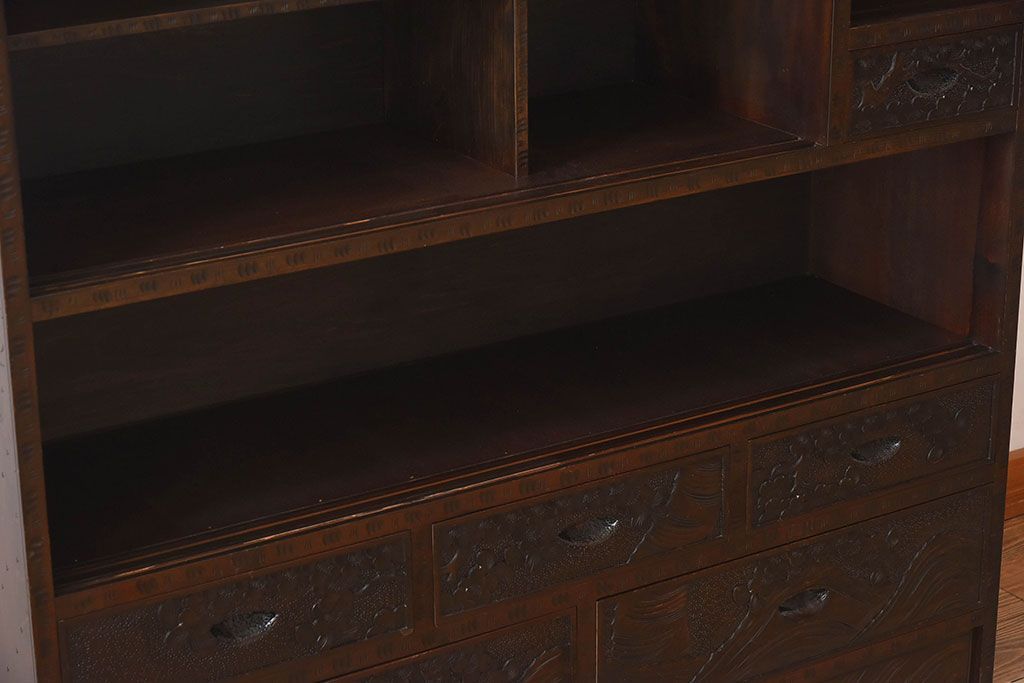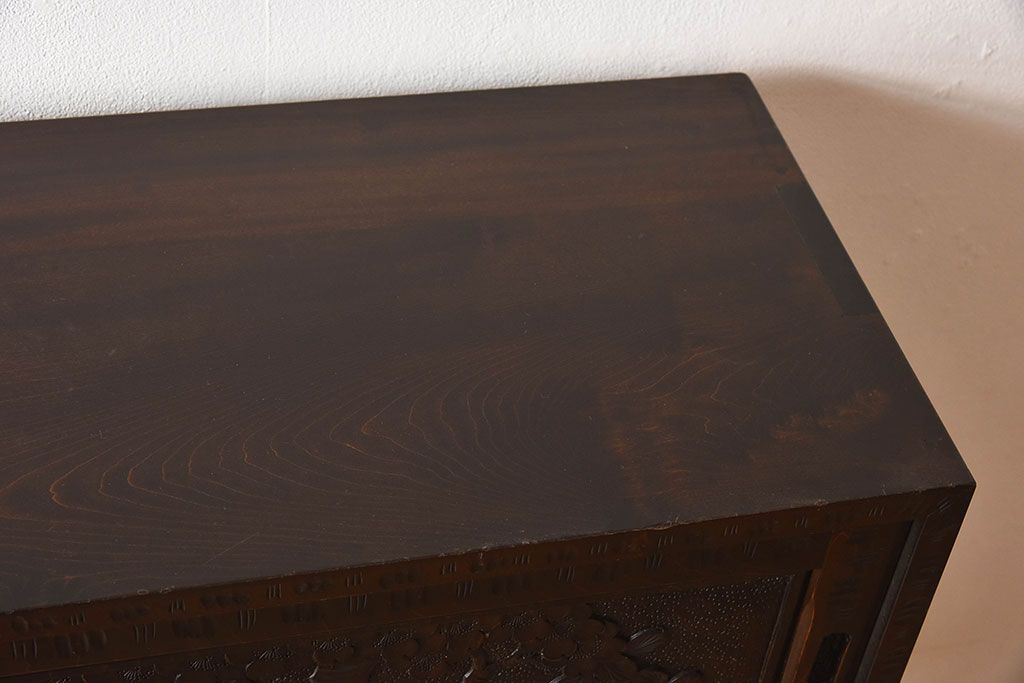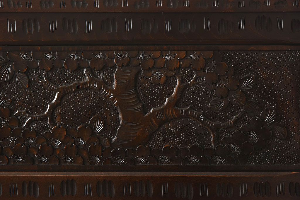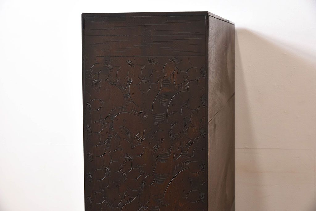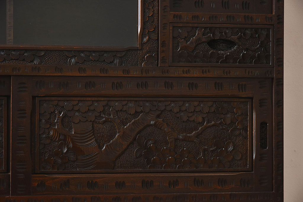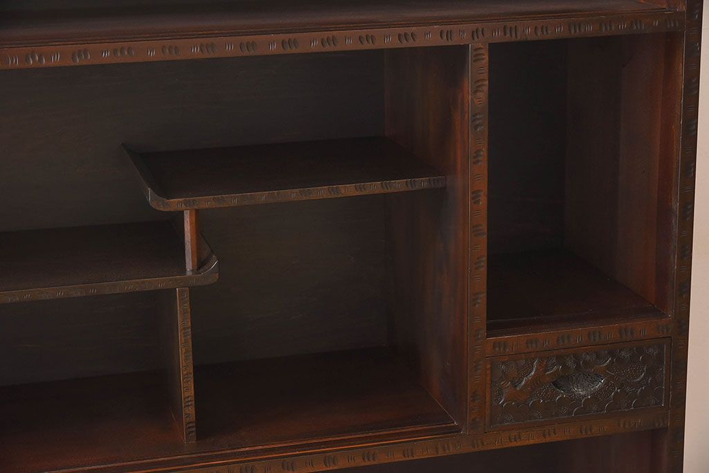 アンティーク家具 高級品 伝統工芸軽井沢彫り 総彫仕上げ 茶箪笥
