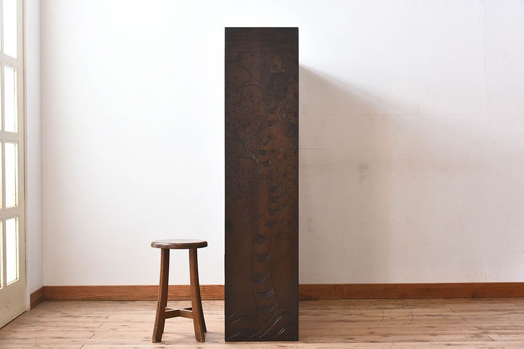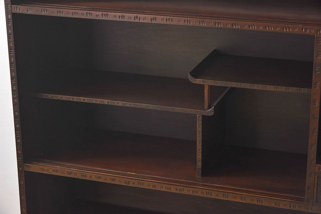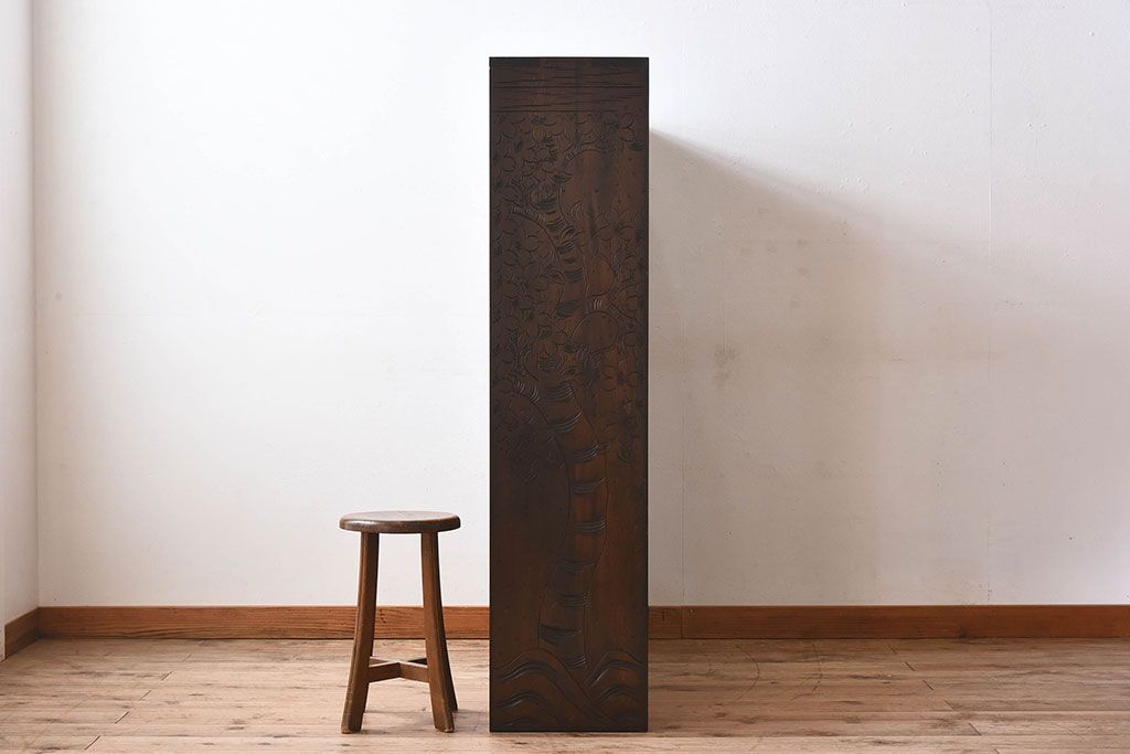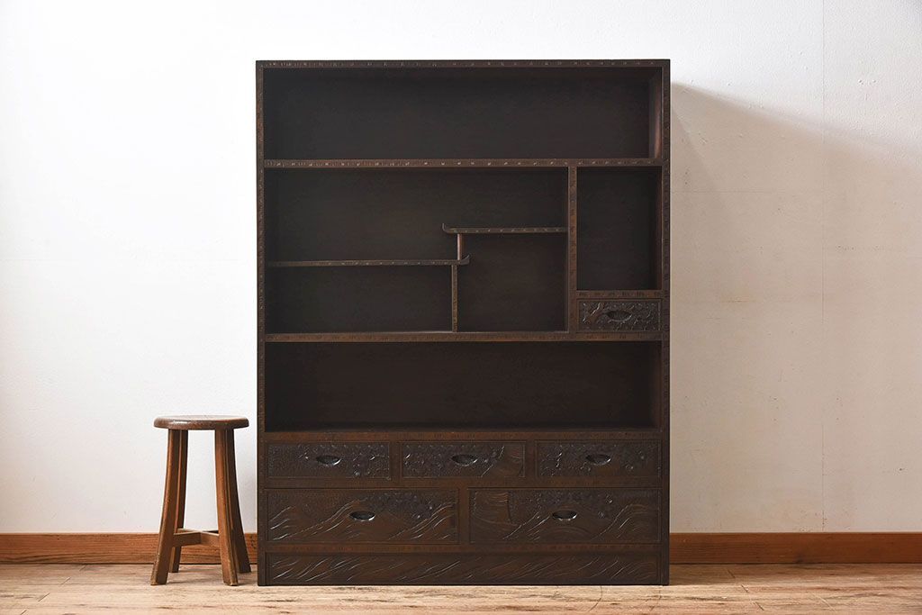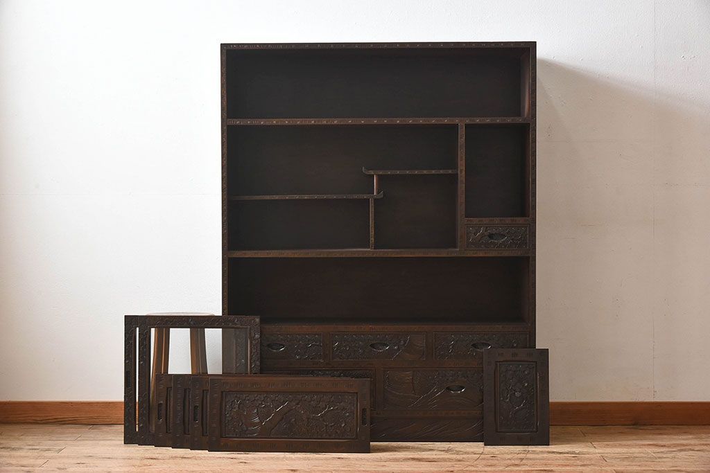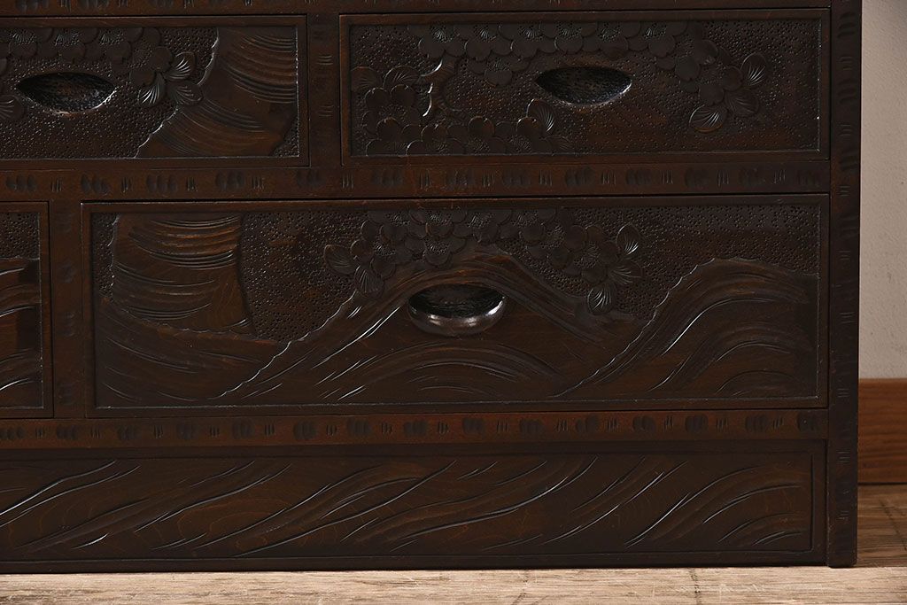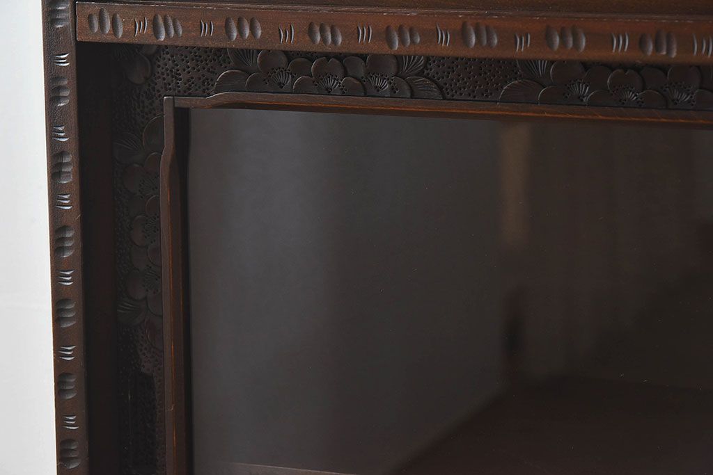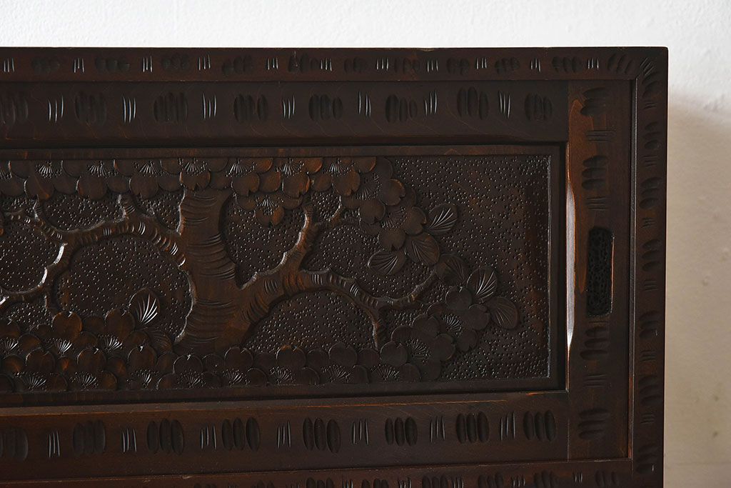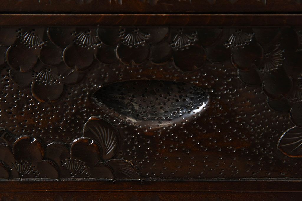 アンティーク家具 高級品 伝統工芸軽井沢彫り 総彫仕上げ 茶箪笥