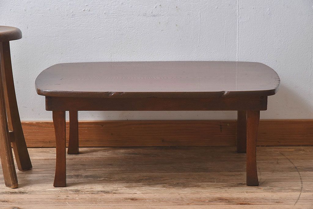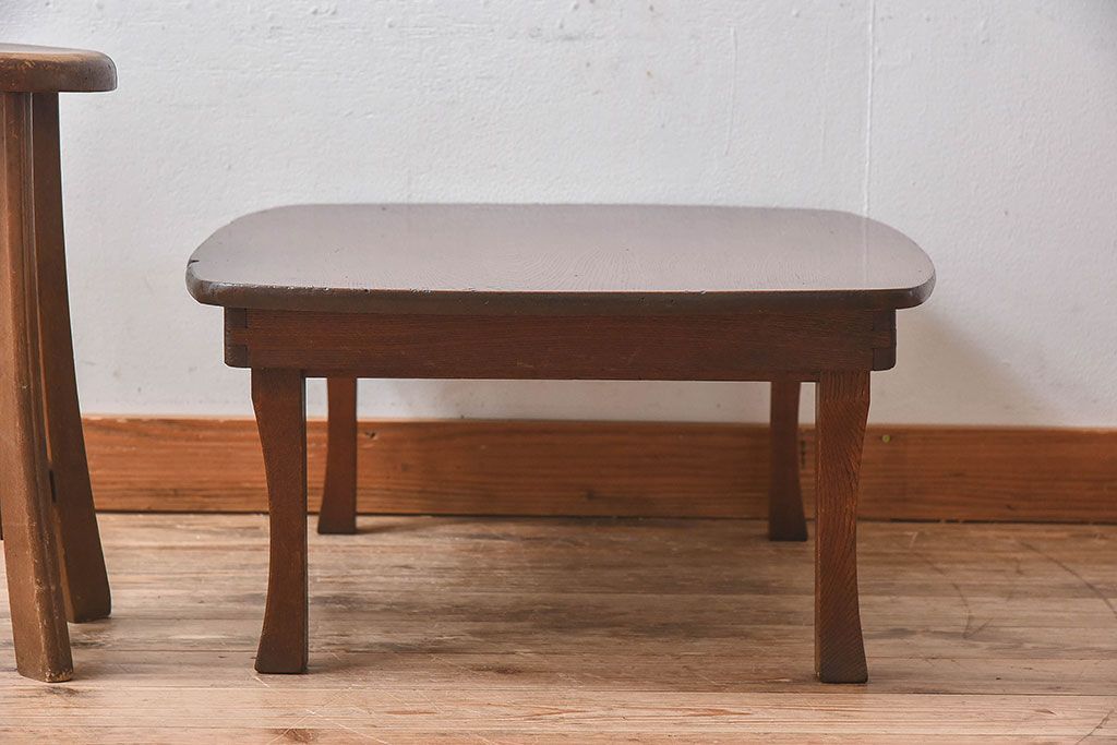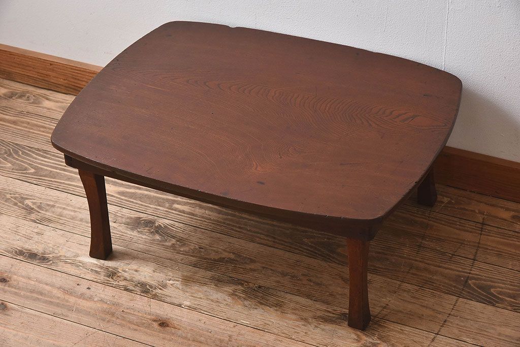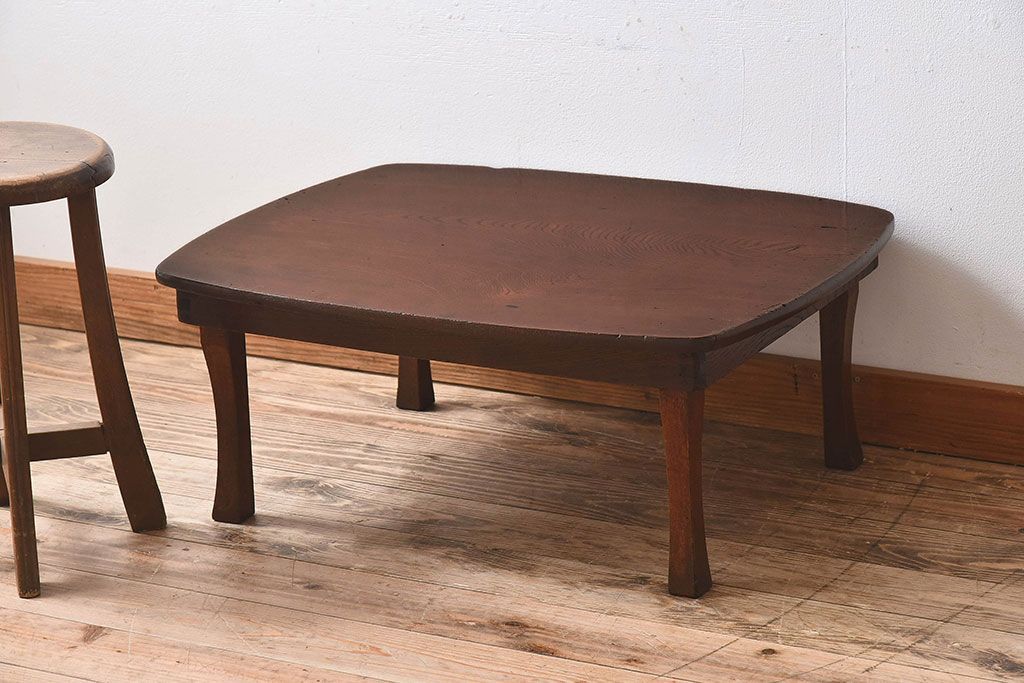 レトロ家具 昭和レトロ 天板一枚板 和製アンティーク角ちゃぶ台