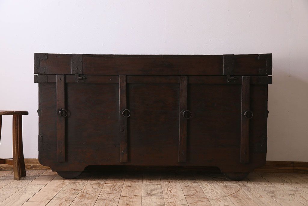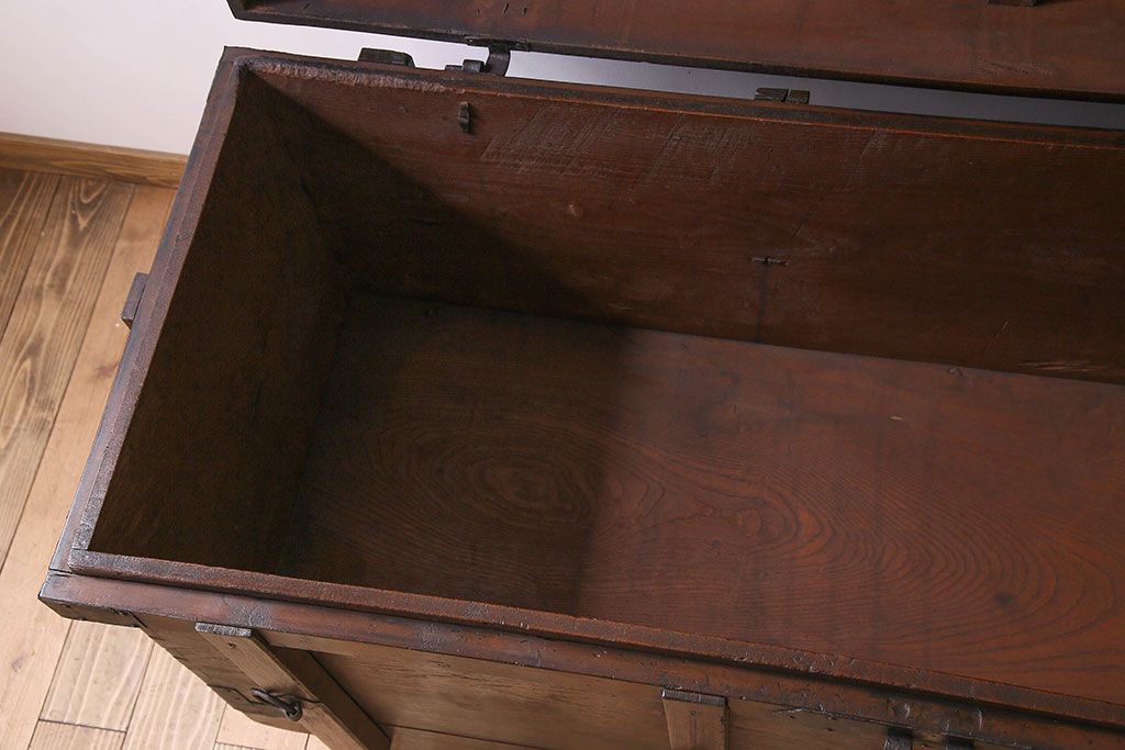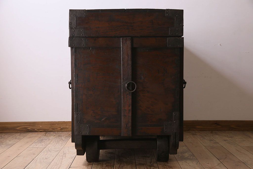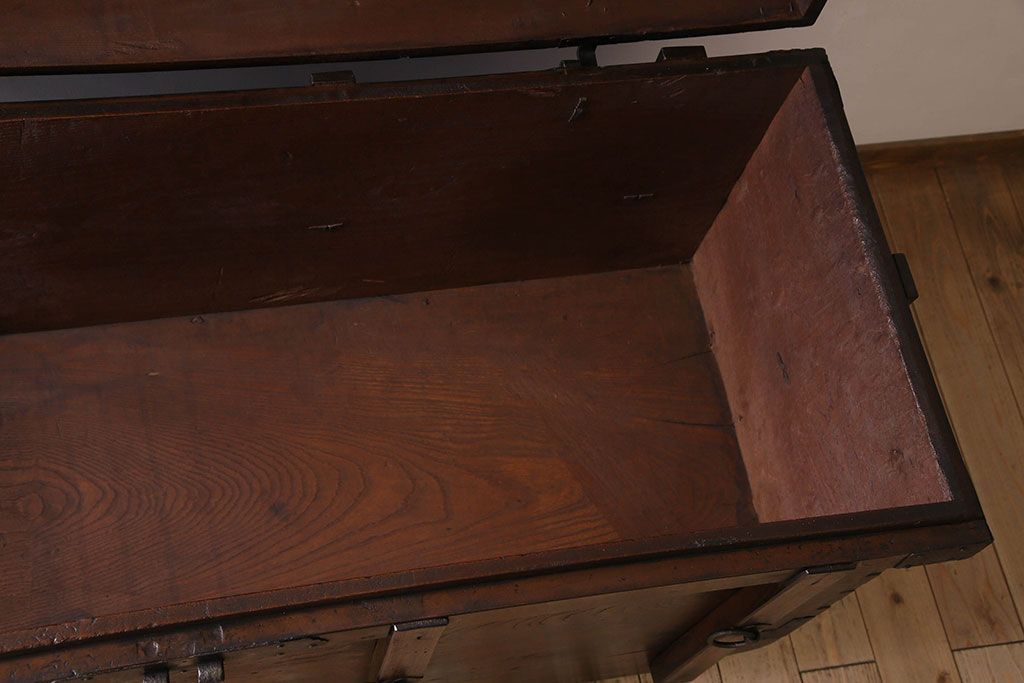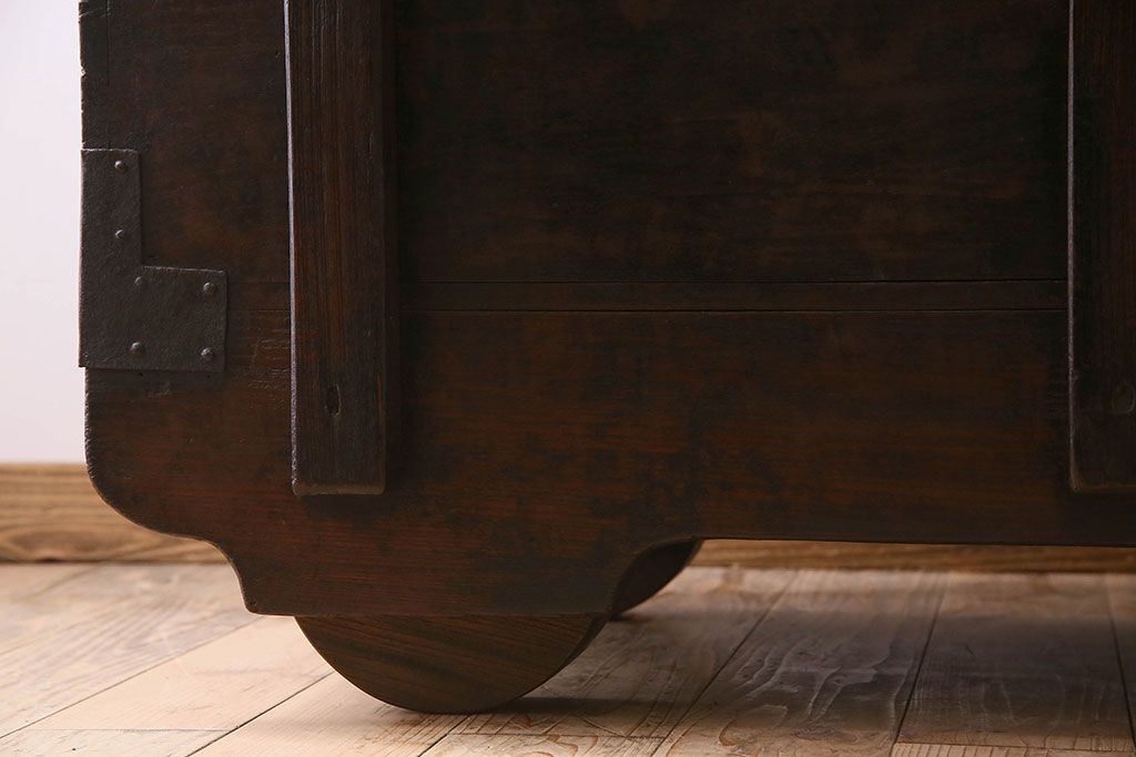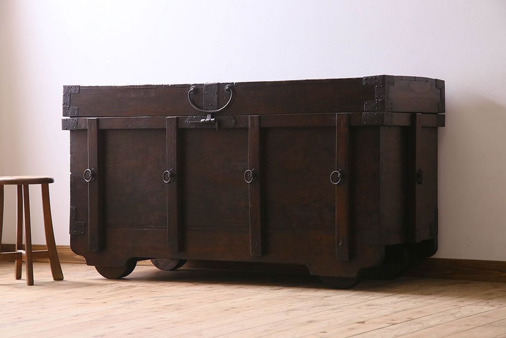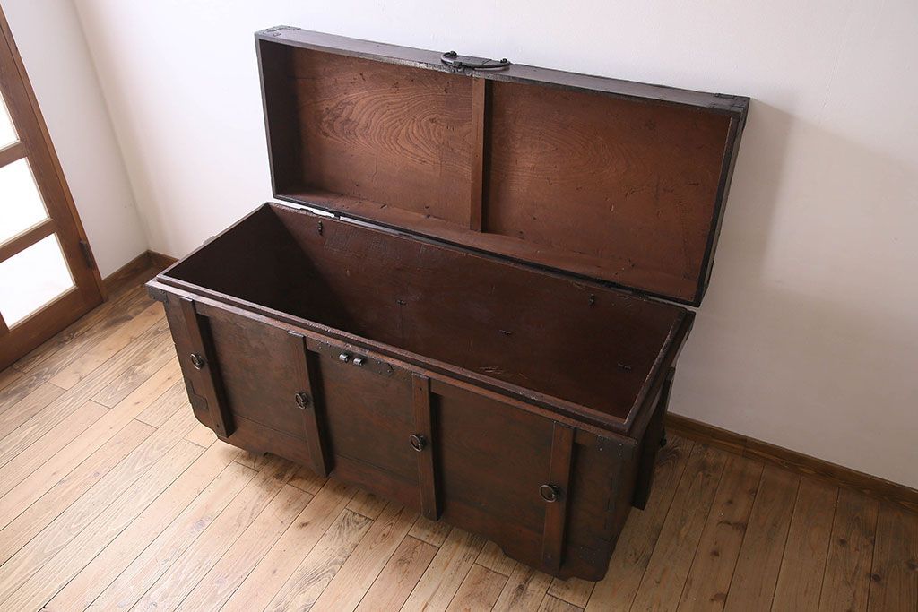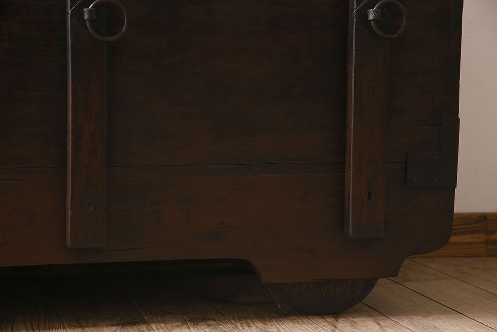 アンティーク雑貨 古民芸 江戸〜明治期 総ケヤキ材の車長持(箪笥)