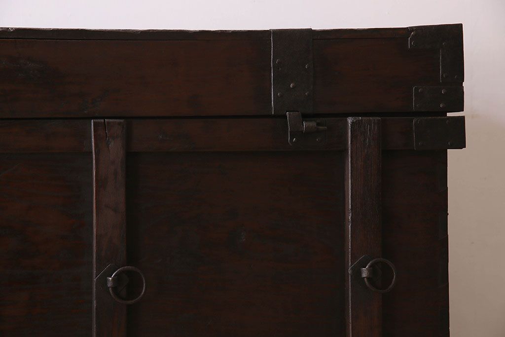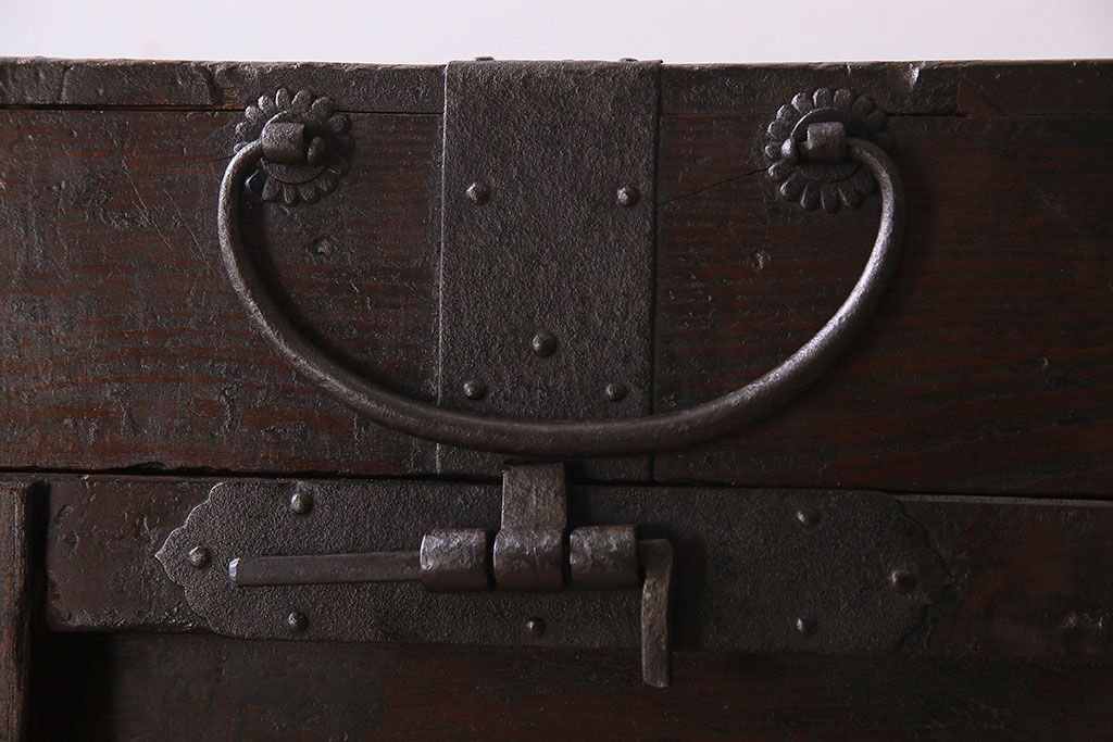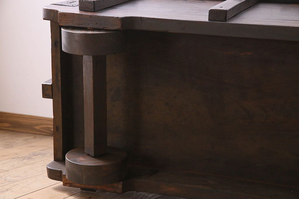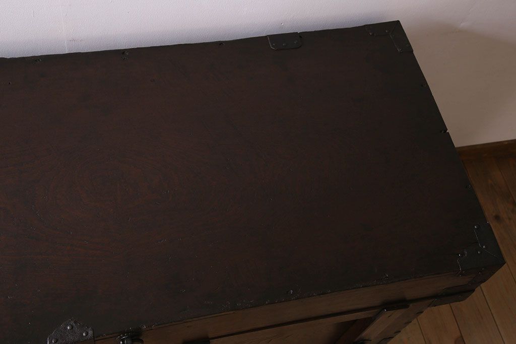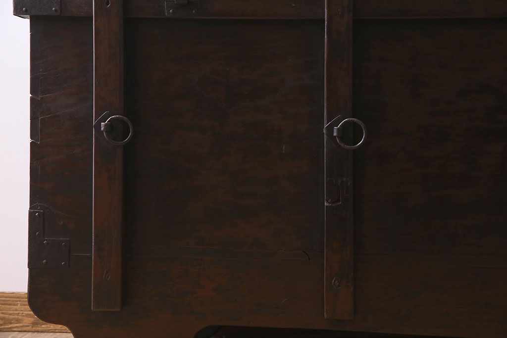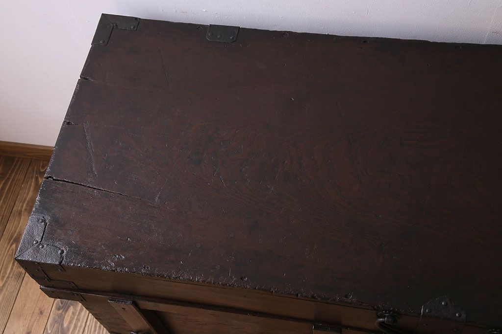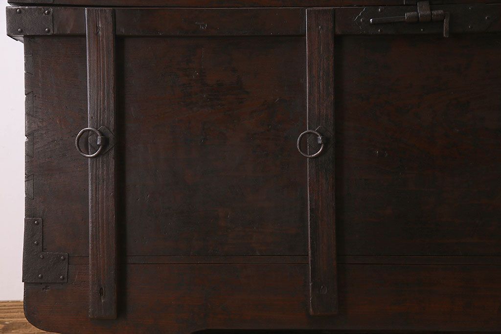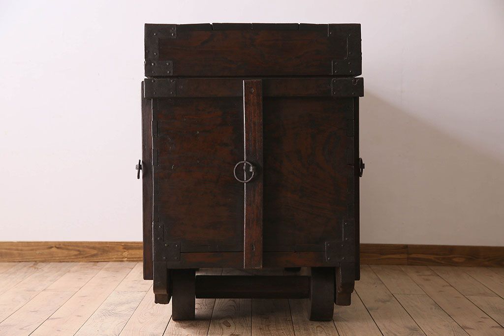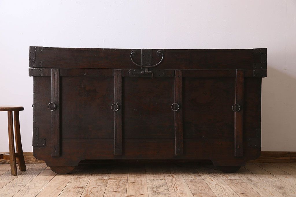 アンティーク雑貨 古民芸 江戸〜明治期 総ケヤキ材の車長持(箪笥)