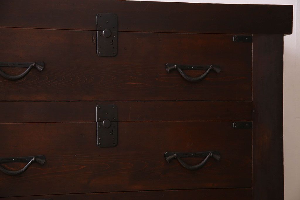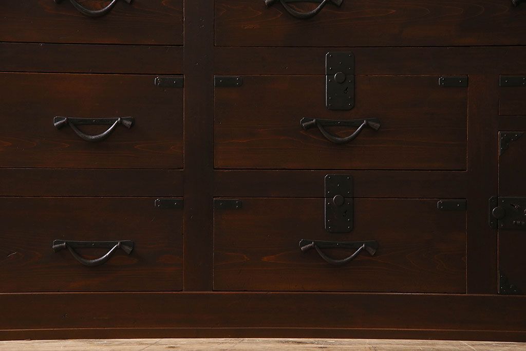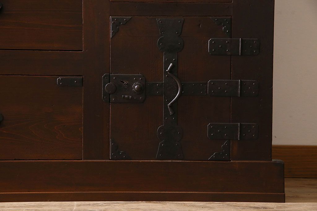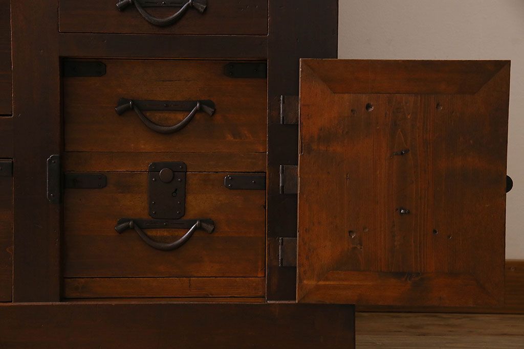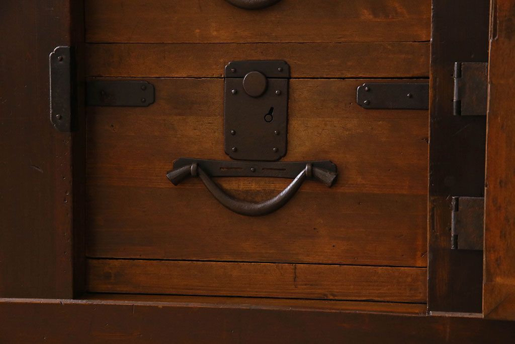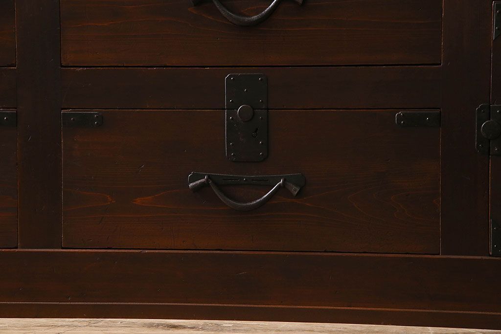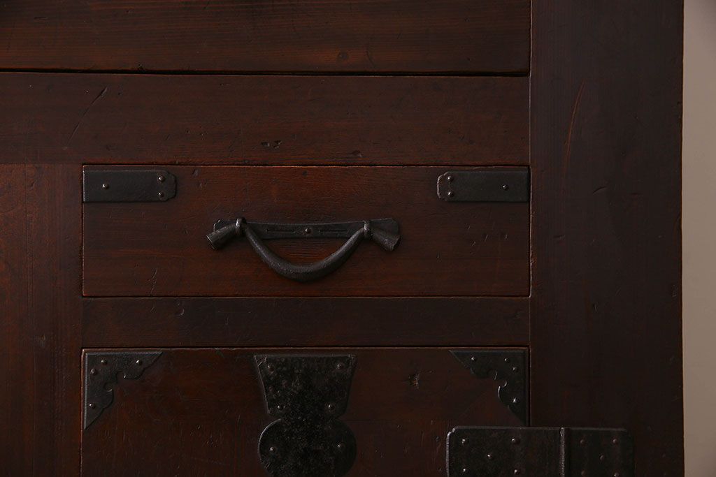 ラフジュ工房> 和箪笥 > アンティーク家具 和製アンティーク 前面ヒノキ材 収納箪笥サイドボード(水屋箪笥)