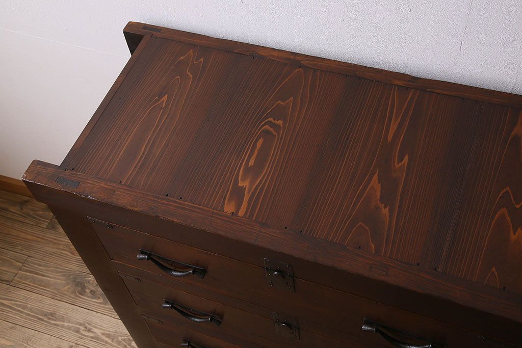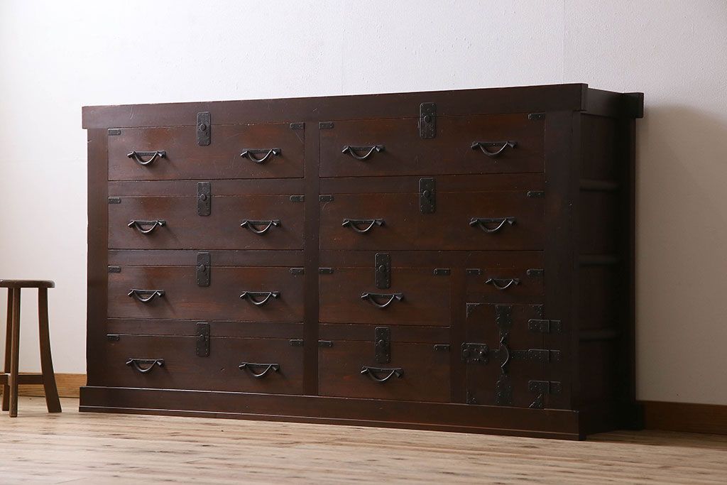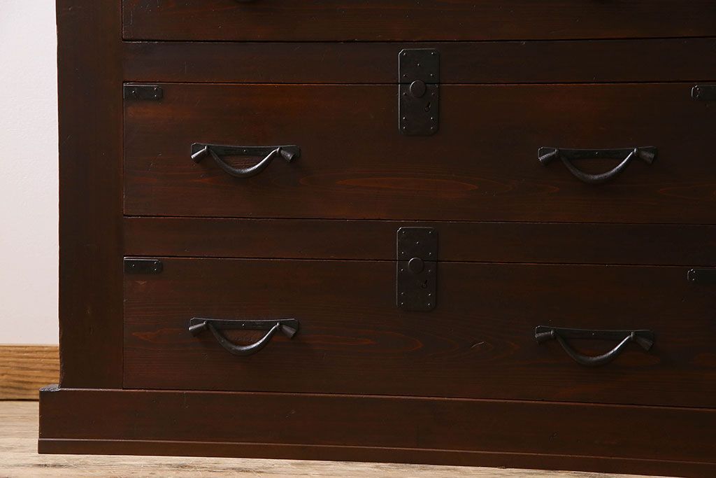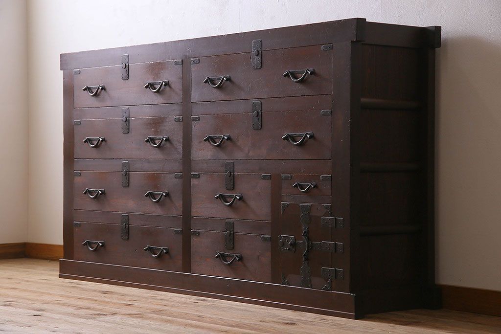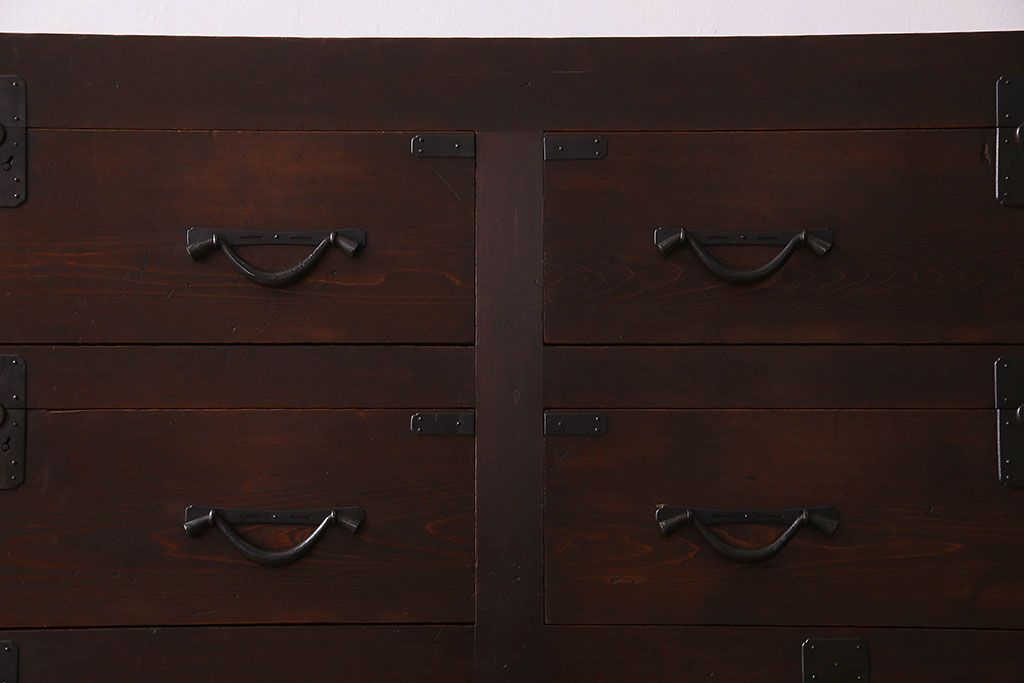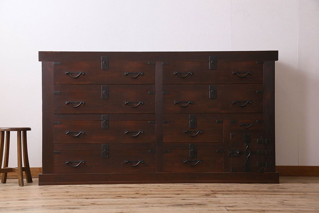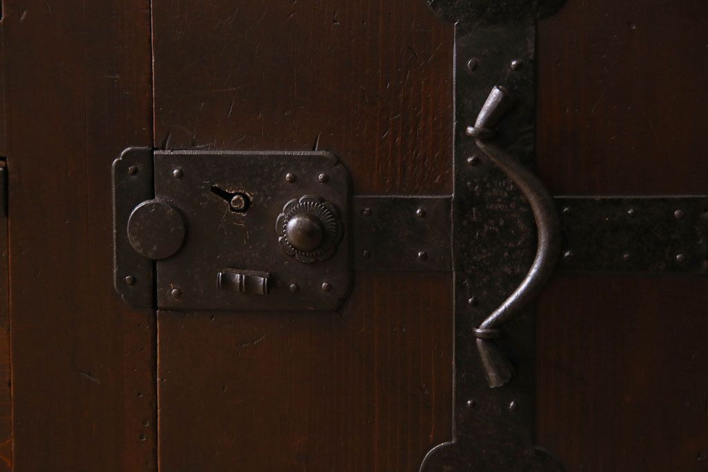 ラフジュ工房> 和箪笥 > アンティーク家具 和製アンティーク 前面ヒノキ材 収納箪笥サイドボード(水屋箪笥)