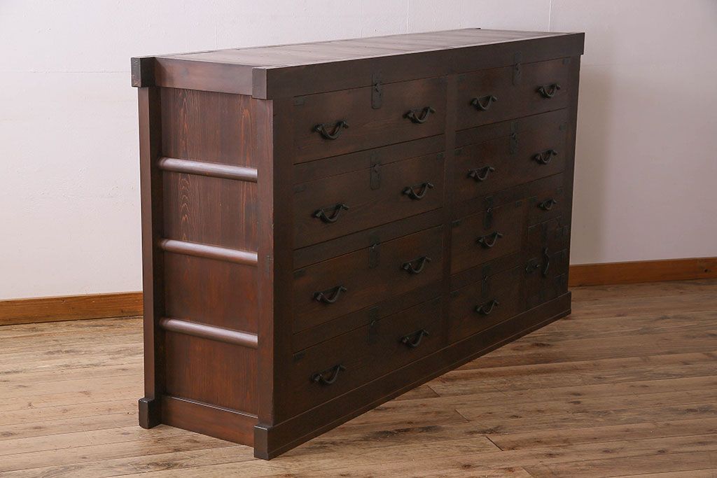 アンティーク家具 和製アンティーク 前面ヒノキ材 収納箪笥サイドボード(水屋箪笥)