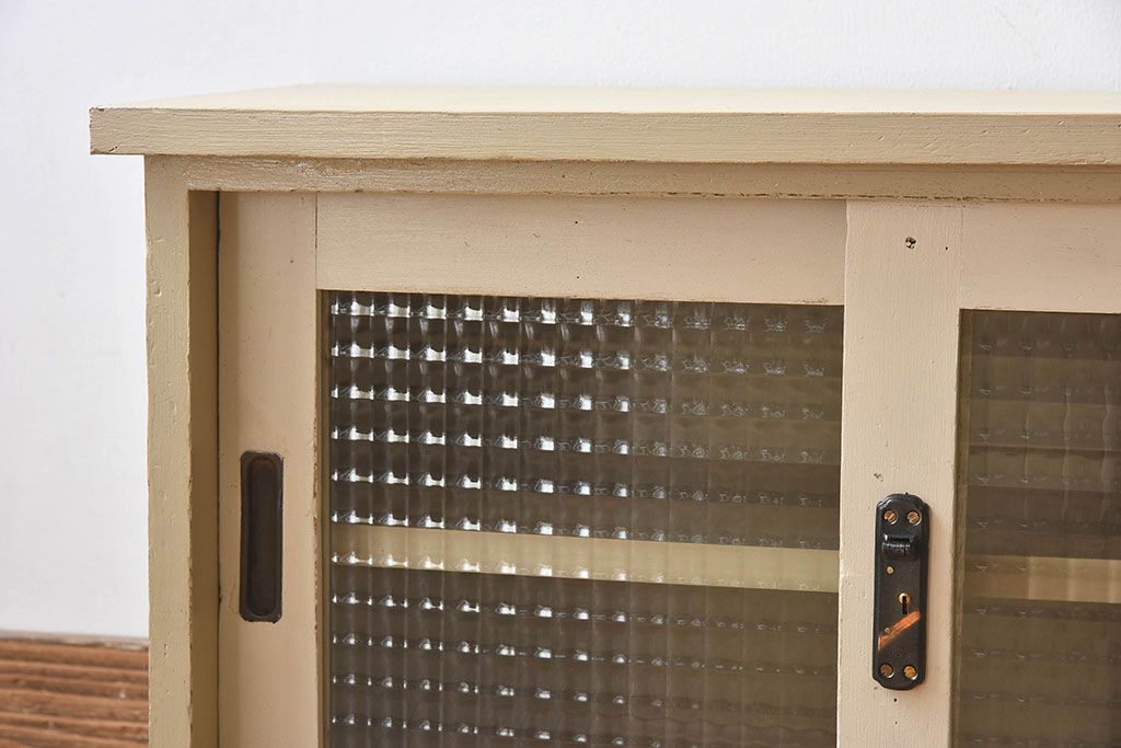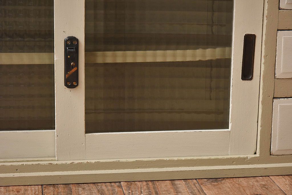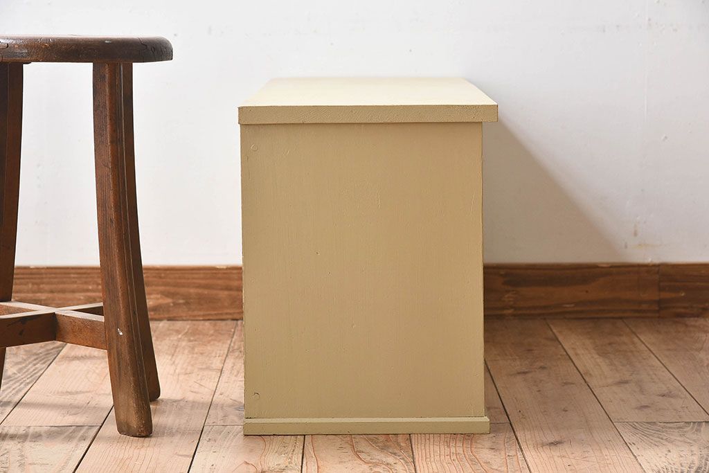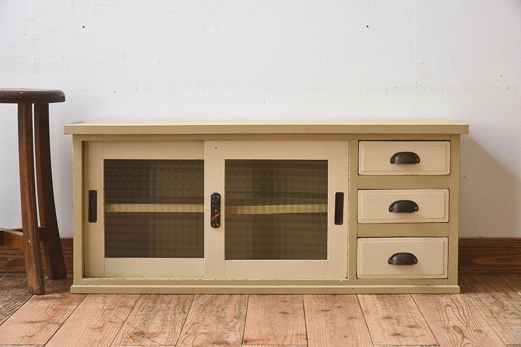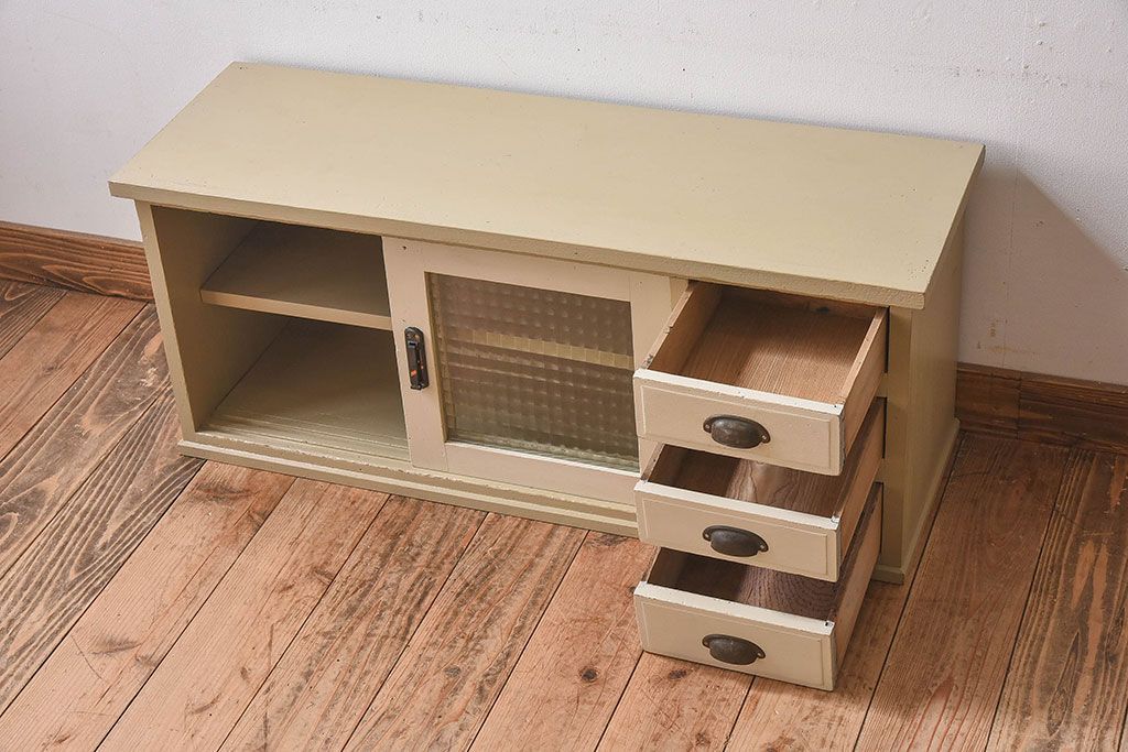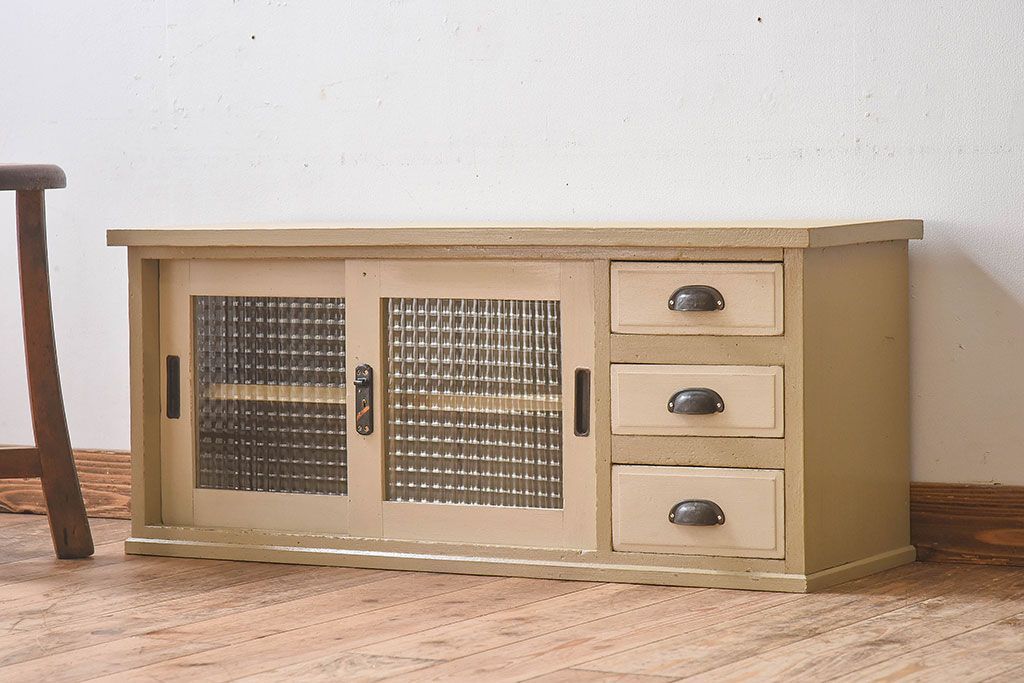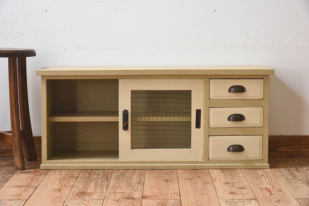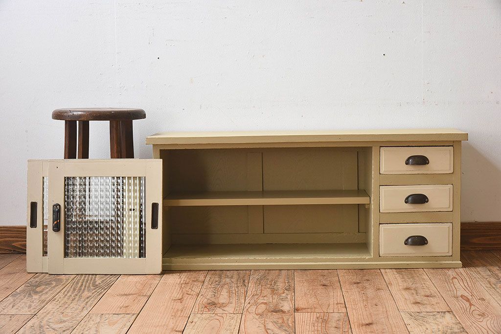アンティーク家具 アンティークペイント チェッカーガラスがおしゃれなローボード
