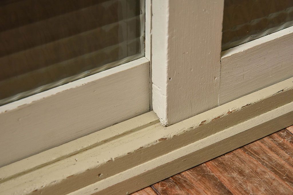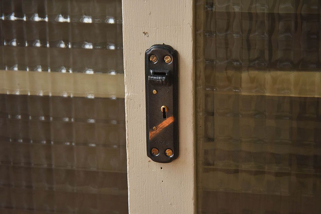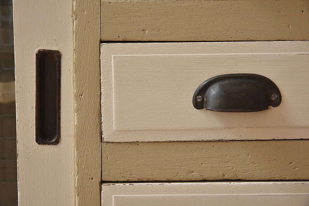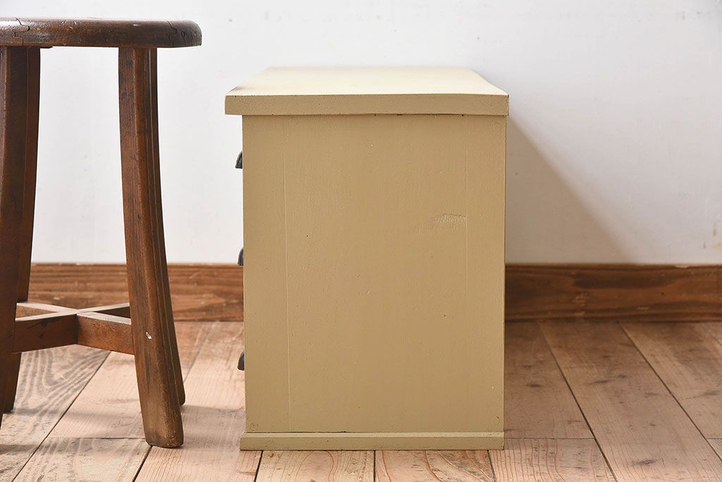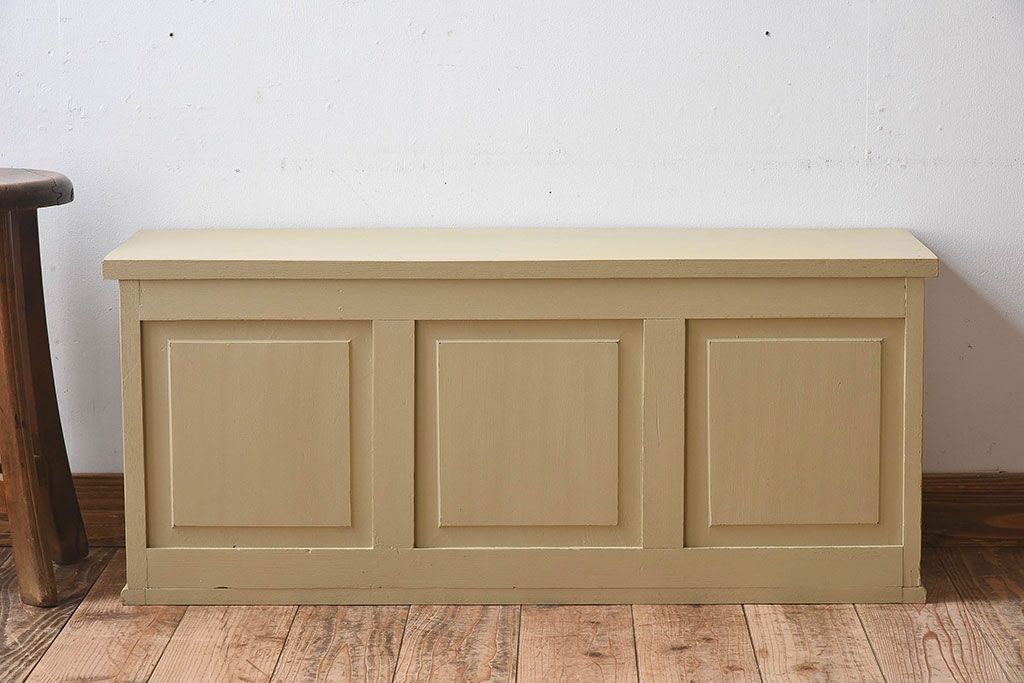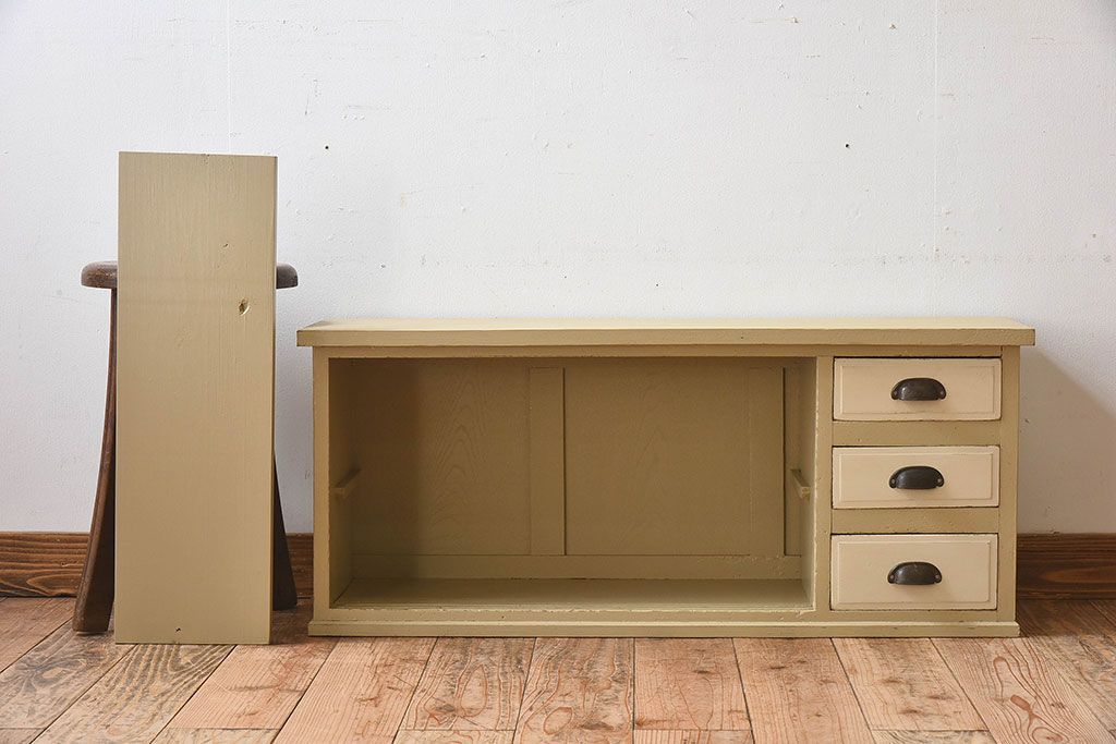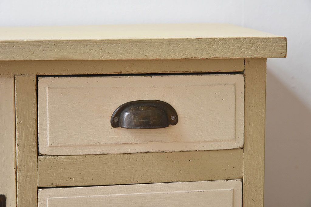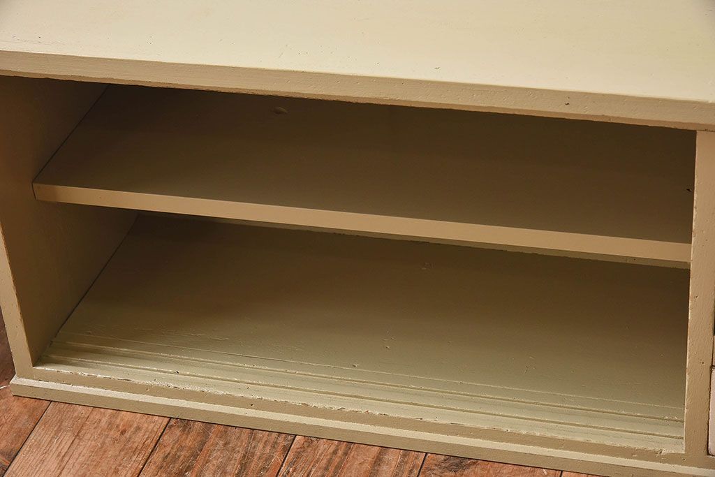 アンティーク家具 アンティークペイント チェッカーガラスがおしゃれなローボード