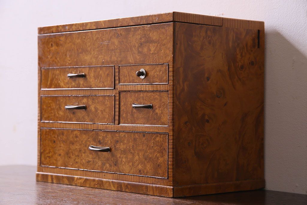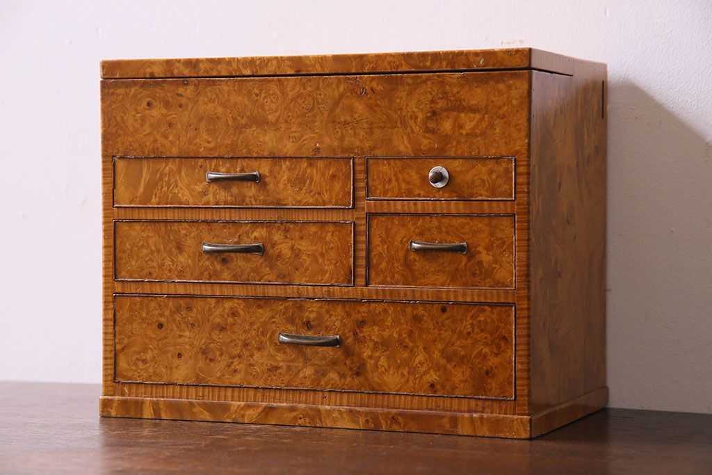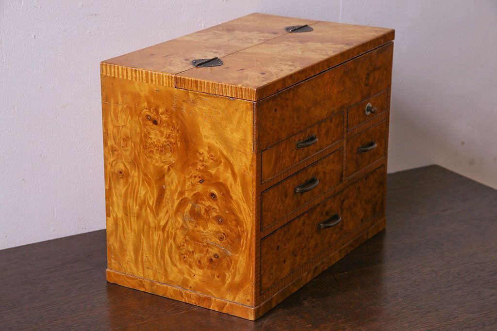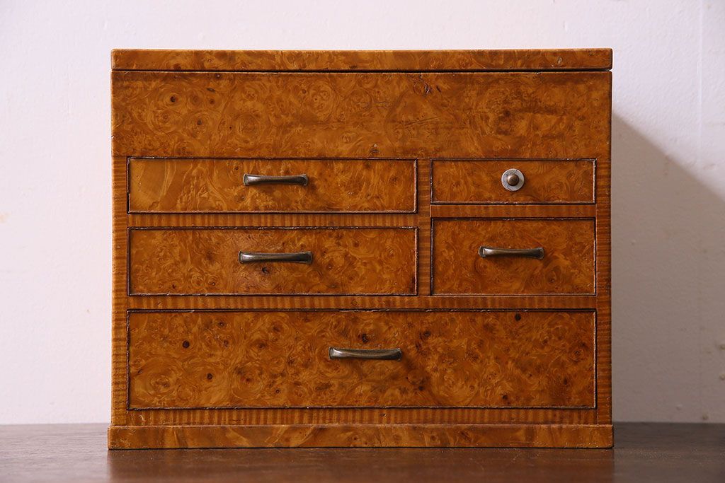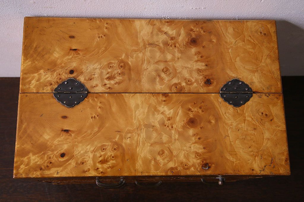 ラフジュ工房> ソファ> ダイニングソファ > アンティーク雑貨 カエデ材の杢目が美しいアンティーク裁縫箱(小引き出し)