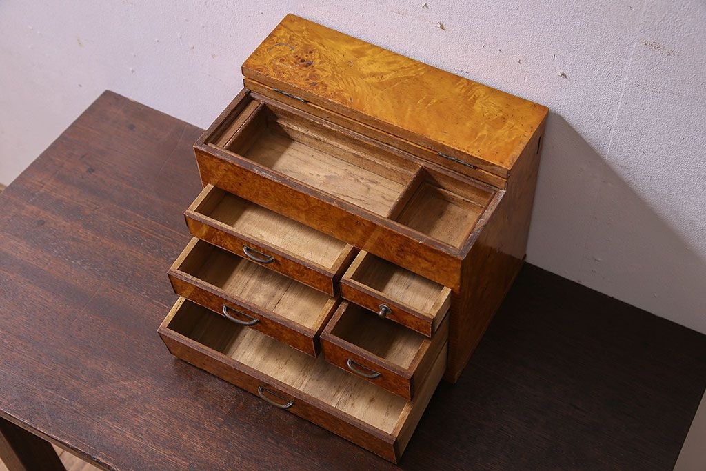 アンティーク雑貨 カエデ材の杢目が美しいアンティーク裁縫箱(小引き出し)
