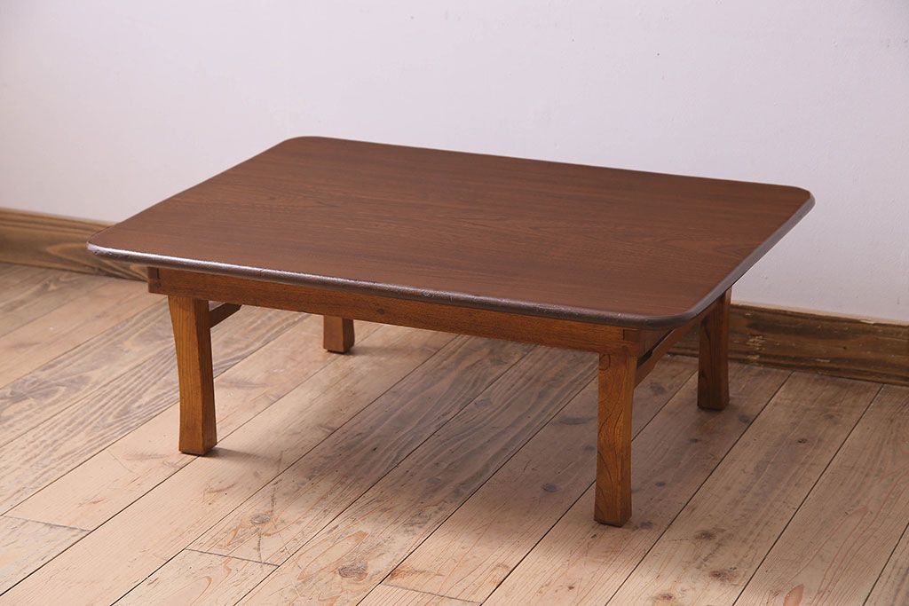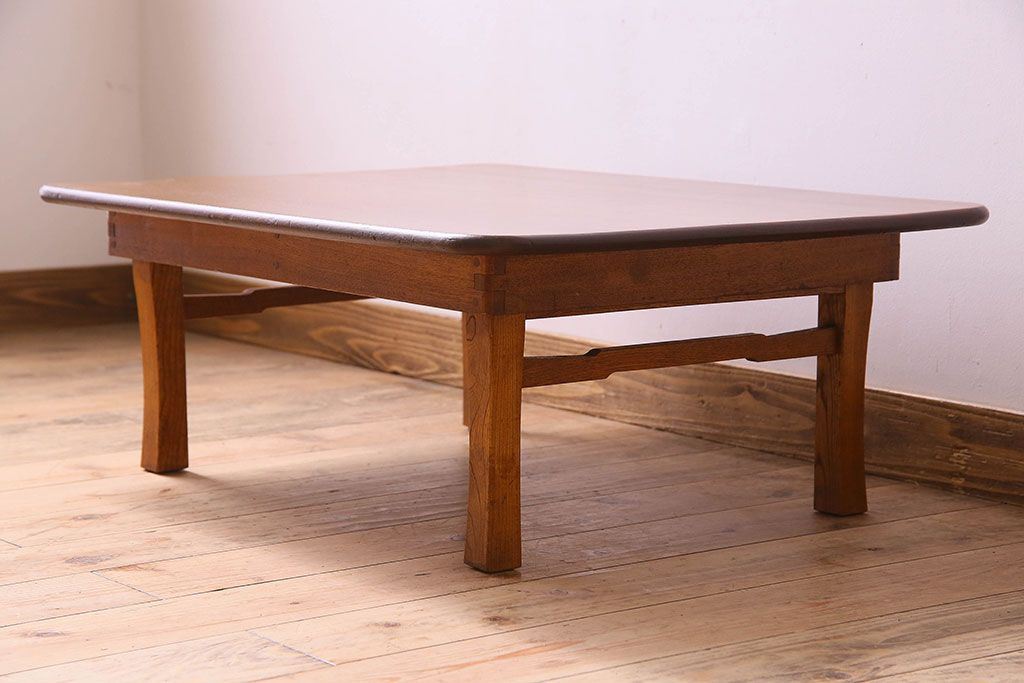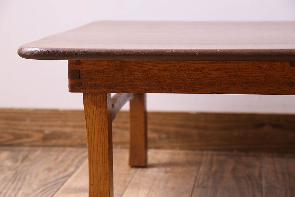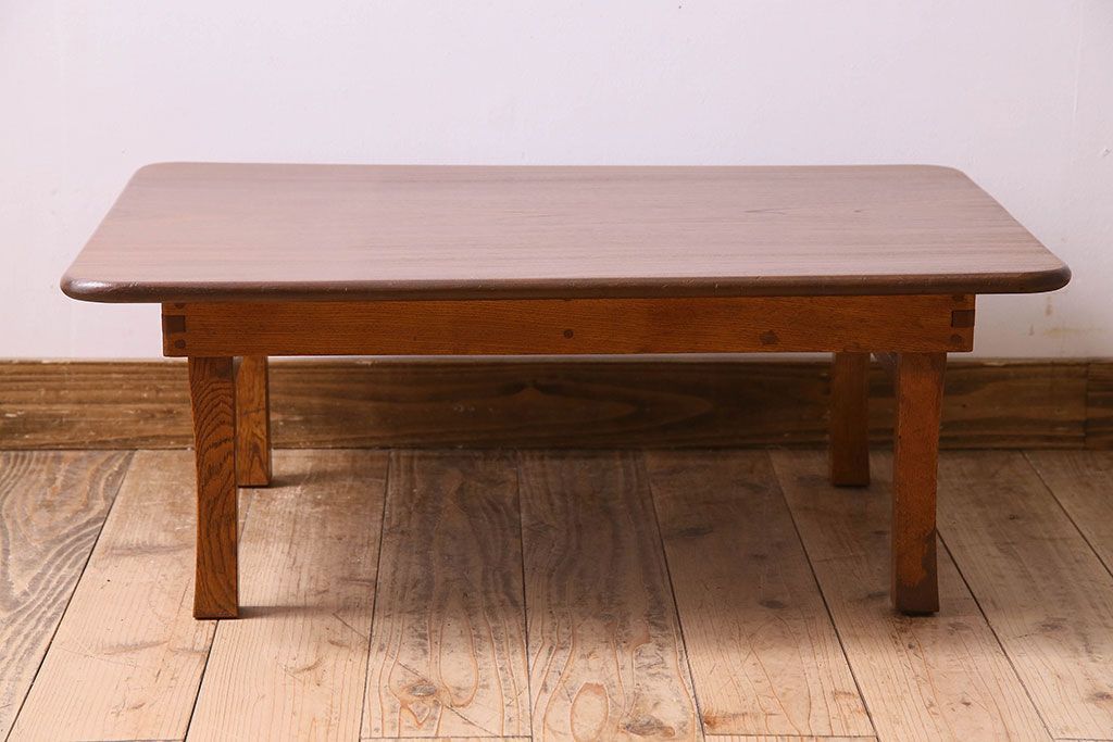 レトロ家具 昭和レトロ 和製アンティーク 栓材一枚板!古い木の味わい深い角ちゃぶ台(3)