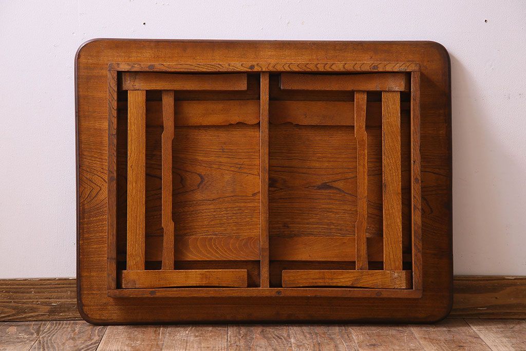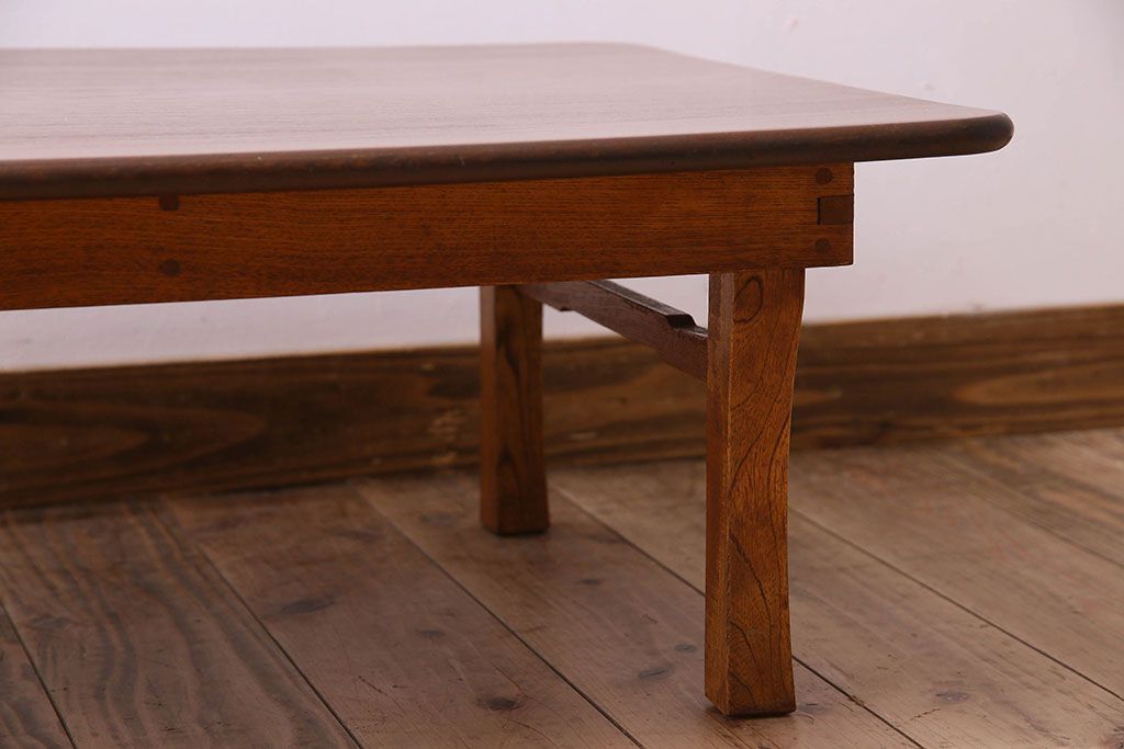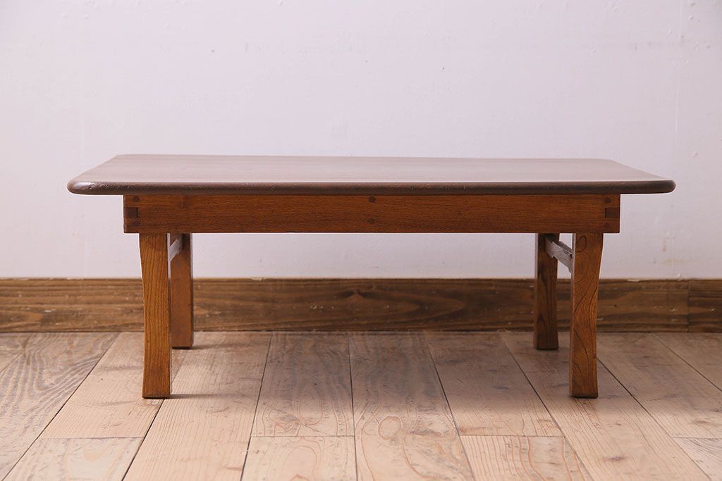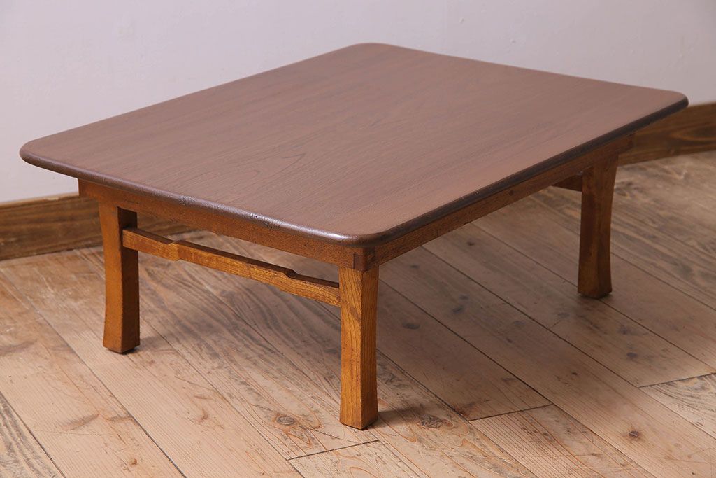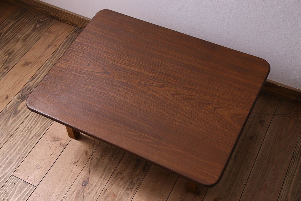 レトロ家具 昭和レトロ 和製アンティーク 栓材一枚板!古い木の味わい深い角ちゃぶ台(3)