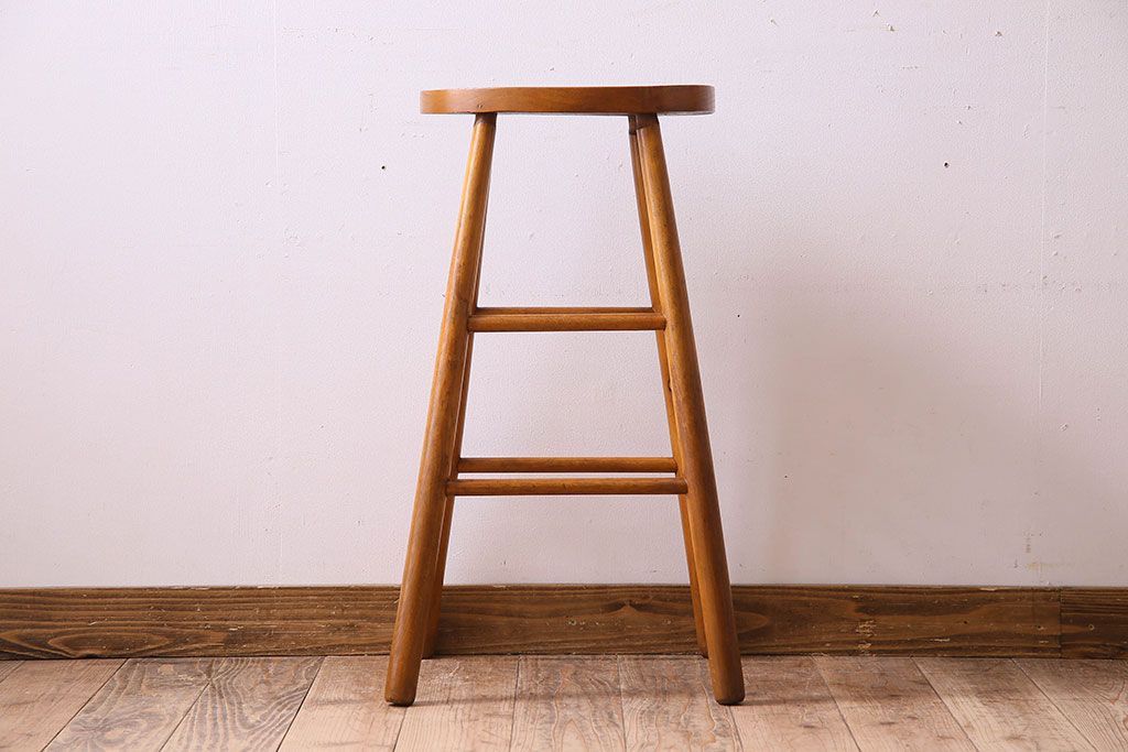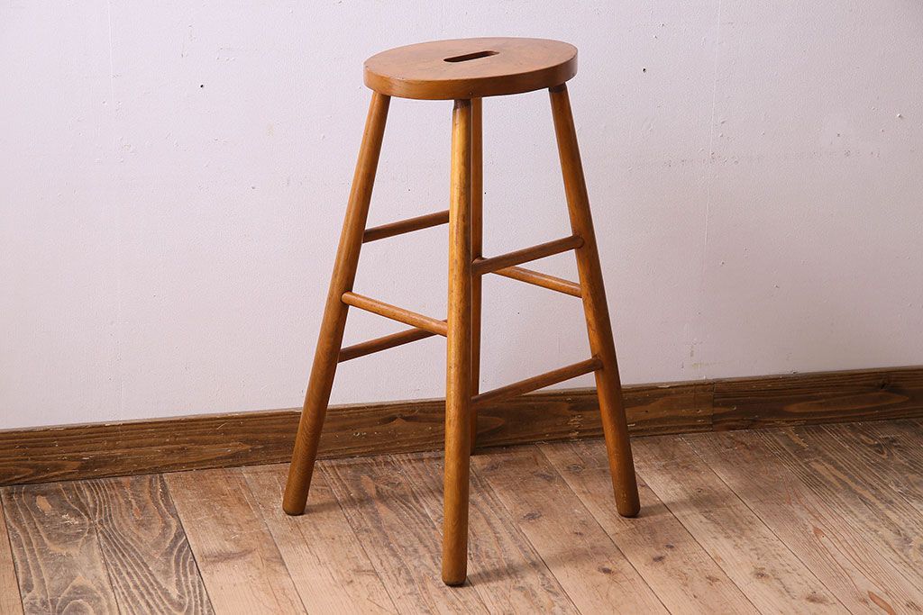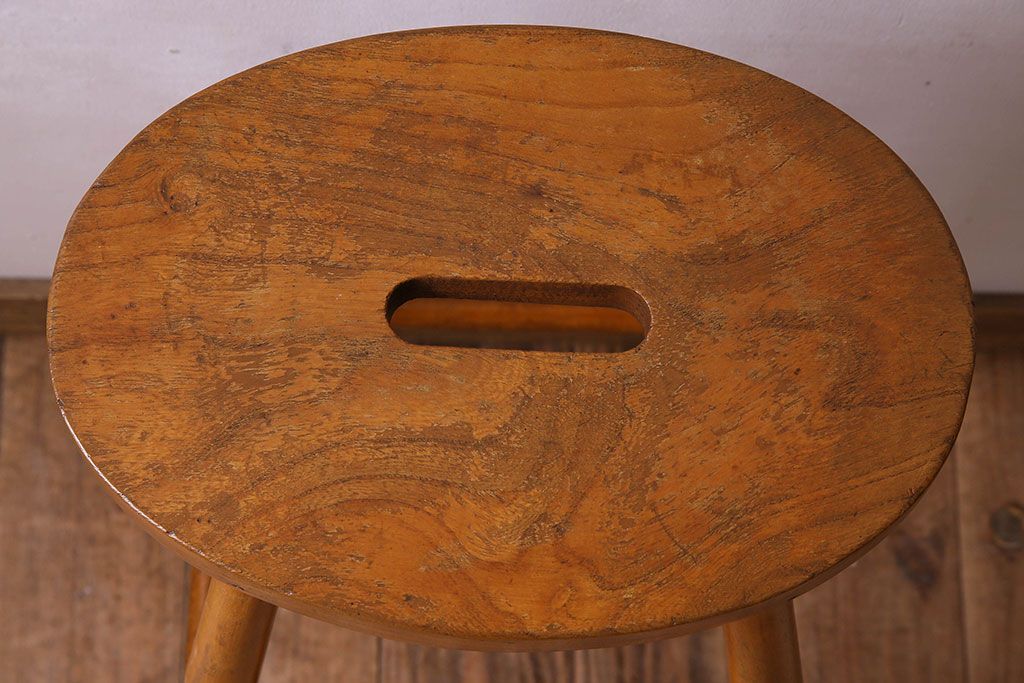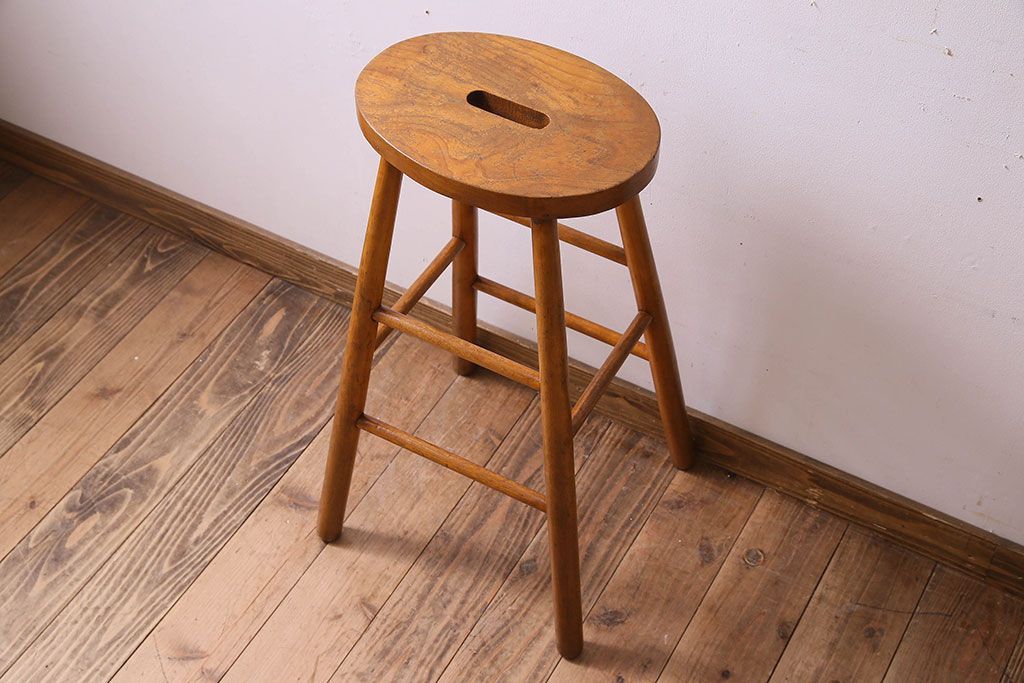 アンティーク家具 イギリスアンティーク ビーチ・ニレ材 ナチュラルなハイスツール(丸椅子、イス、チェア)
